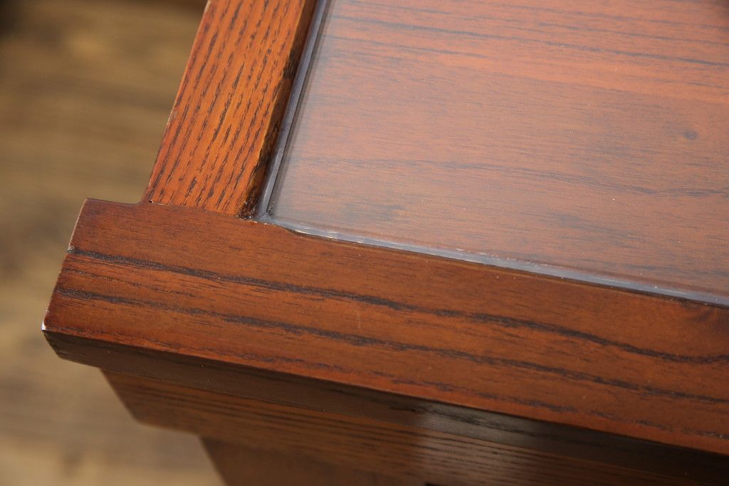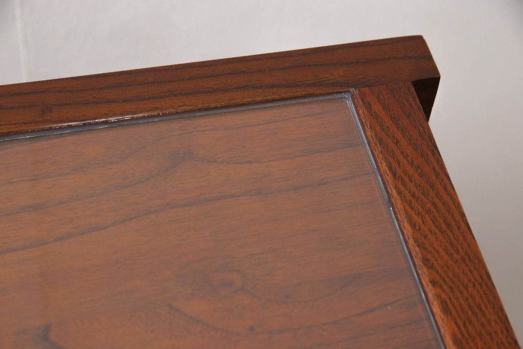 セミオーダー家具実績 > 水屋箪笥サイドボードをリペア&カスタム!天板の溝に合わせガラスをはめ込み、本体とガラスの間の溝はコーキング加工。(収納棚、戸棚、テレビ台、キャビネット、食器棚)