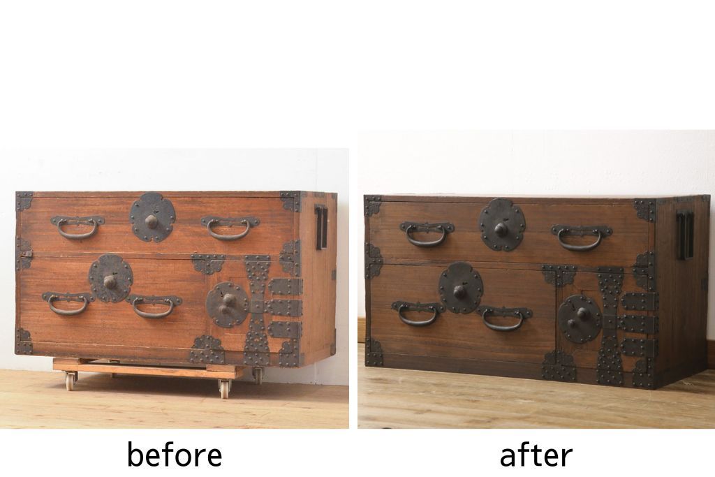 セミオーダー家具実績 > 総桐箪笥ローボードをリペア&カスタム!天板を内側から補強。修繕箇所を本体と馴染むよう着色。 (桐たんす、和たんす、ローチェスト、テレビ台、引き出し)