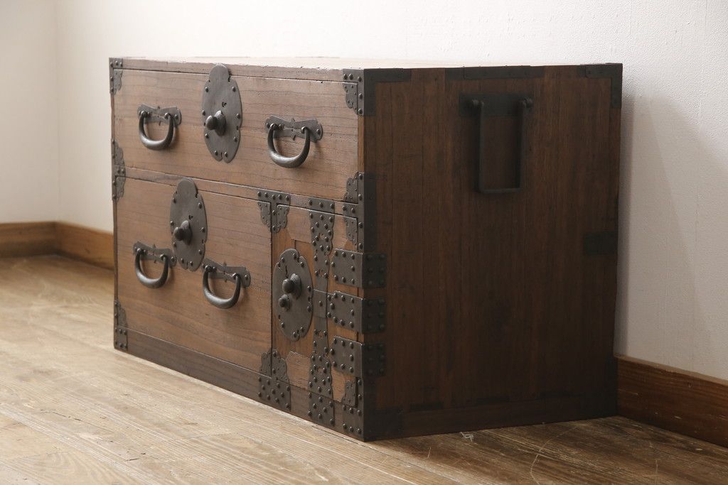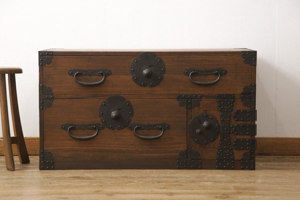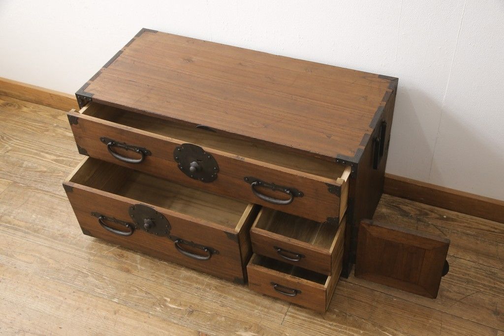 チェスト・引き出し> ローチェスト > 総桐箪笥ローボードをリペア&カスタム!天板を内側から補強。修繕箇所を本体と馴染むよう着色。 (桐たんす、和たんす、ローチェスト、テレビ台、引き出し)