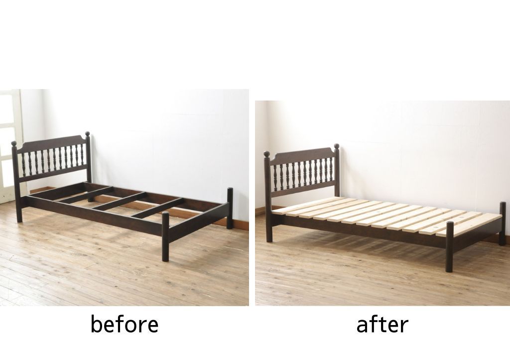 ベッド > ベッドフレームをリペア&カスタム!フレームに合わせてすのこを製作。お色味、デザインは当店商品を参考。(シングルサイズ)