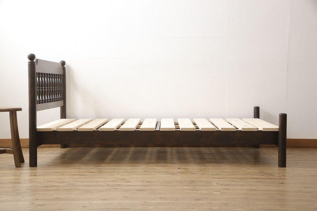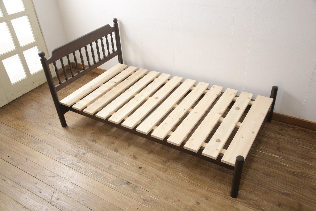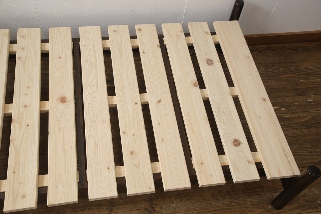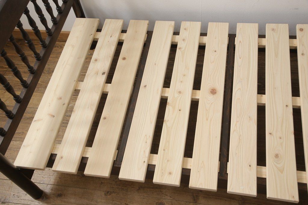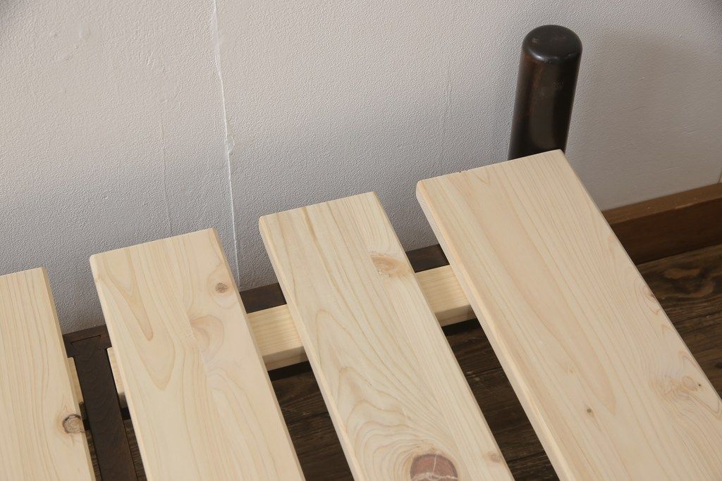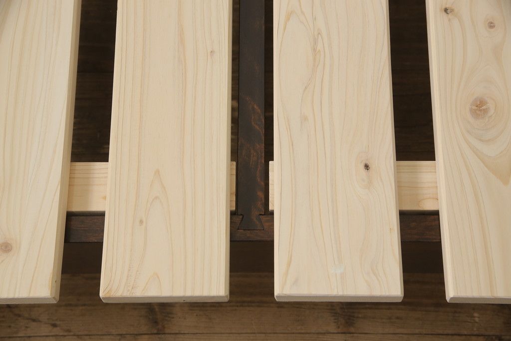 民芸家具 > ベッドフレームをリペア&カスタム!フレームに合わせてすのこを製作。お色味、デザインは当店商品を参考。(シングルサイズ)