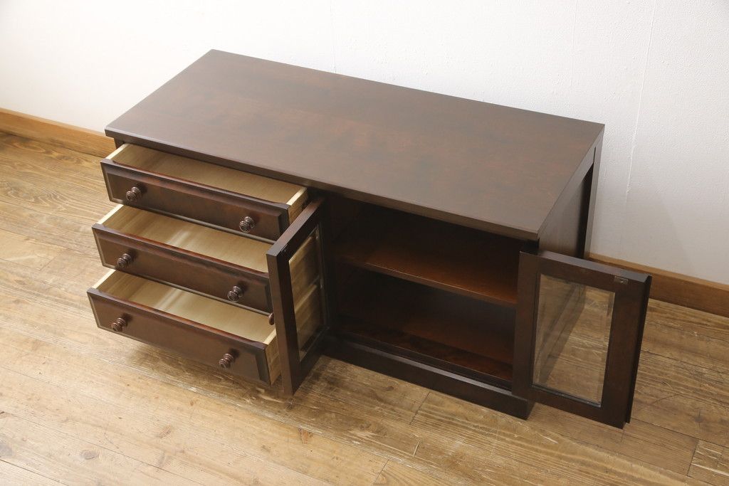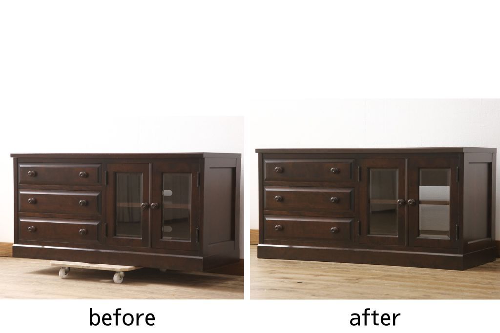テレビ台をリペア&カスタム!元々ある4つの配線穴を繋いで、長方形の1つの配線へ加工。(ローボード、リビングボード、サイドボード)
