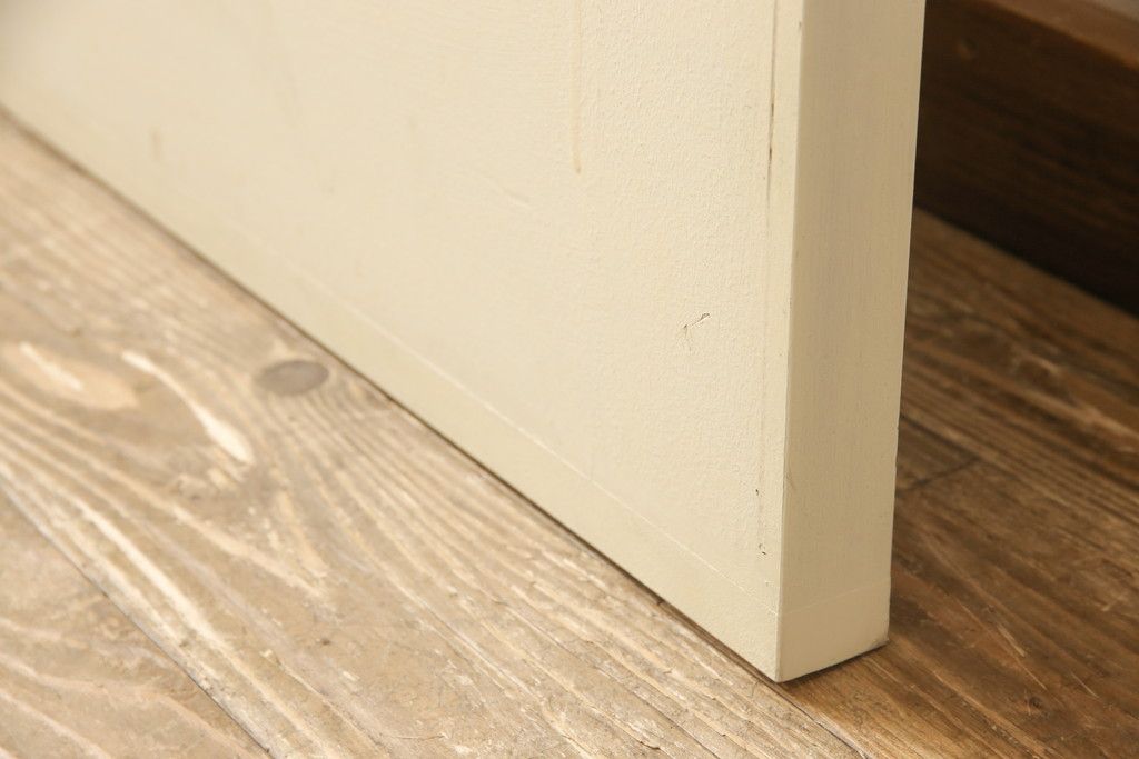 セミオーダー家具実績 > 両開きドア1対をリペア&カスタム!高さと幅をリサイズし、引手周りの丸穴は埋め木処理。既存のペンキ塗装部分は清掃し、埋め木・付け足し箇所のみホワイト系で着色。(扉、玄関扉、ドア2枚セット)