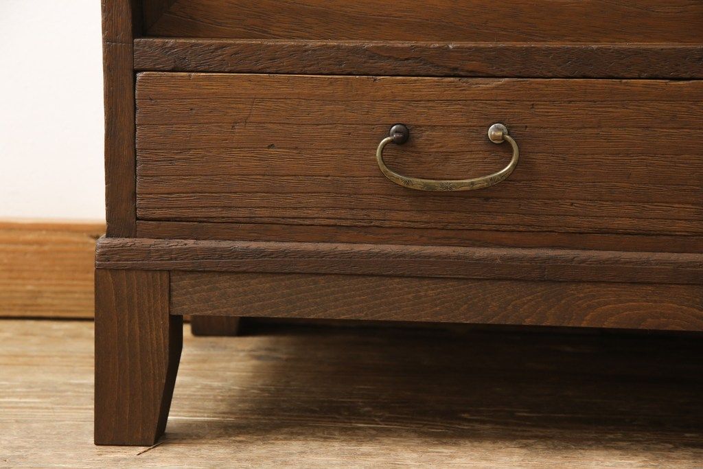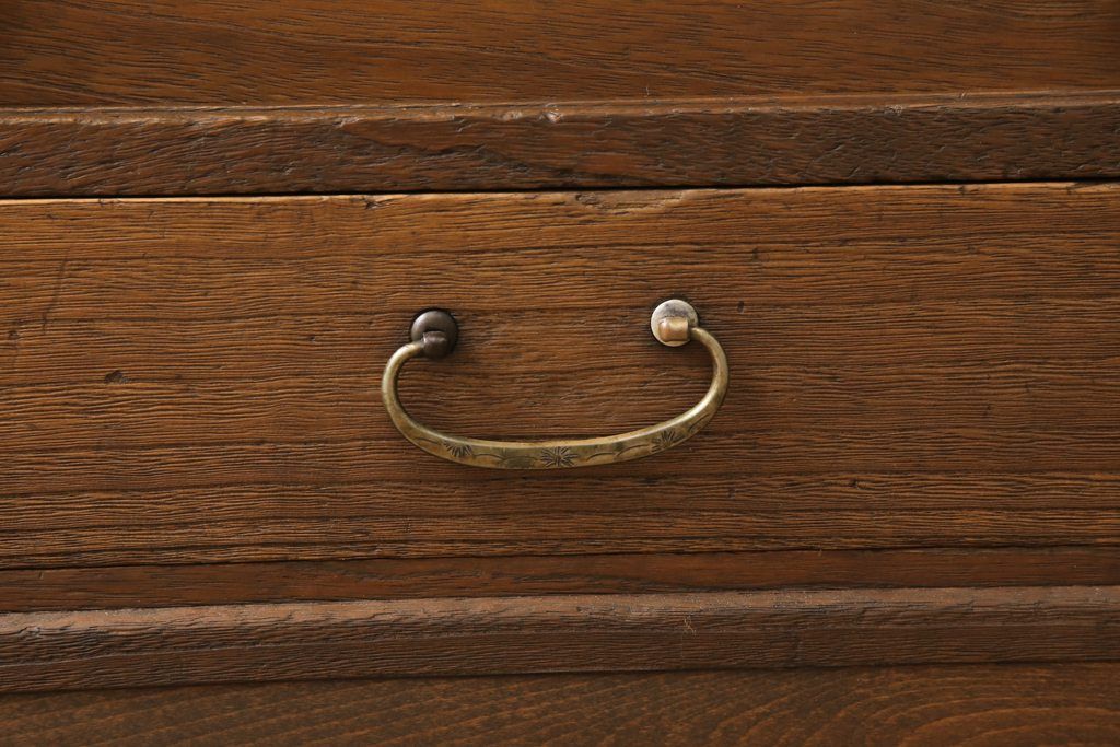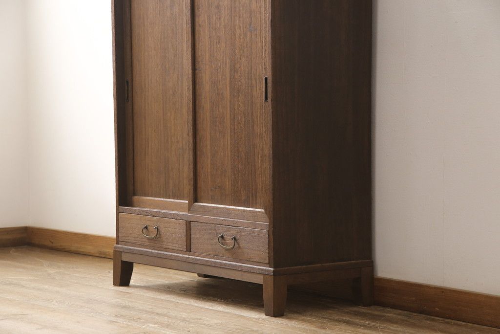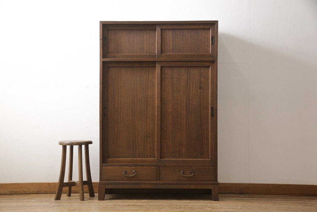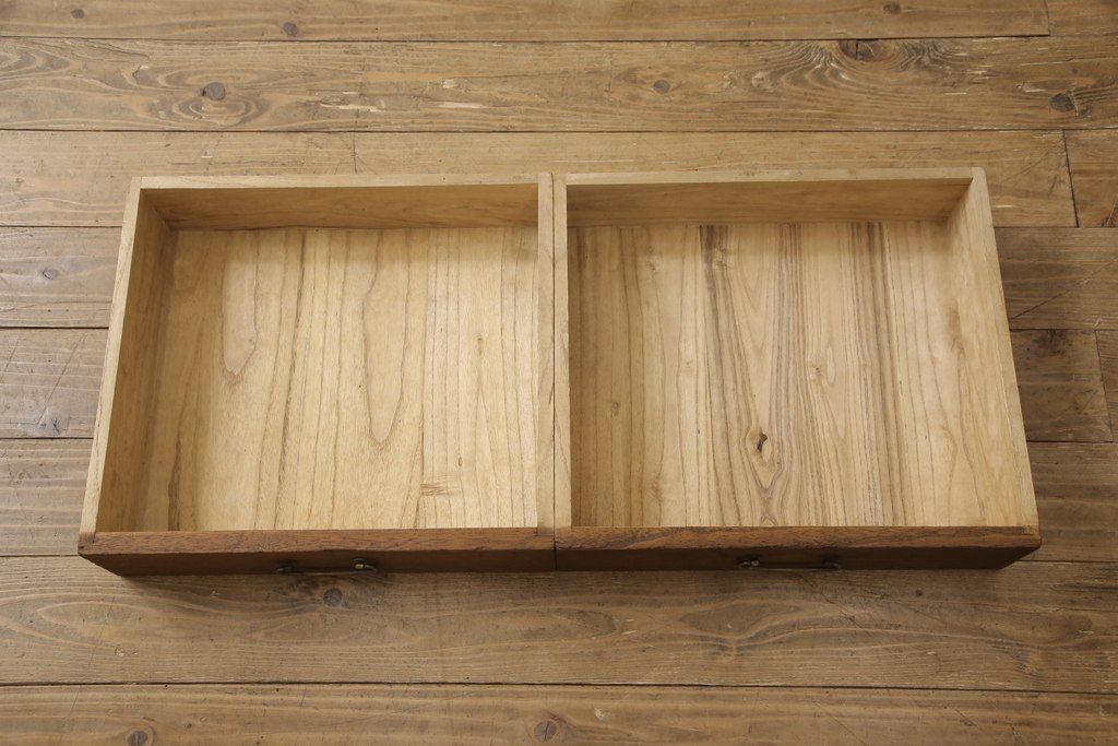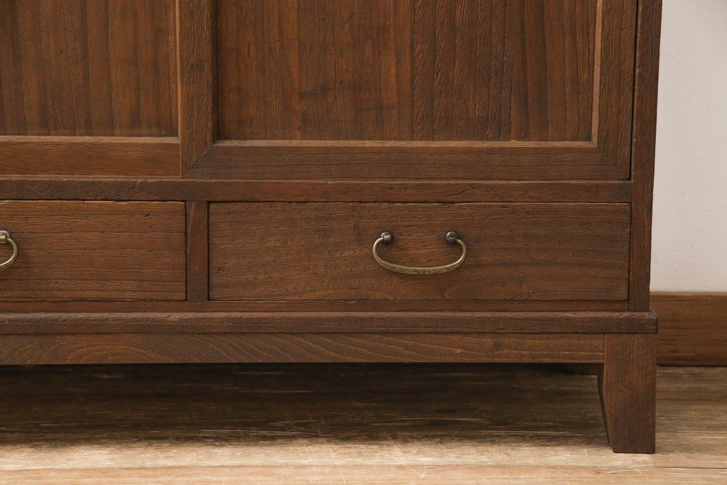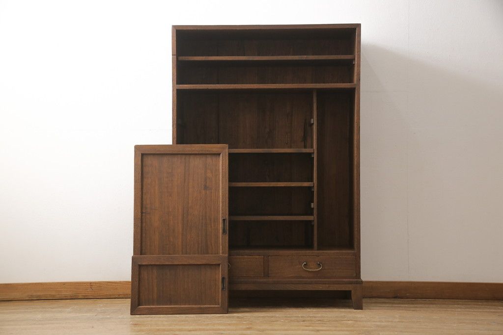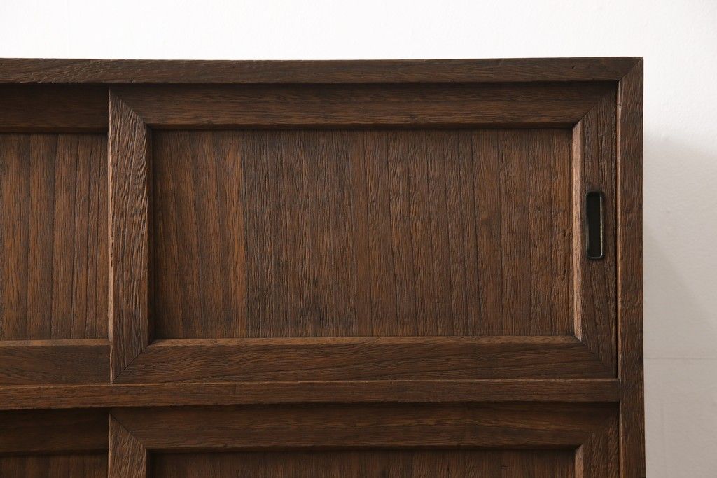 戸棚をリペア&カスタム!棚板を製作して差し替え。棚内部は5分割になるよう棚受けを配置。木製角脚を取付け、色味は当店商品を参考に着色。(収納棚、キャビネット)
