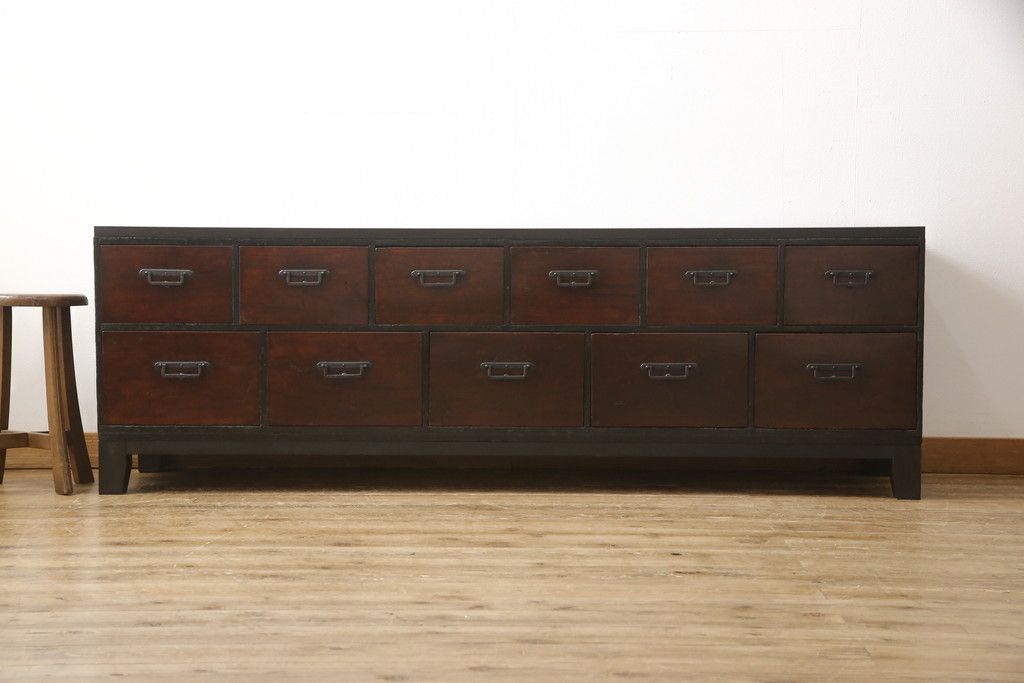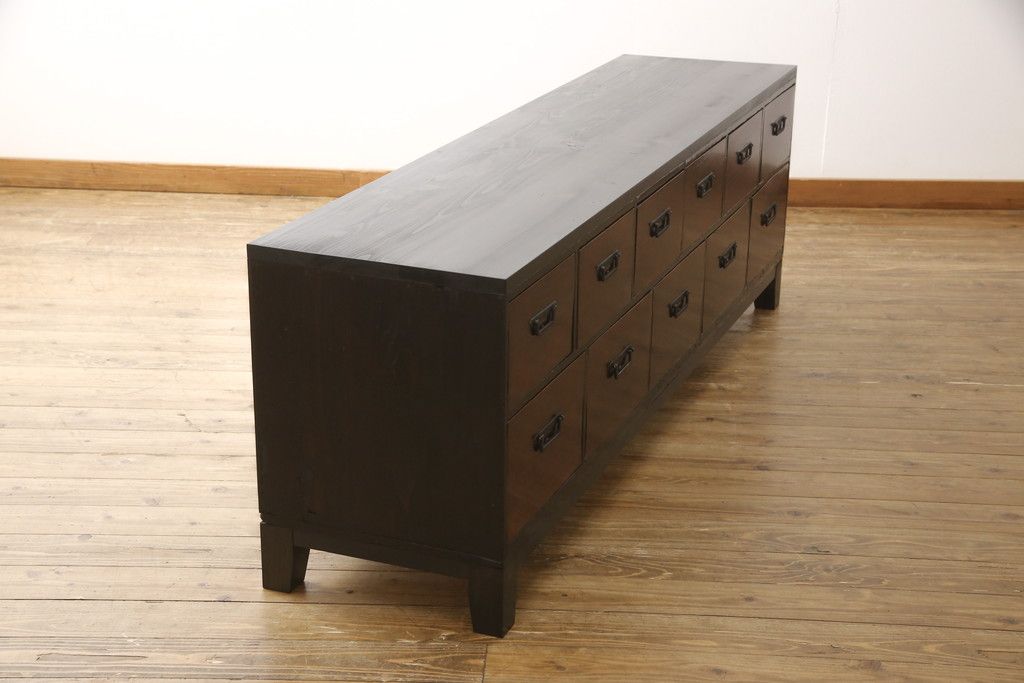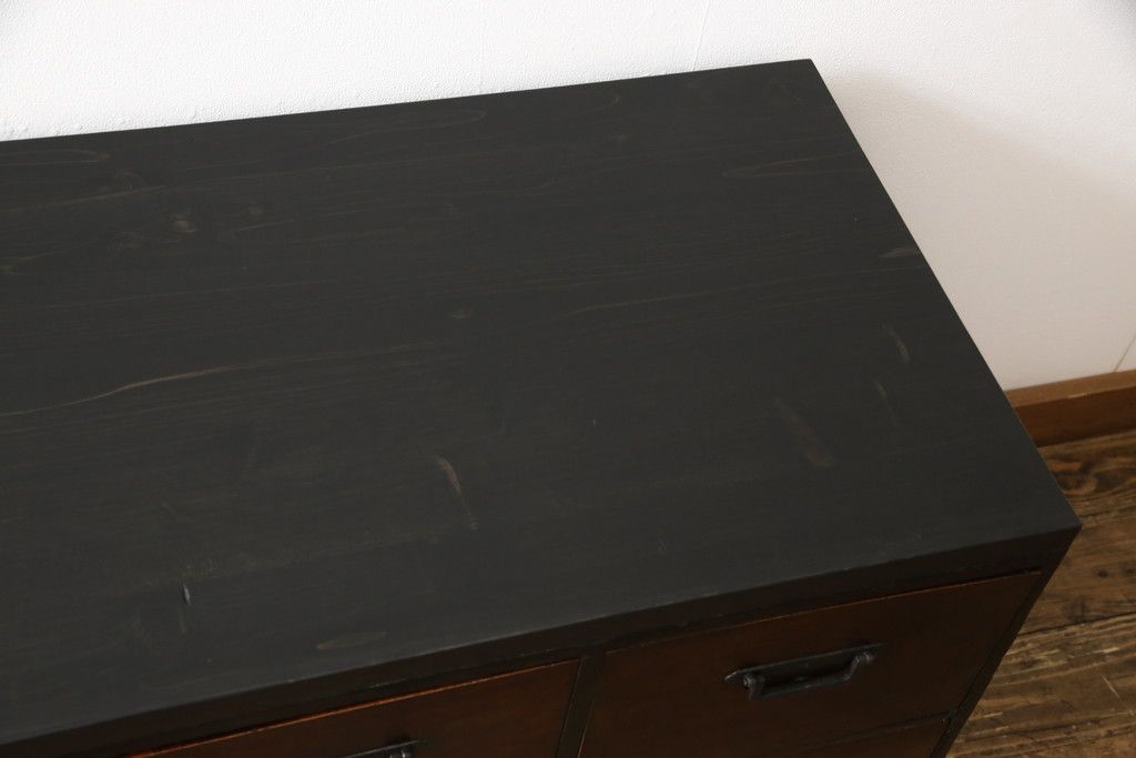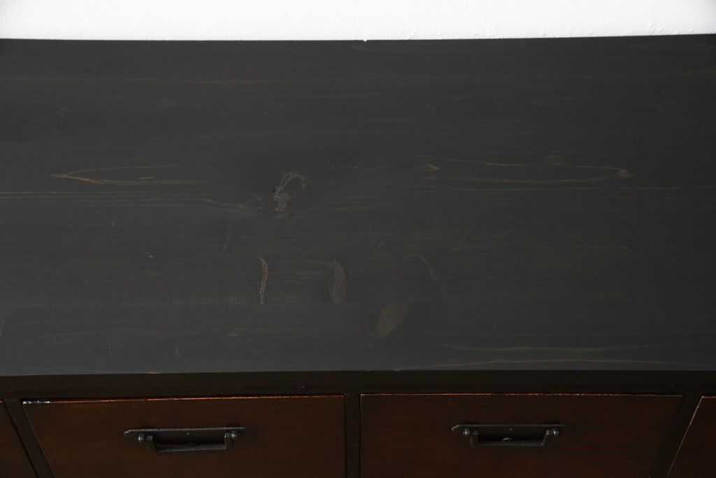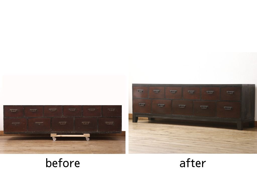 和箪笥 > ローボードをリペア&カスタム!天板・木脚を製作し取り付け。欠損していた引手も取り付け。新材を使用した部分、本体は現状をベースに着色。(引き出し、リビングボード、テレビ台、テレビボード、ローチェスト)