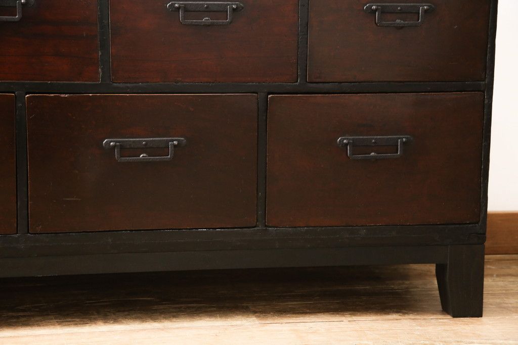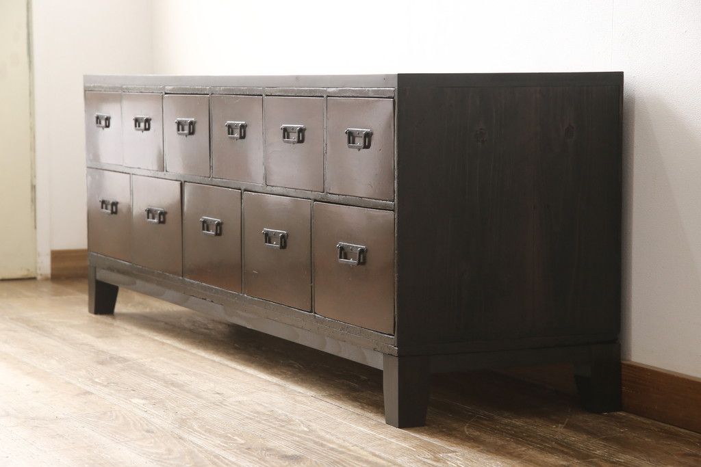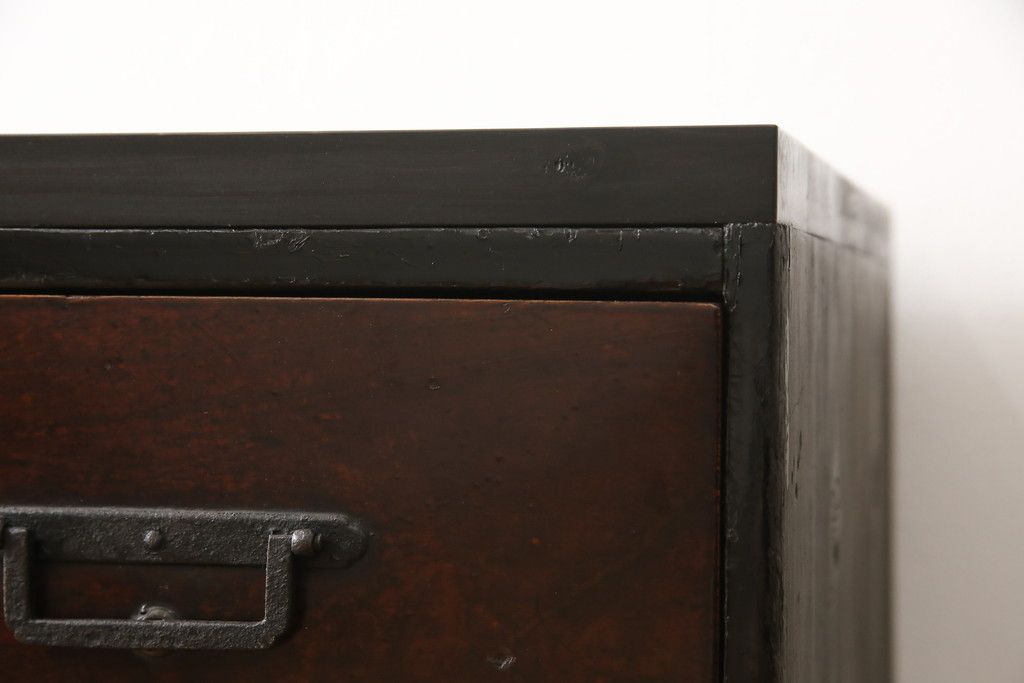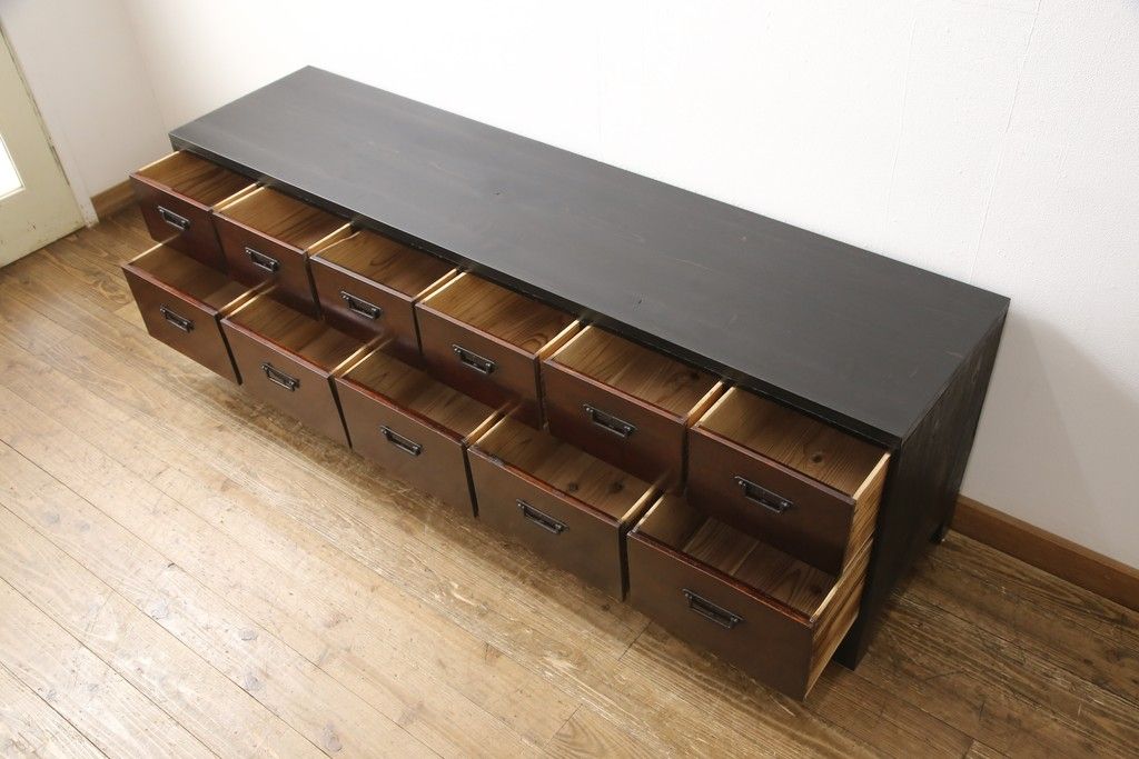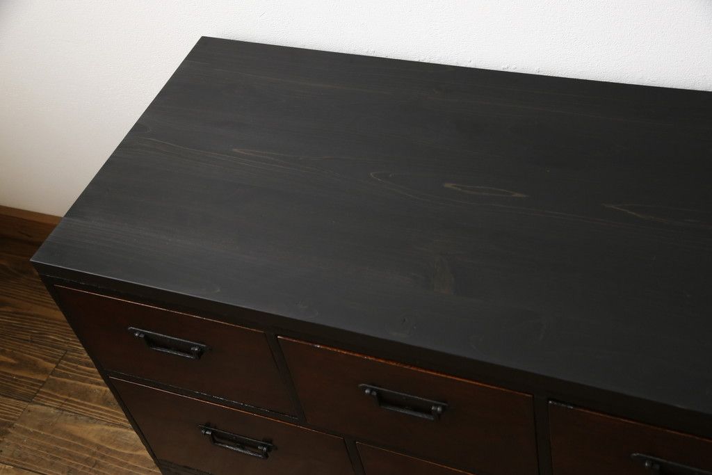和箪笥 > ローボードをリペア&カスタム!天板・木脚を製作し取り付け。欠損していた引手も取り付け。新材を使用した部分、本体は現状をベースに着色。(引き出し、リビングボード、テレビ台、テレビボード、ローチェスト)