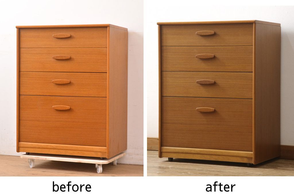 サイドチェストをリペア&カスタム!キャスターを新しいものに交換。(引き出し、サイドチェスト、ビンテージ、北欧)