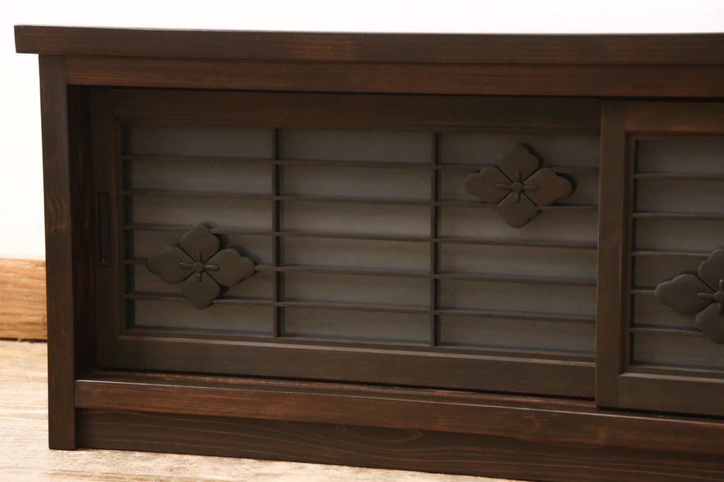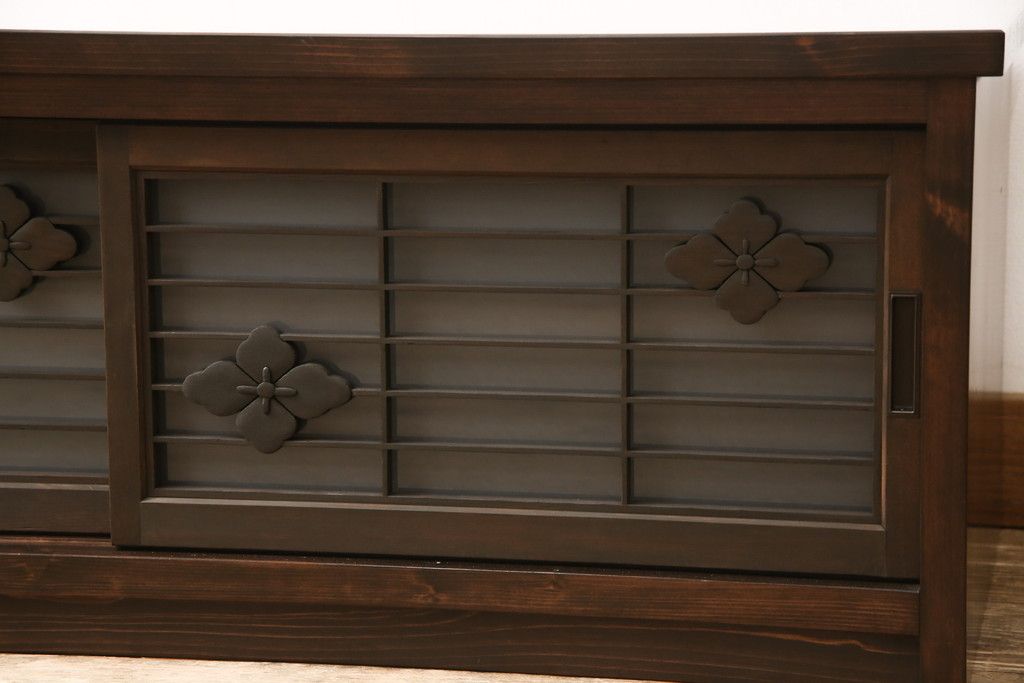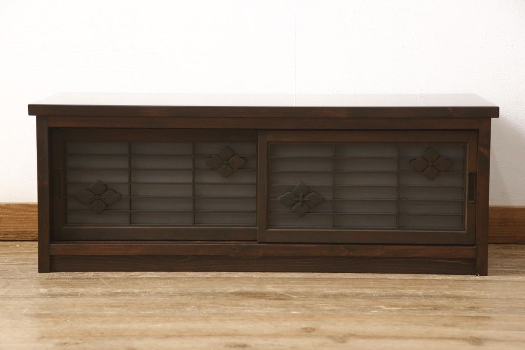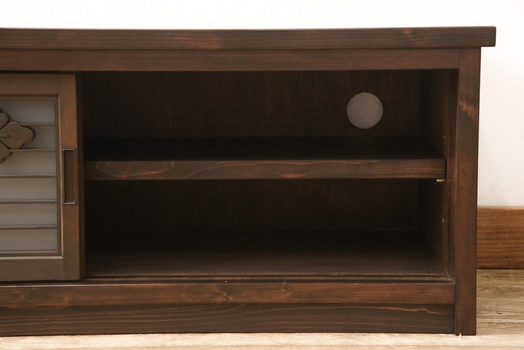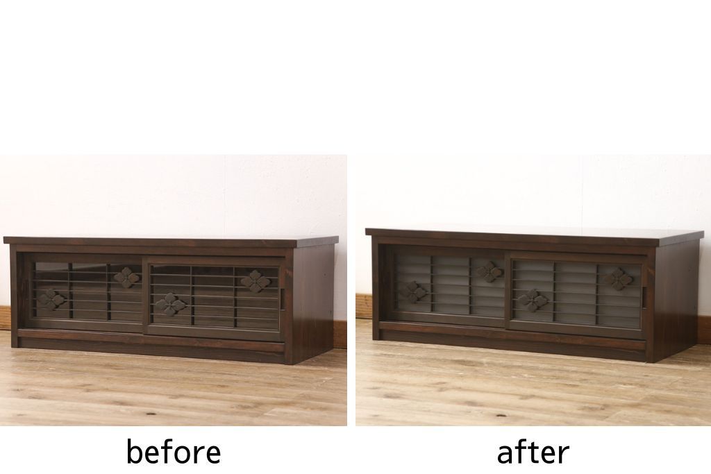 キャビネット・戸棚> テレビ台・ローボード > テレビ台をリペア&カスタム!ご希望の位置に配線用の穴あけ加工。建具のガラスは2枚ともすりガラスに交換。(テレビボード、ローボード、リビングボード、収納棚、戸棚)