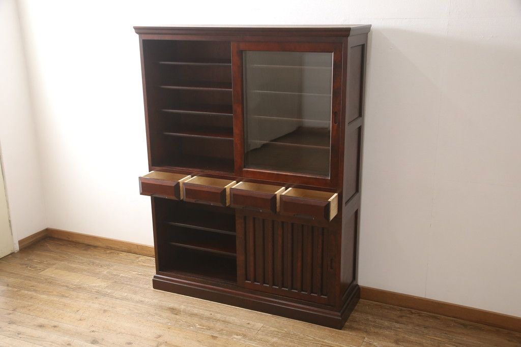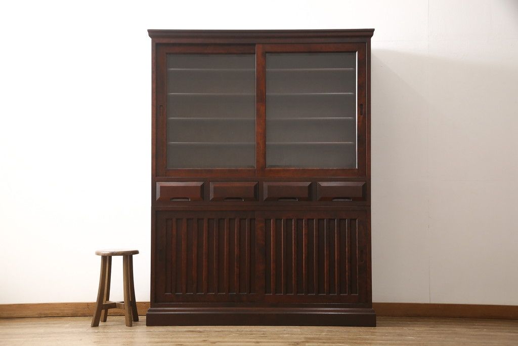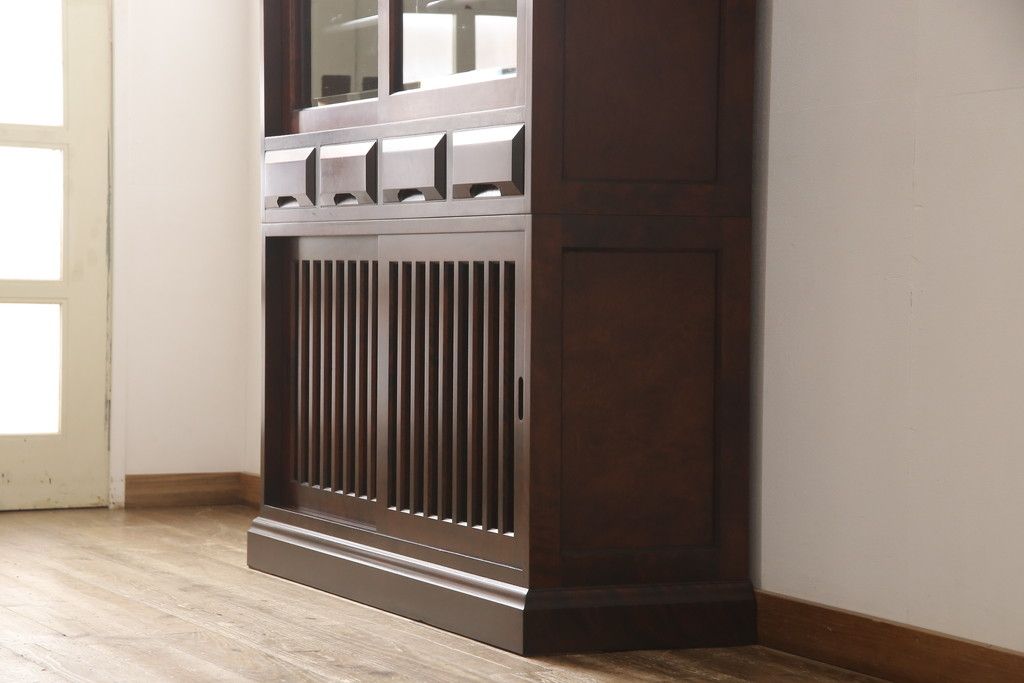 食器棚をリペア&カスタム!下段左側に棚板1枚製作し取り付け、棚ダボを2ヵ所追加。(キャビネット、戸棚、収納棚)