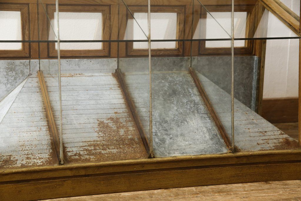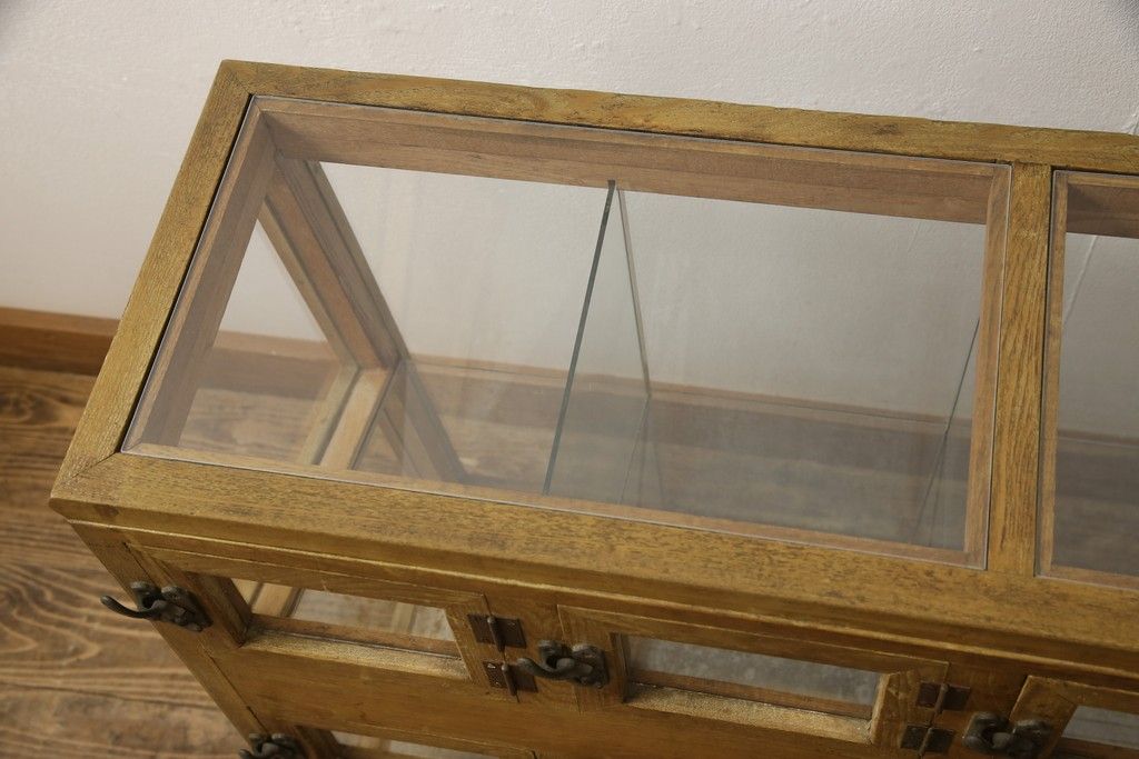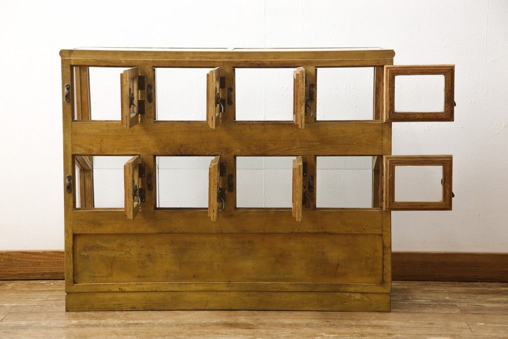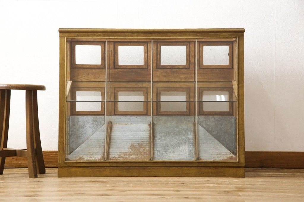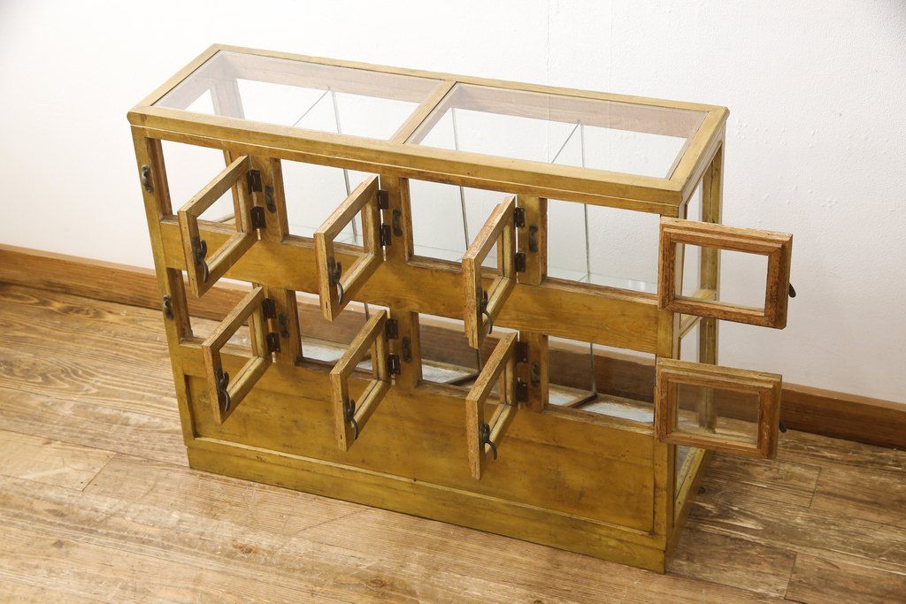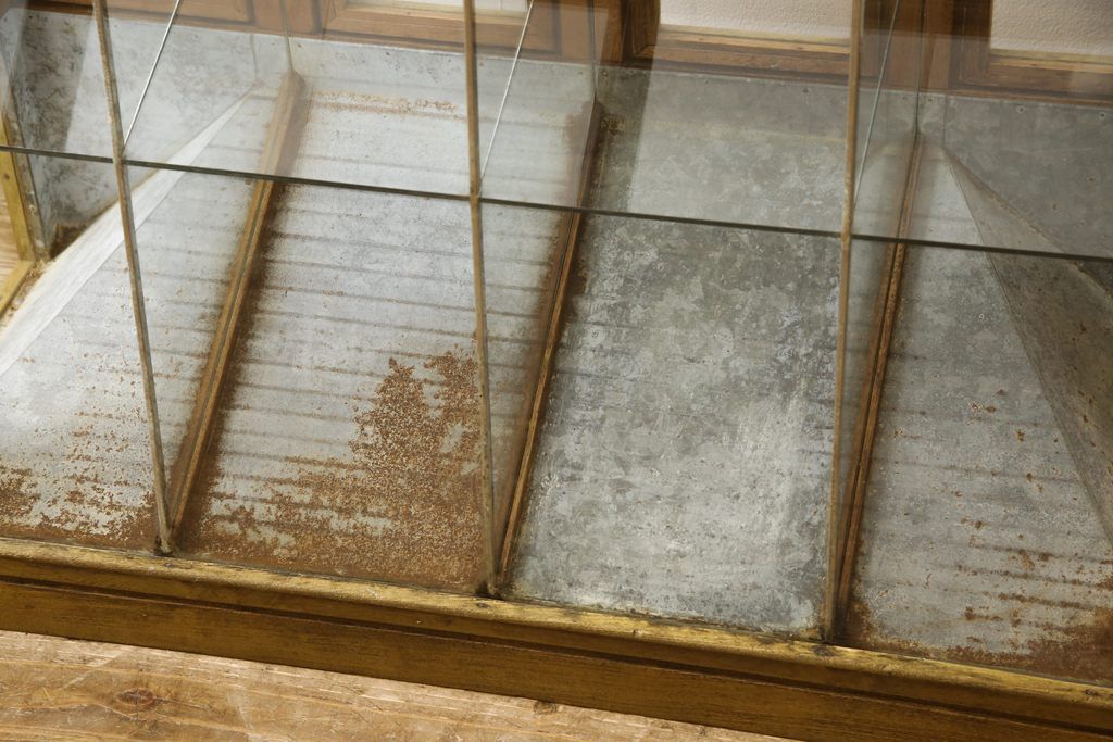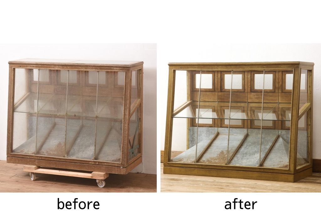 ガラスケースの見た目を変えずに綺麗にリペア!現状に合わせて1トーン程落ち着いた色に着色。(ショーケース、陳列棚、マス目、飾り棚)