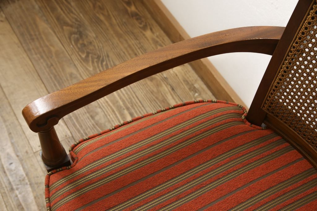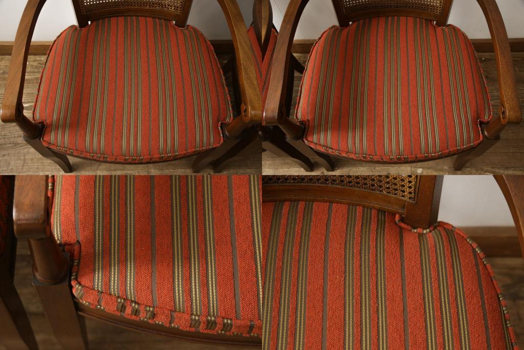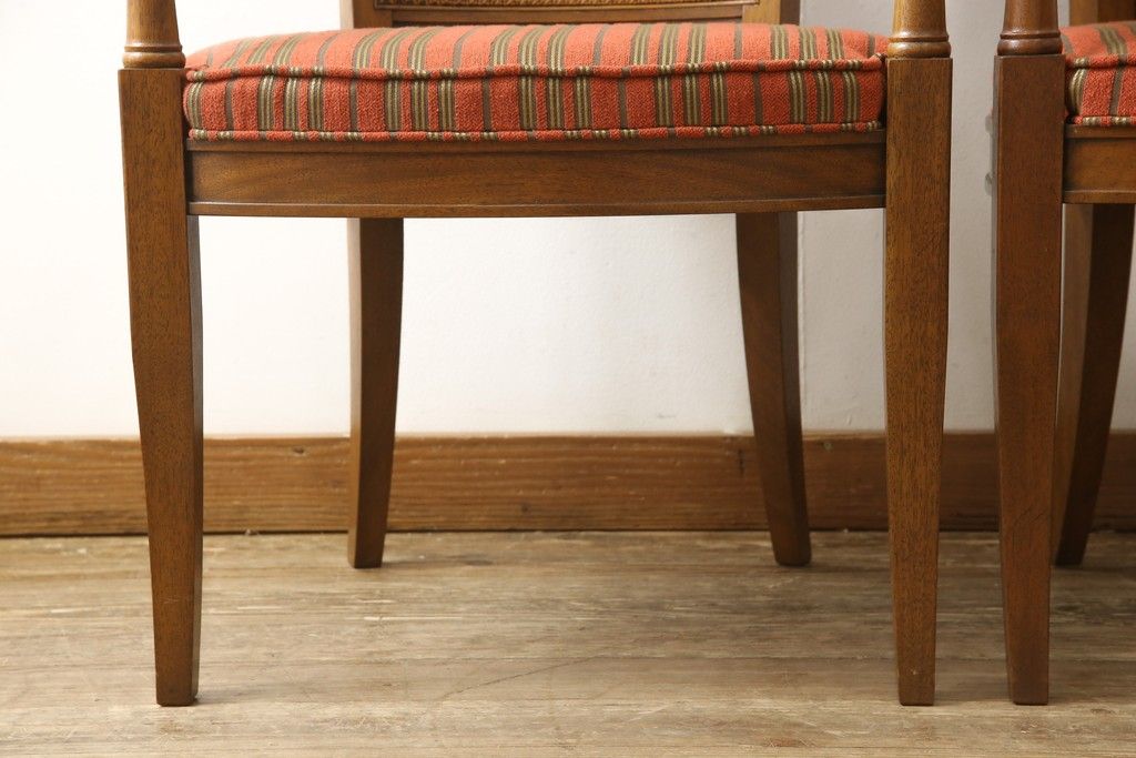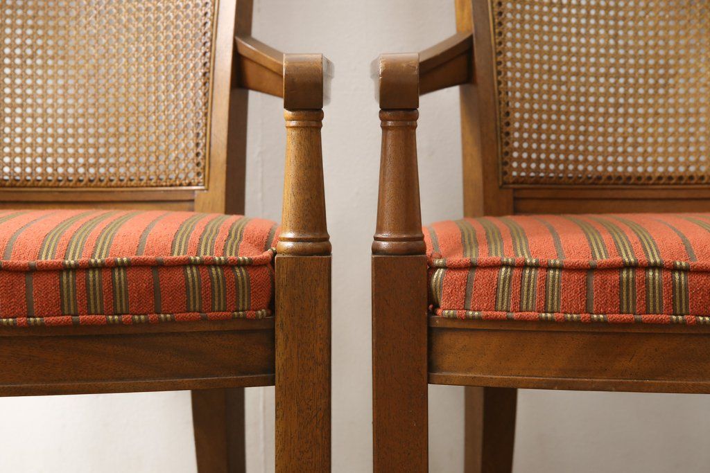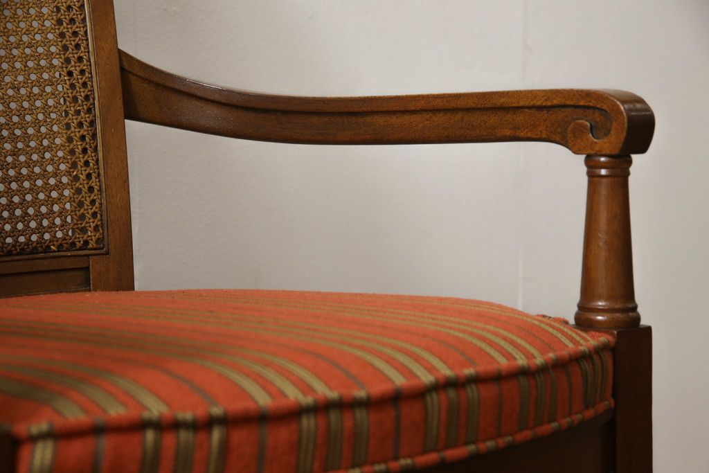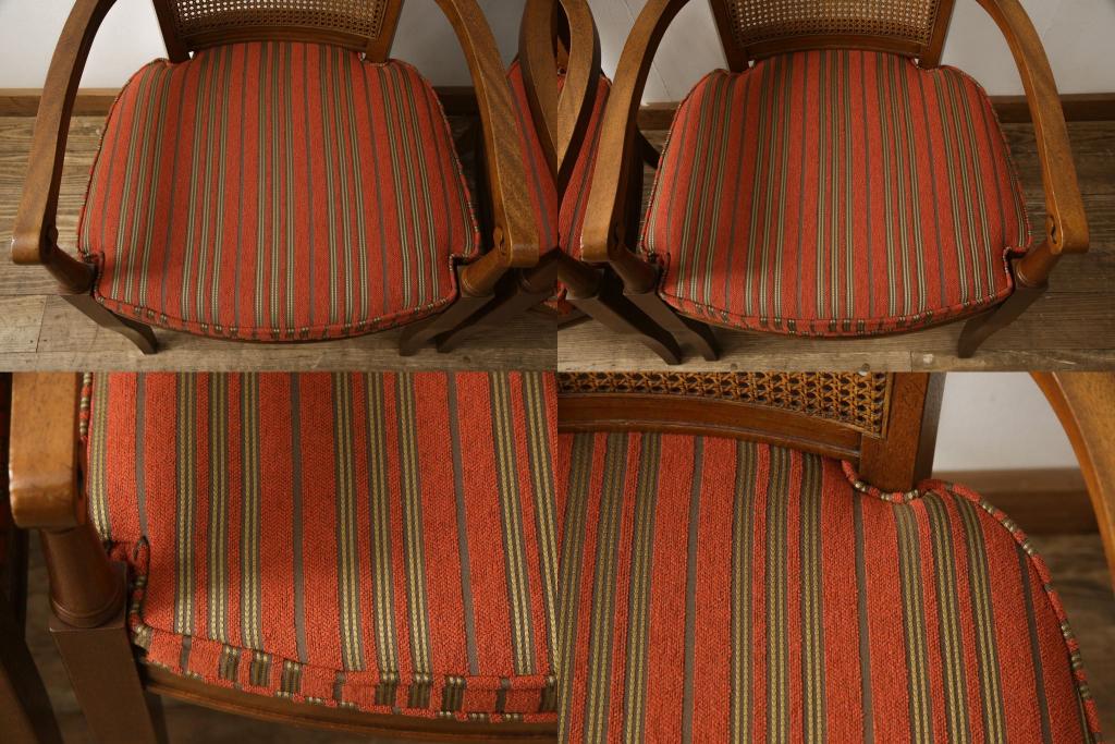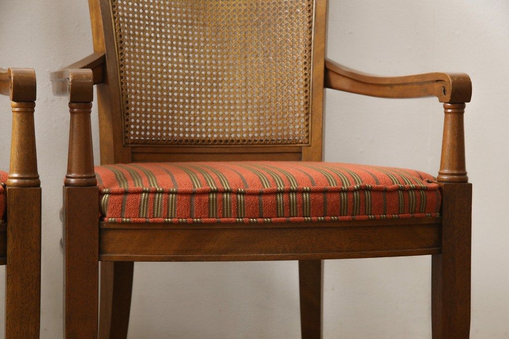 椅子・ベンチ> アームチェア > ダイニングチェア6脚セットをリペア&カスタム!座面をご希望の生地に張り替え。同生地・同系色の生地にてパイピングを取付け。(イス、椅子、アームチェア)