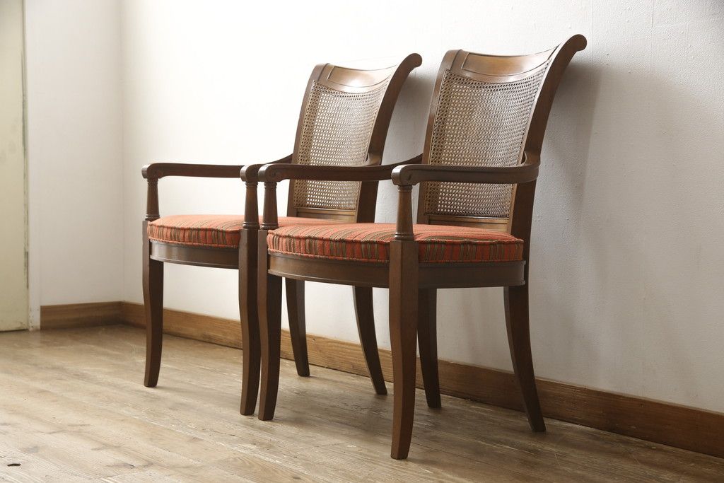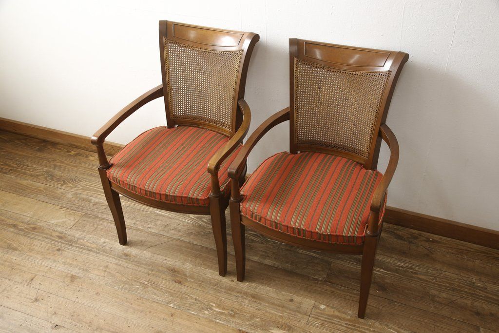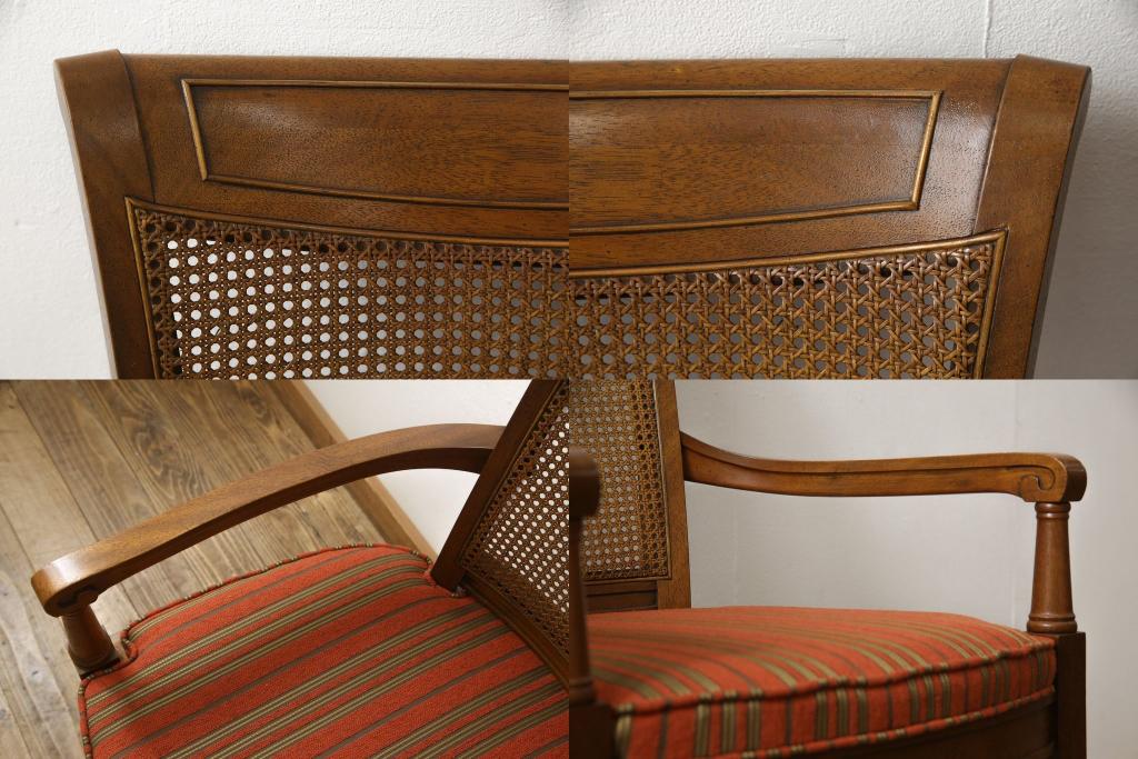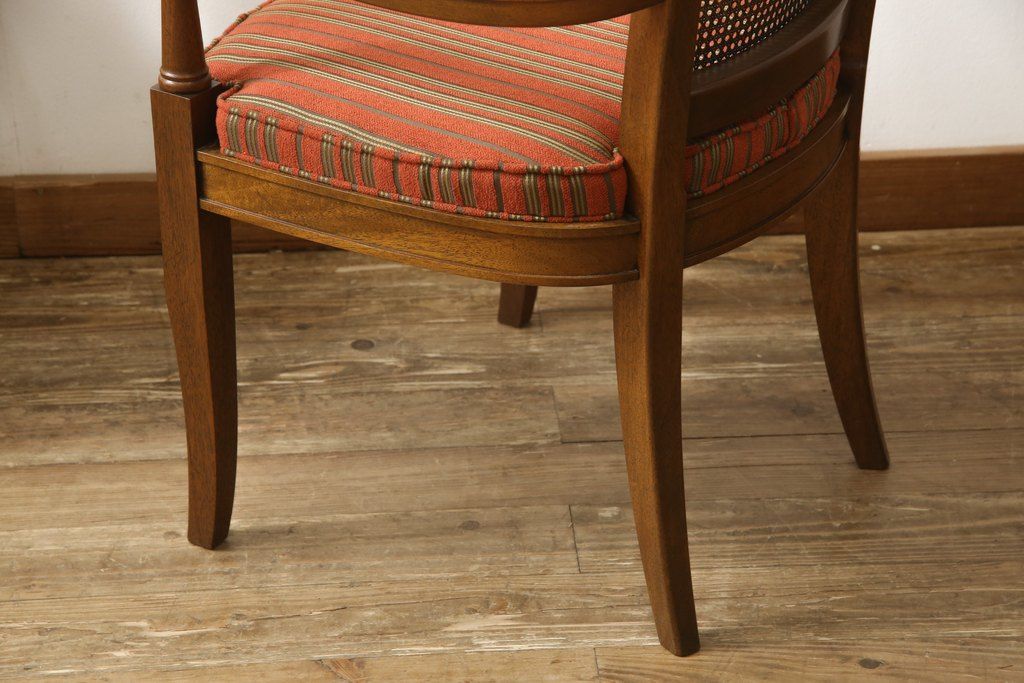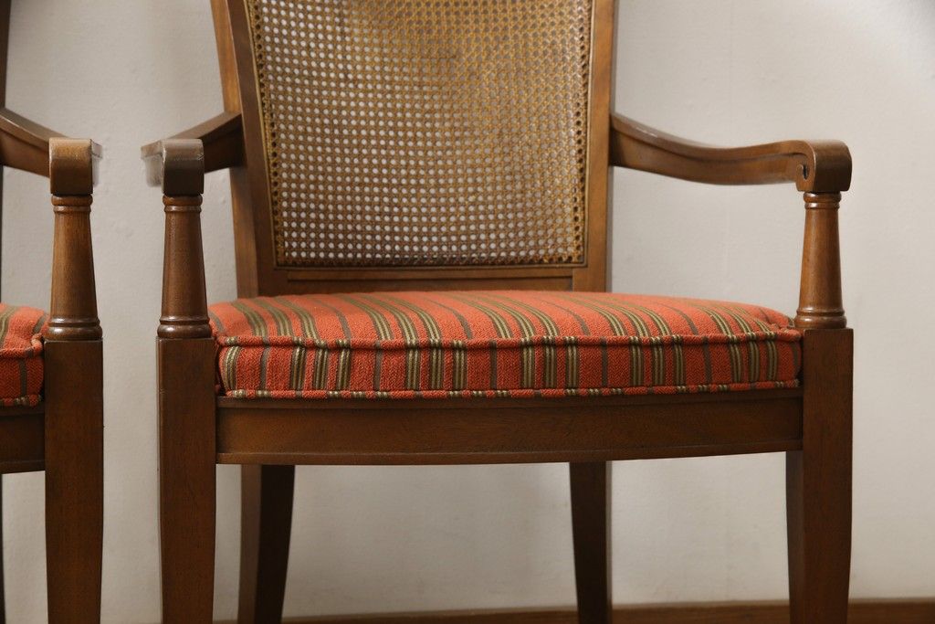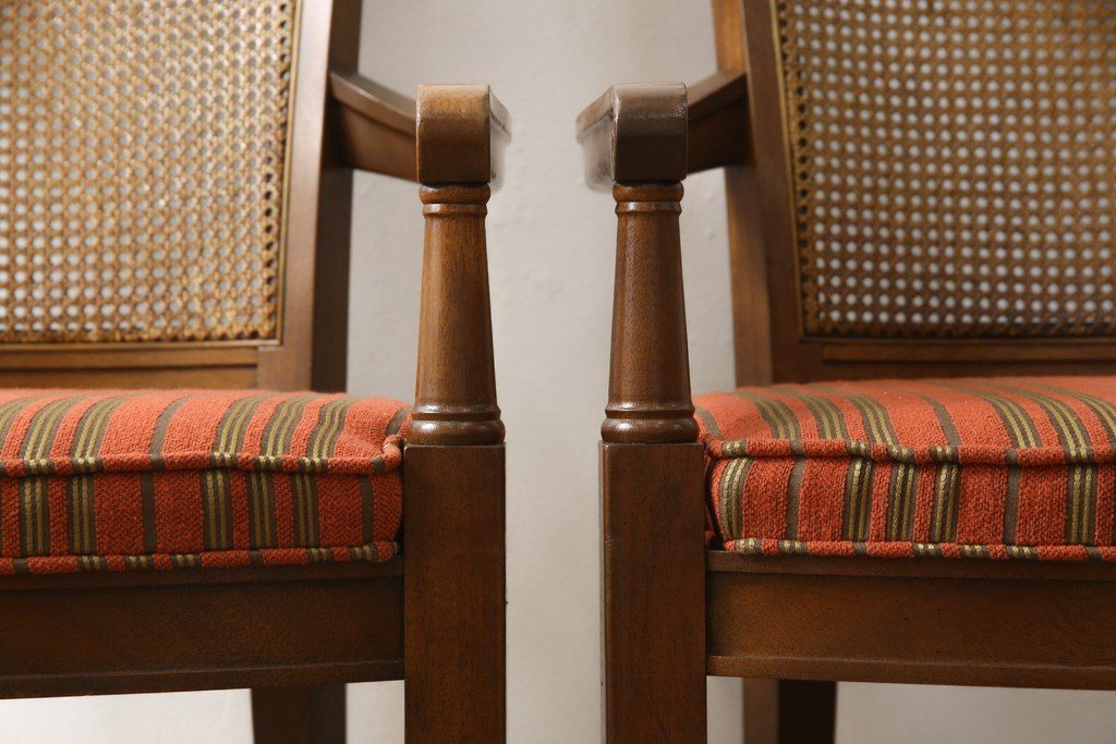 椅子・ベンチ> アームチェア > ダイニングチェア6脚セットをリペア&カスタム!座面をご希望の生地に張り替え。同生地・同系色の生地にてパイピングを取付け。(イス、椅子、アームチェア)