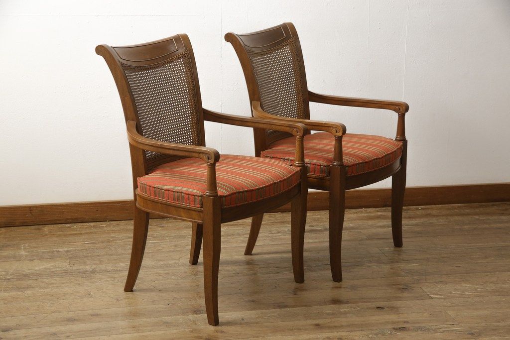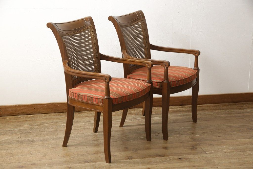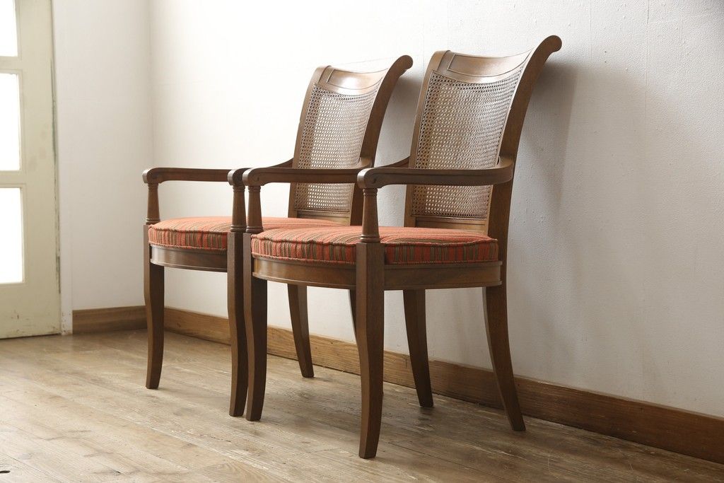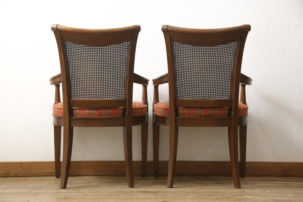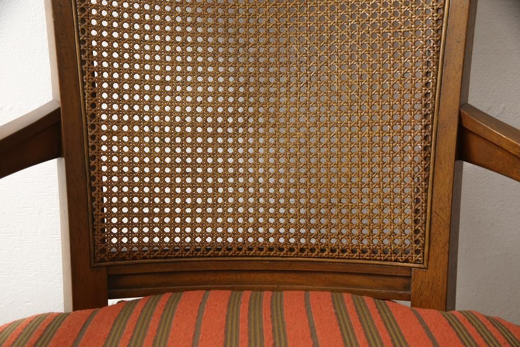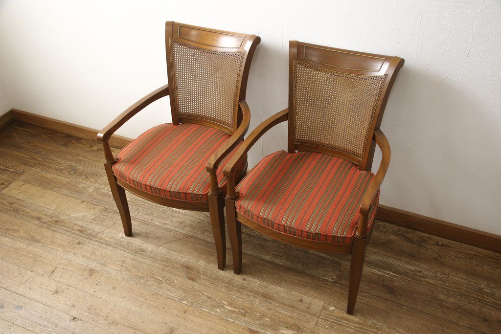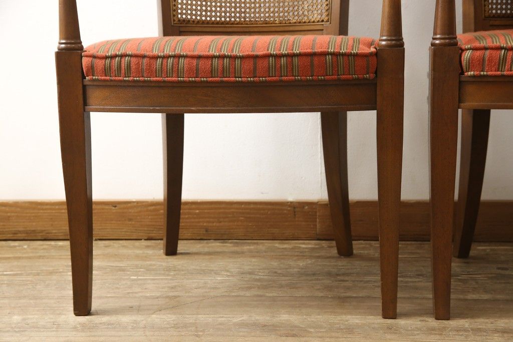椅子・ベンチ> アームチェア > ダイニングチェア6脚セットをリペア&カスタム!座面をご希望の生地に張り替え。同生地・同系色の生地にてパイピングを取付け。(イス、椅子、アームチェア)