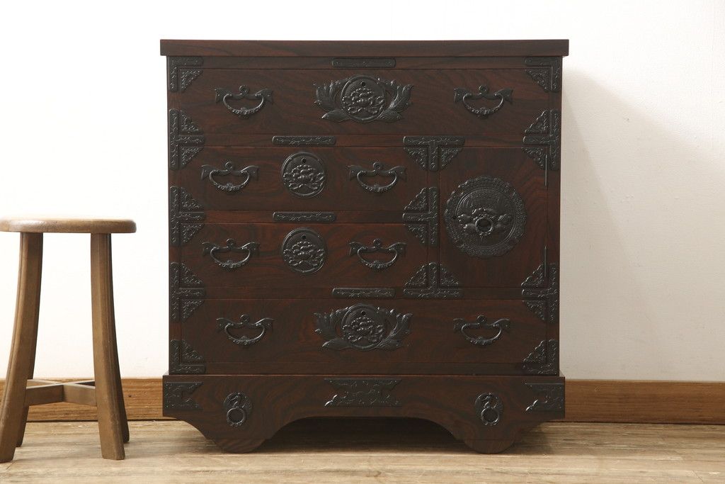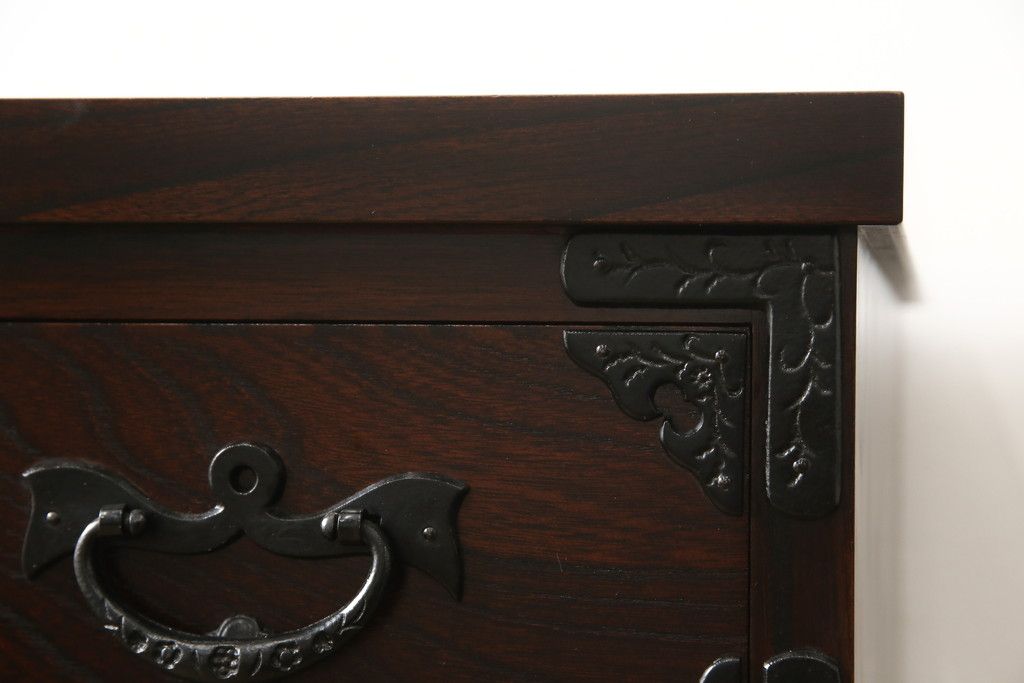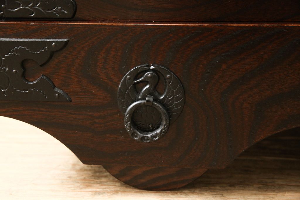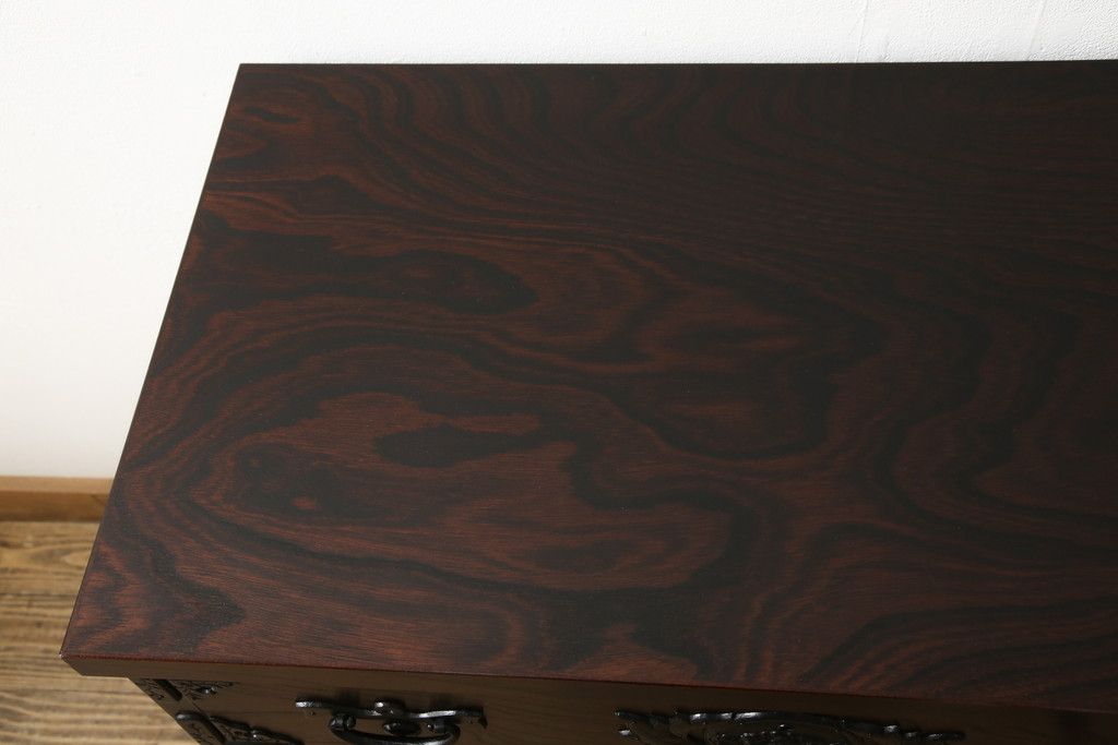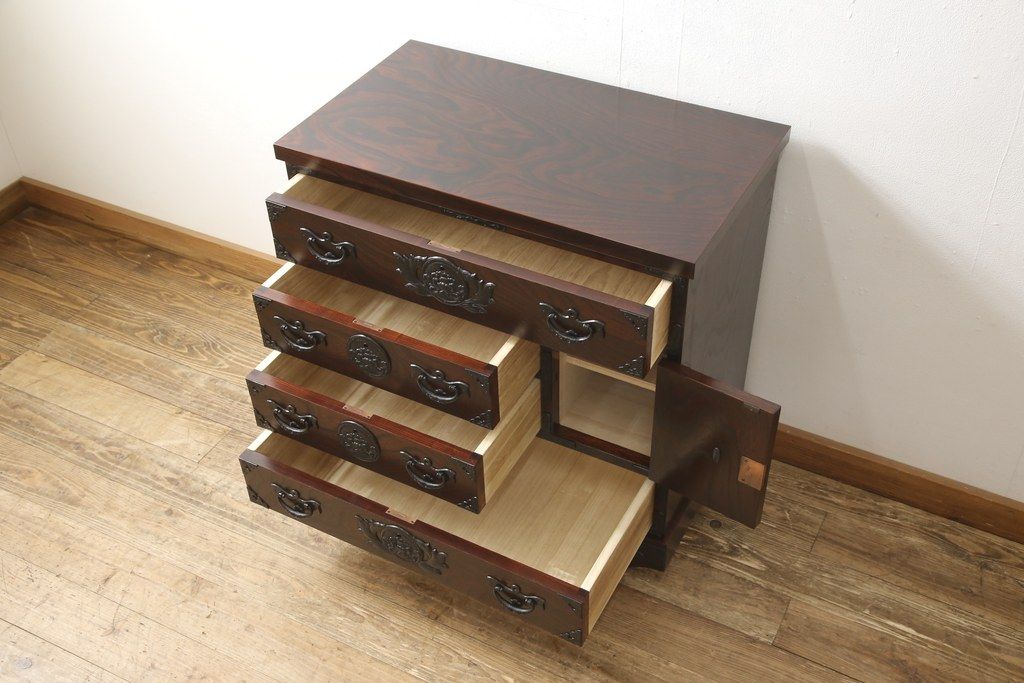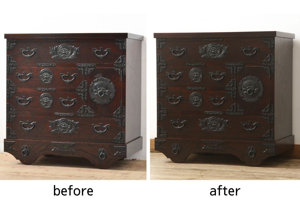 民芸家具 > 車箪笥をリペア&カスタム!背面のシールを剥がし、跡も綺麗に。(小箪笥、チェスト、引き出し)