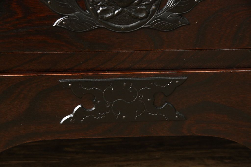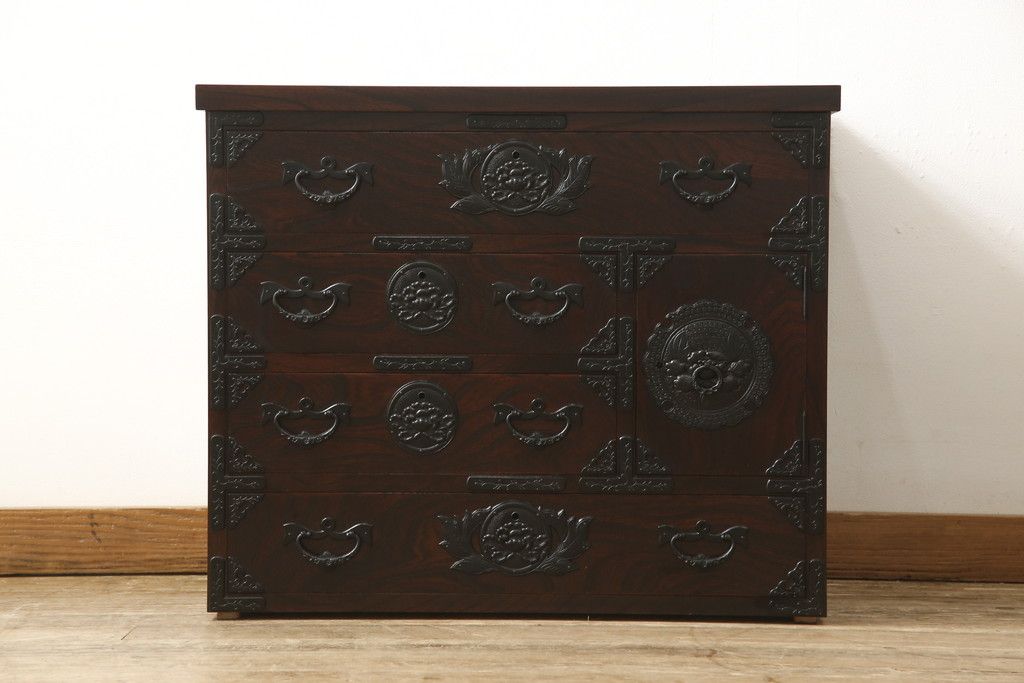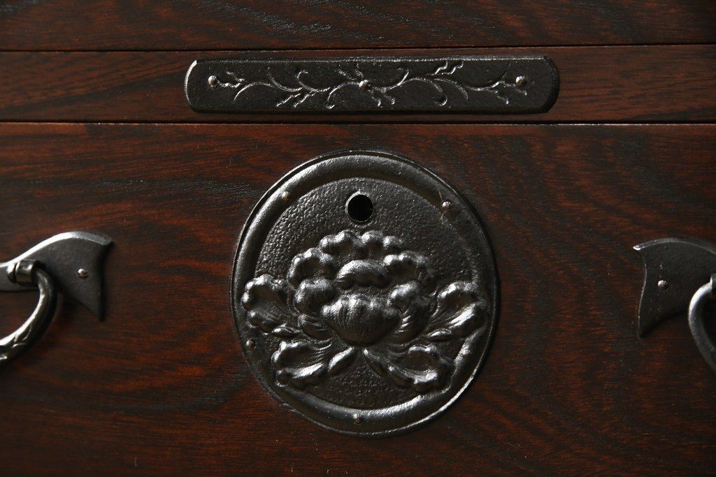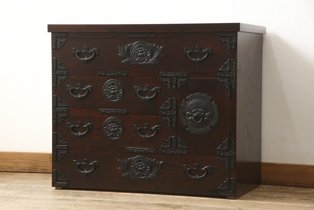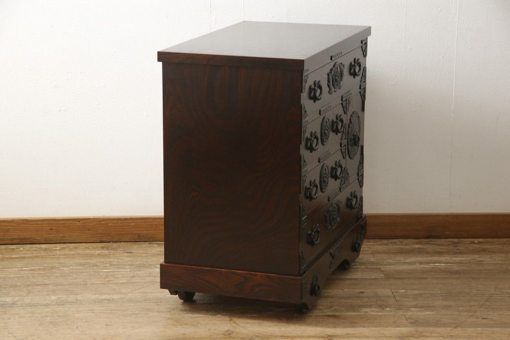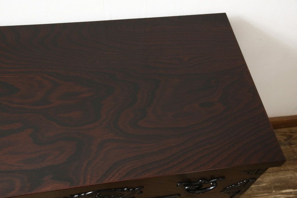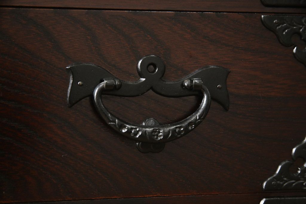 民芸家具 > 車箪笥をリペア&カスタム!背面のシールを剥がし、跡も綺麗に。(小箪笥、チェスト、引き出し)