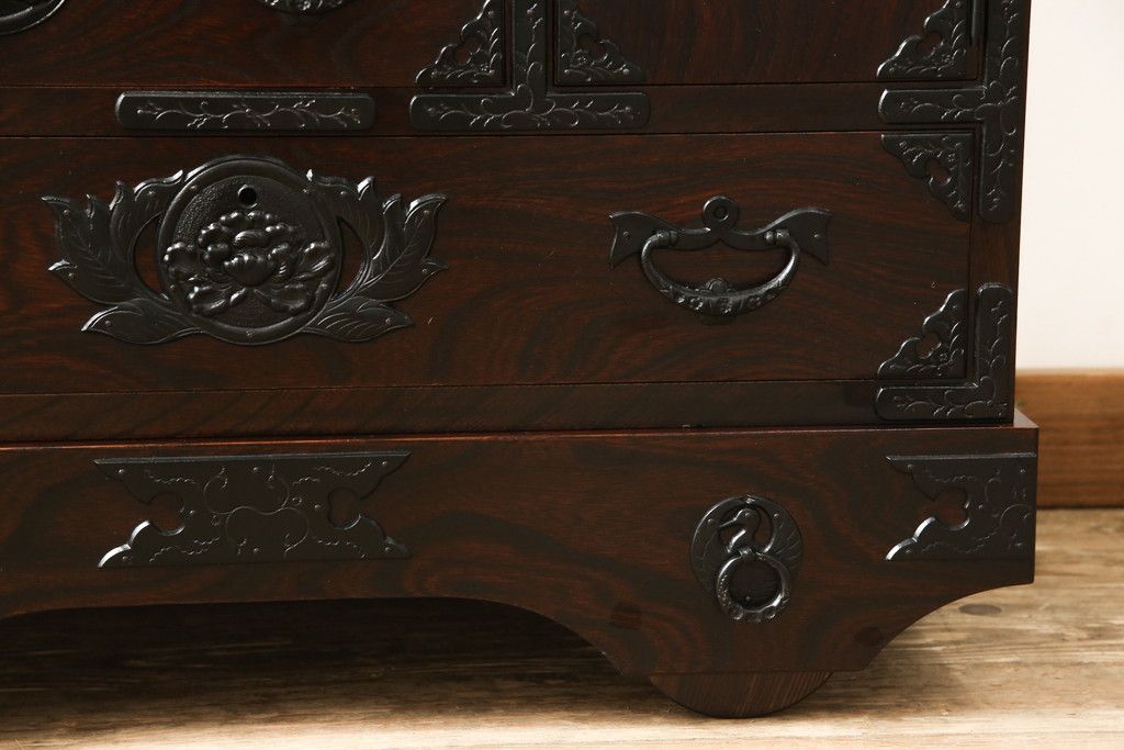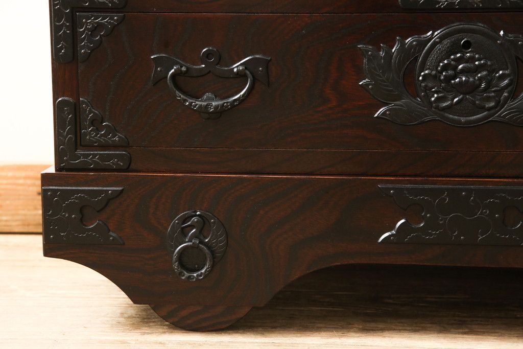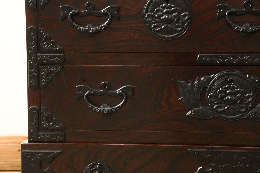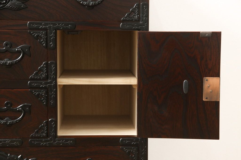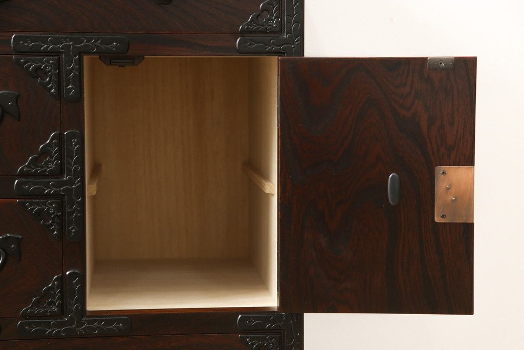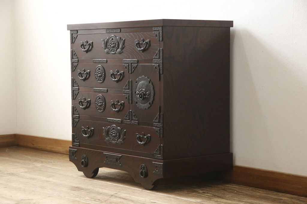 民芸家具 > 車箪笥をリペア&カスタム!背面のシールを剥がし、跡も綺麗に。(小箪笥、チェスト、引き出し)