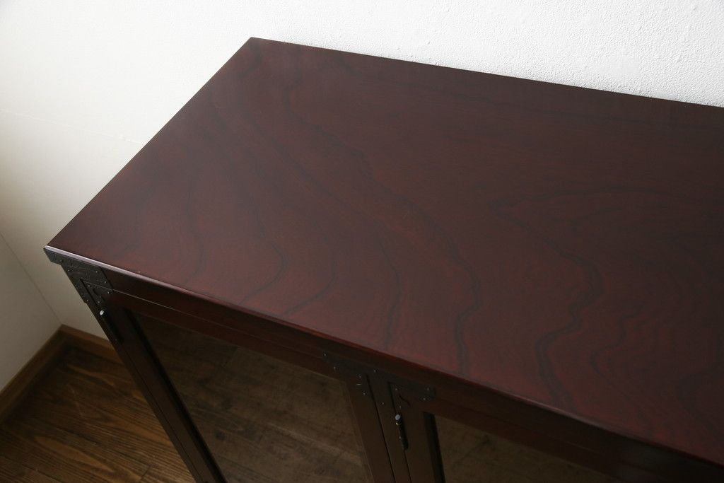 民芸家具 > 水屋箪笥キャビネットをリペア&カスタム!希望の高さにカットした脚を取り付け。新材使用の脚はリペア後の本体に合わせて着色。(食器棚、戸棚、収納棚、飾り棚)