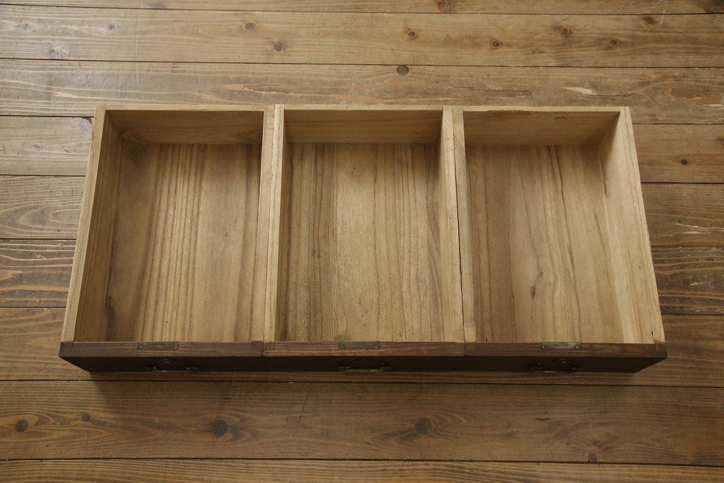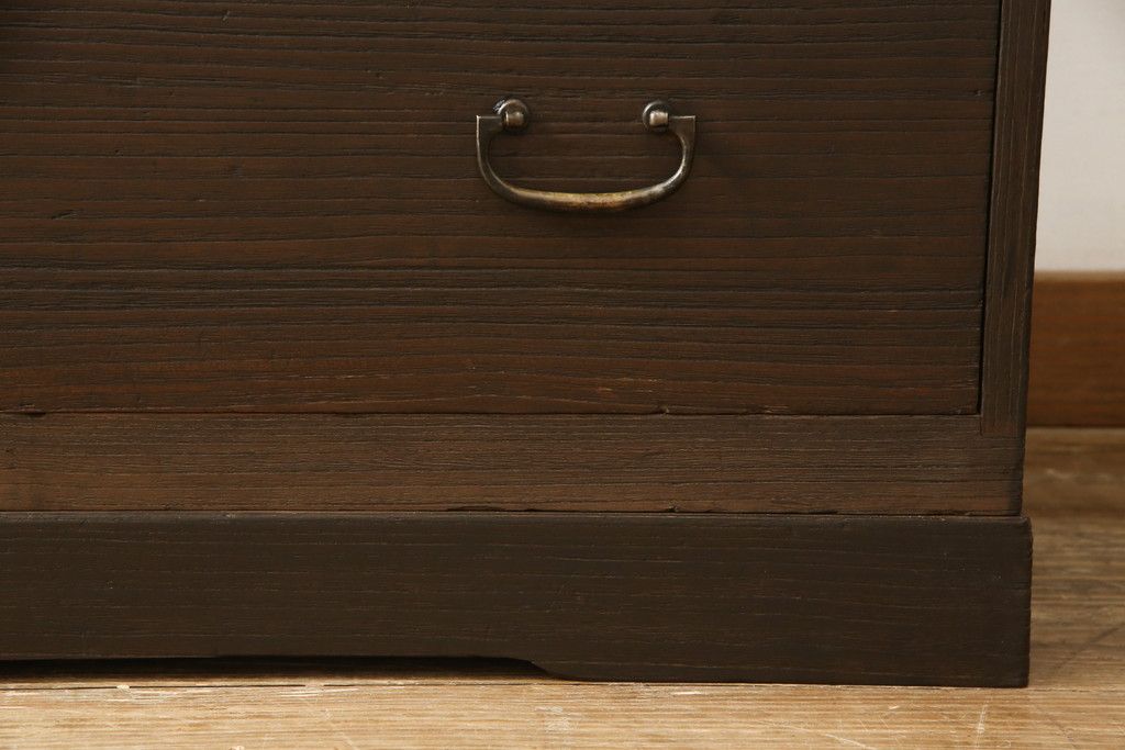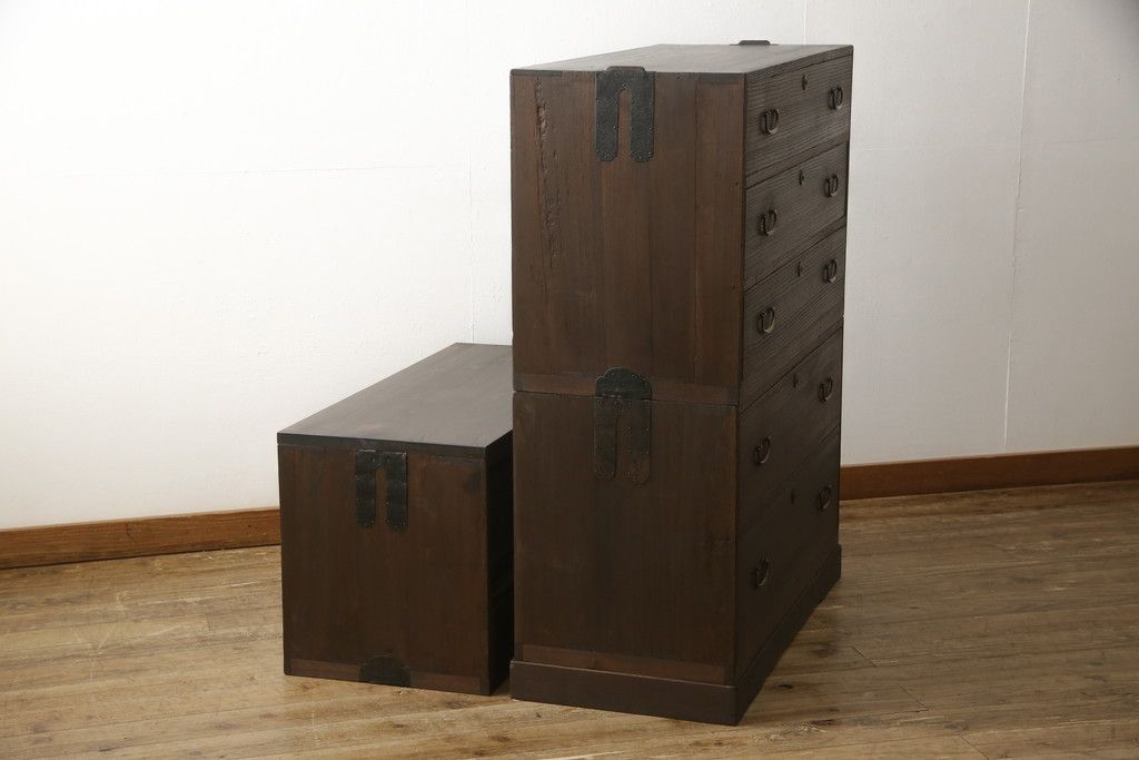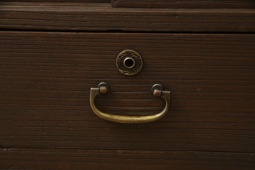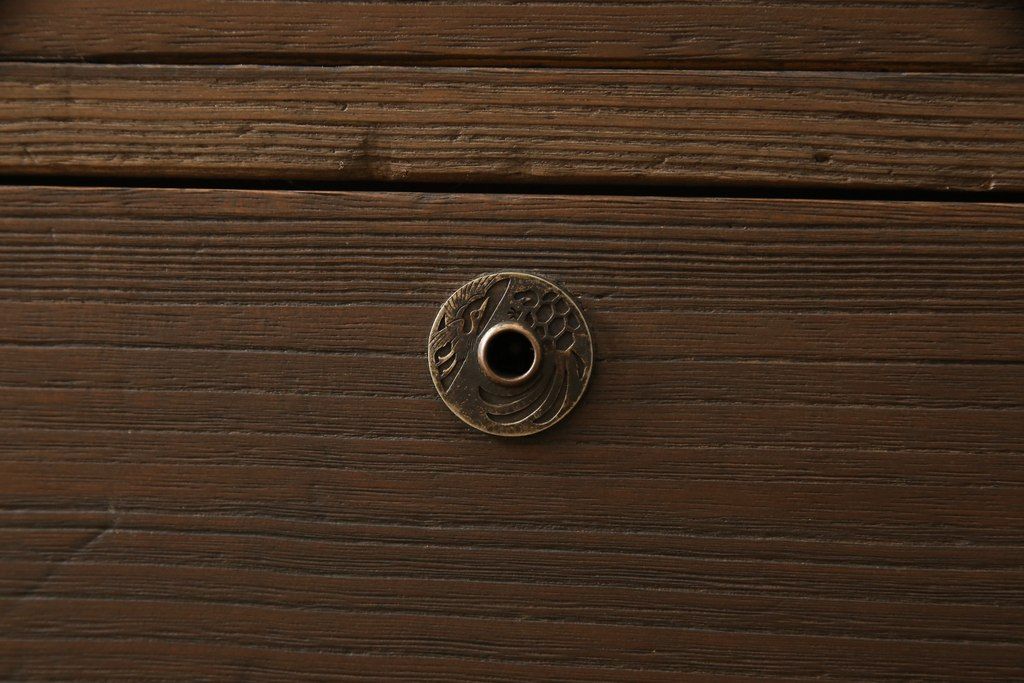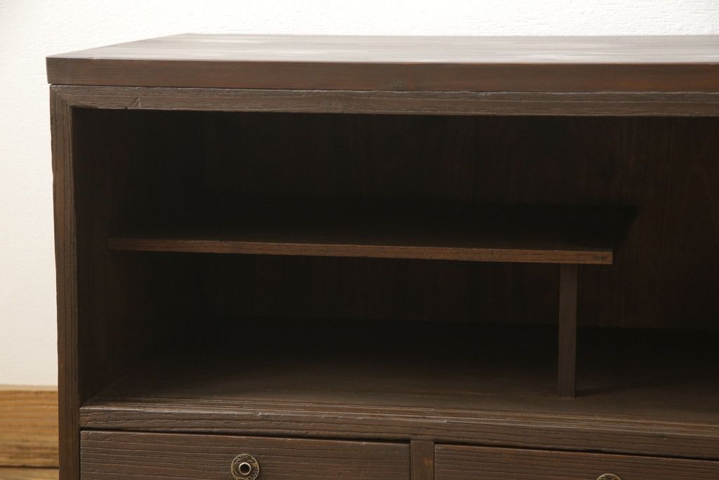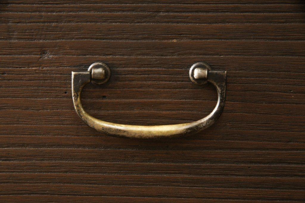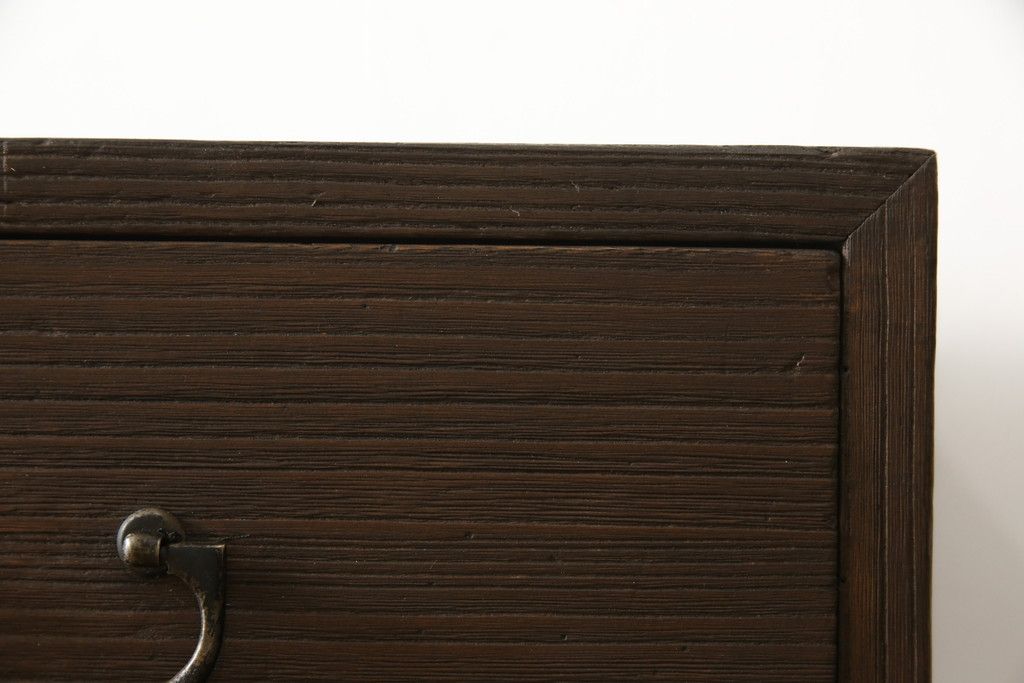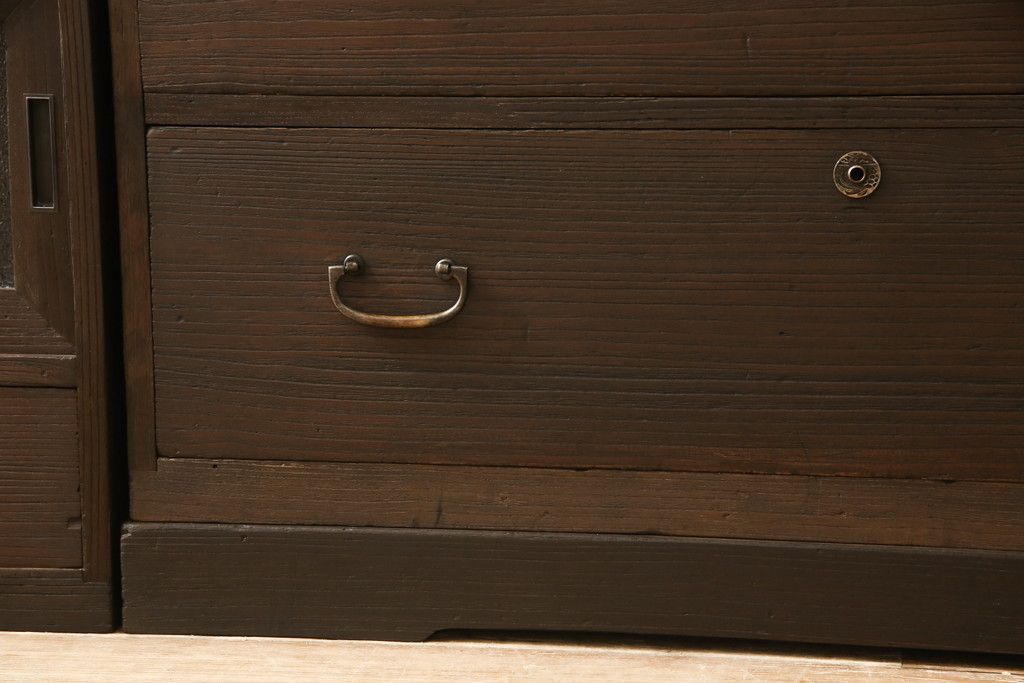 桐箪笥をテレビボードとチェストにリメイク!上段は天板を取り付け、ダイヤガラスをはめ込み、ガラス戸に変更。中段・下段は内側から天板補強。どちらも現状をベースに1トーン程落ち着いた色味に着色仕上げ。