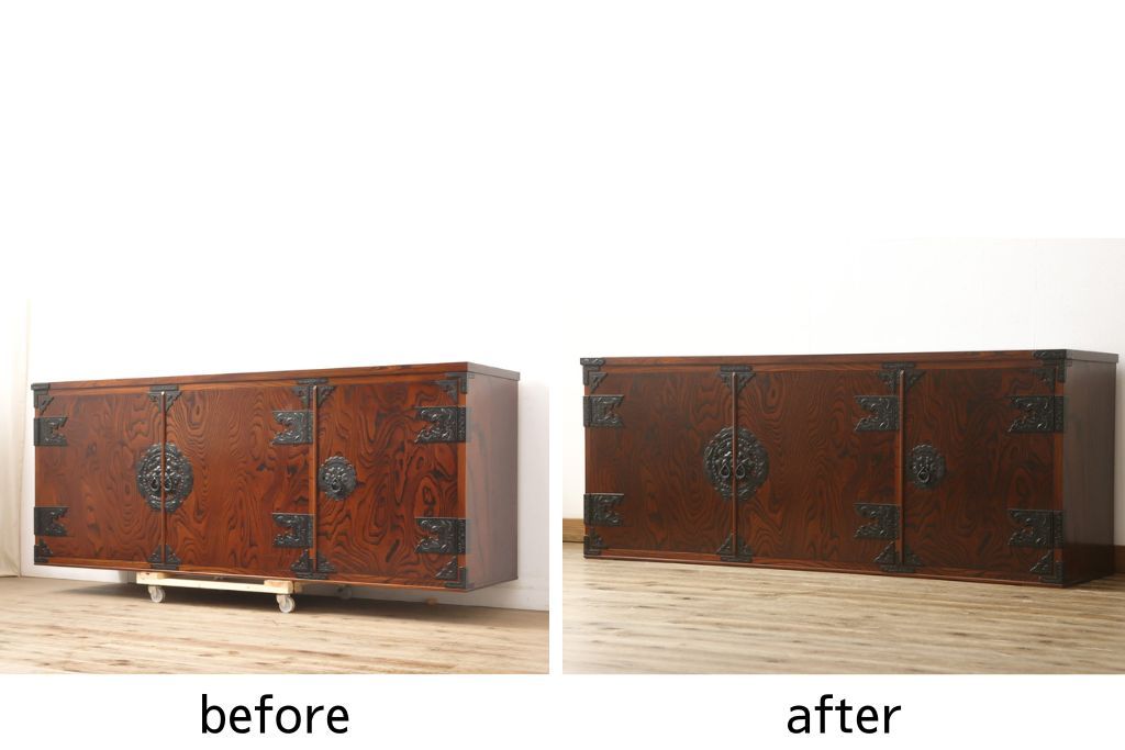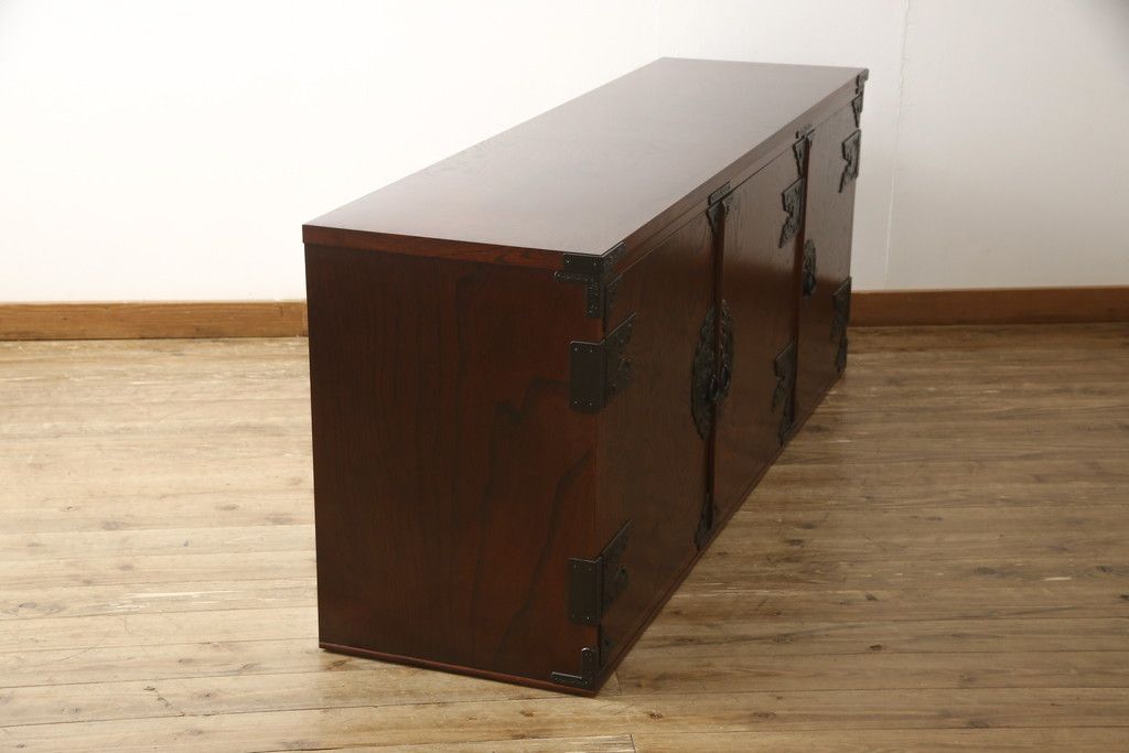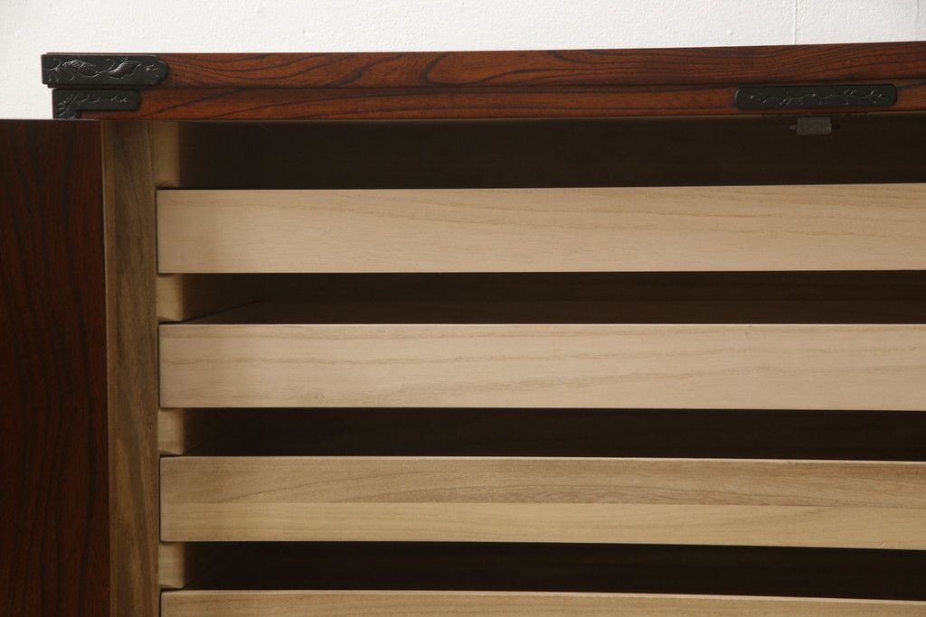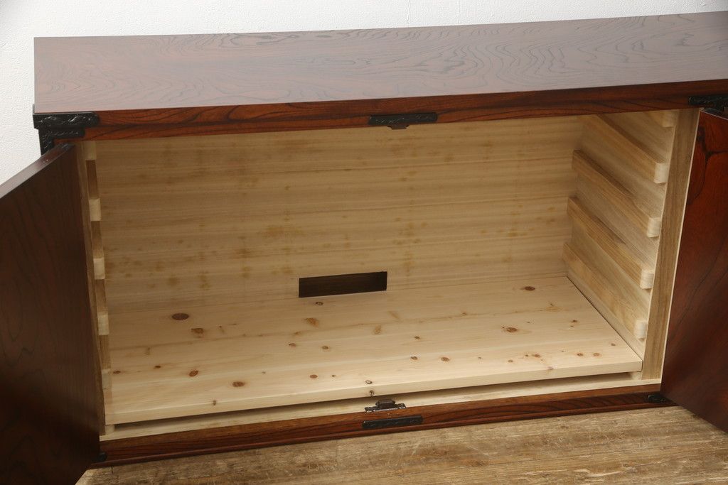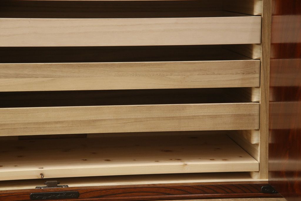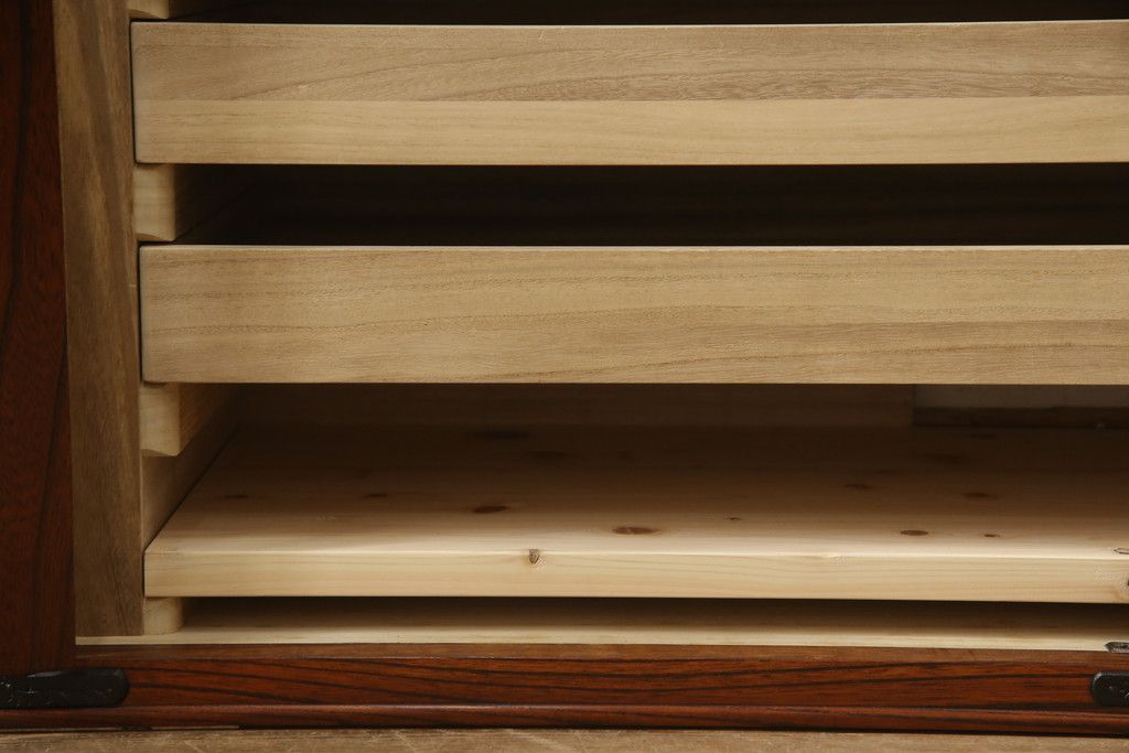和箪笥> 着物箪笥 > サイドボードをリペア&カスタム!配線用穴あけ加工を施し、お盆2杯・棚板1枚製作。色味は現状のお品物に合わせて着色。(ローボード、サイドキャビネット、収納棚、戸棚、テレビ台、着物箪笥)