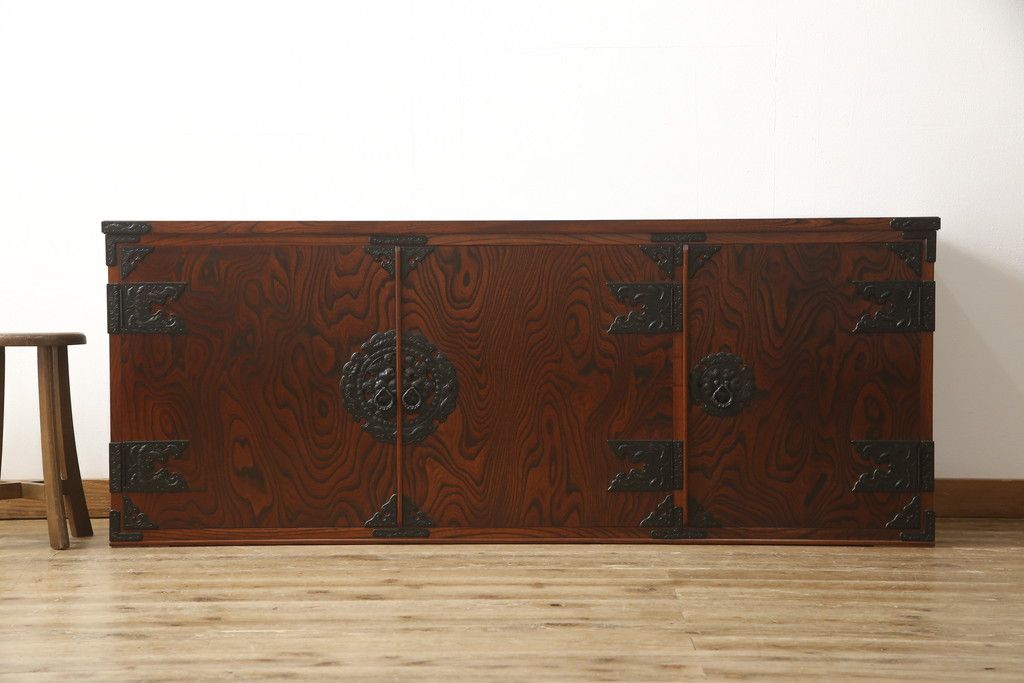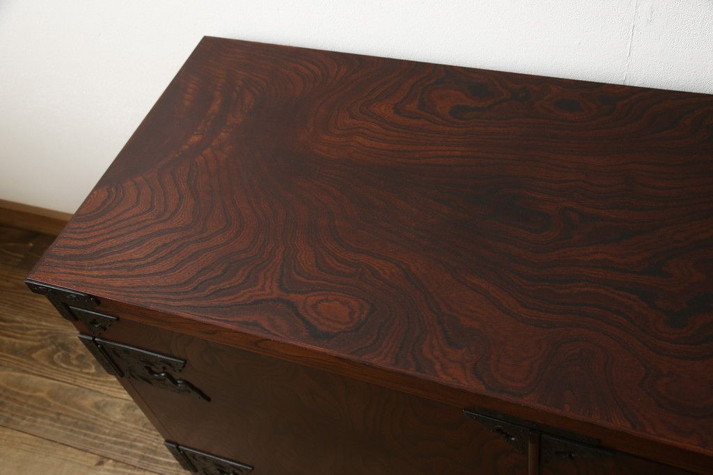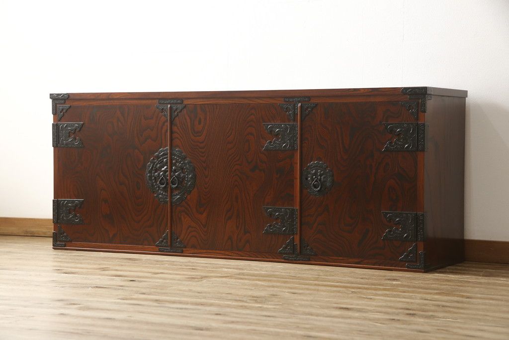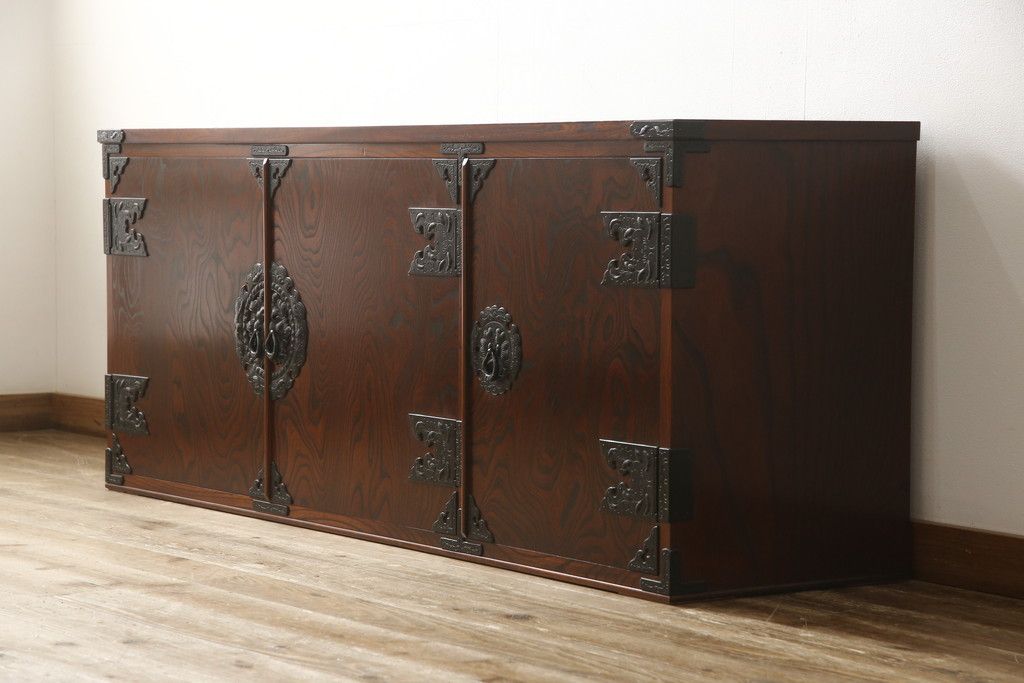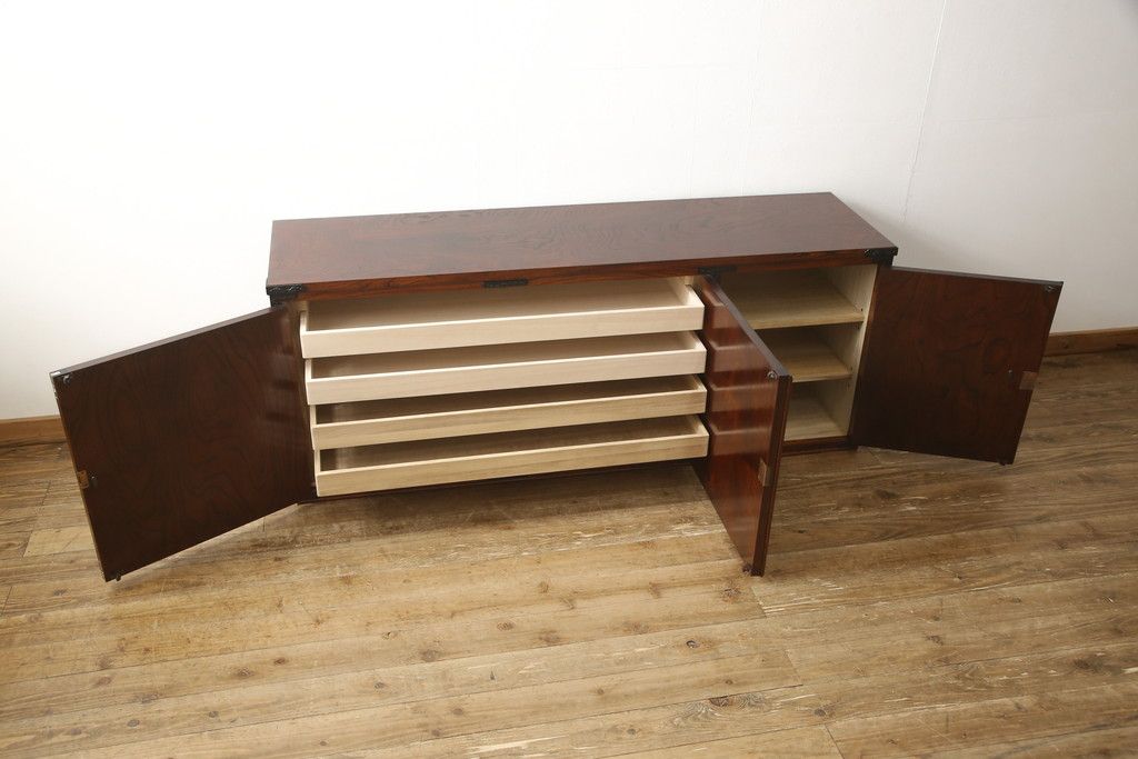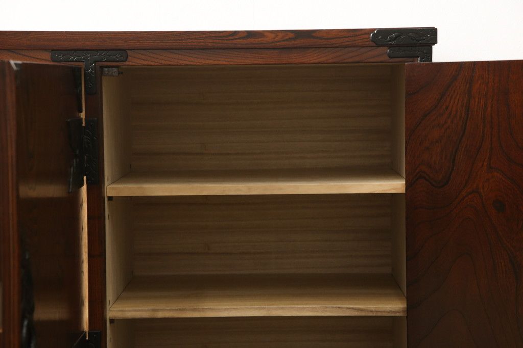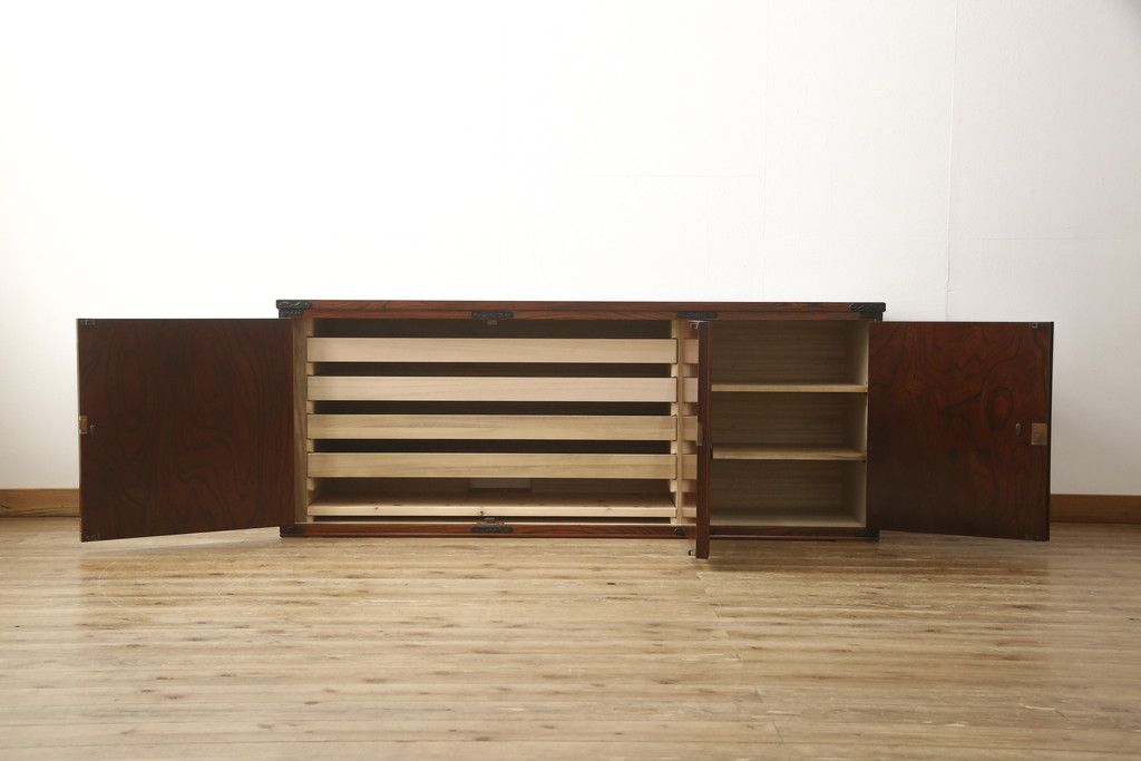 和箪笥> 着物箪笥 > サイドボードをリペア&カスタム!配線用穴あけ加工を施し、お盆2杯・棚板1枚製作。色味は現状のお品物に合わせて着色。(ローボード、サイドキャビネット、収納棚、戸棚、テレビ台、着物箪笥)