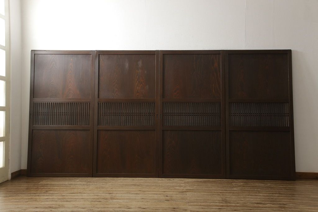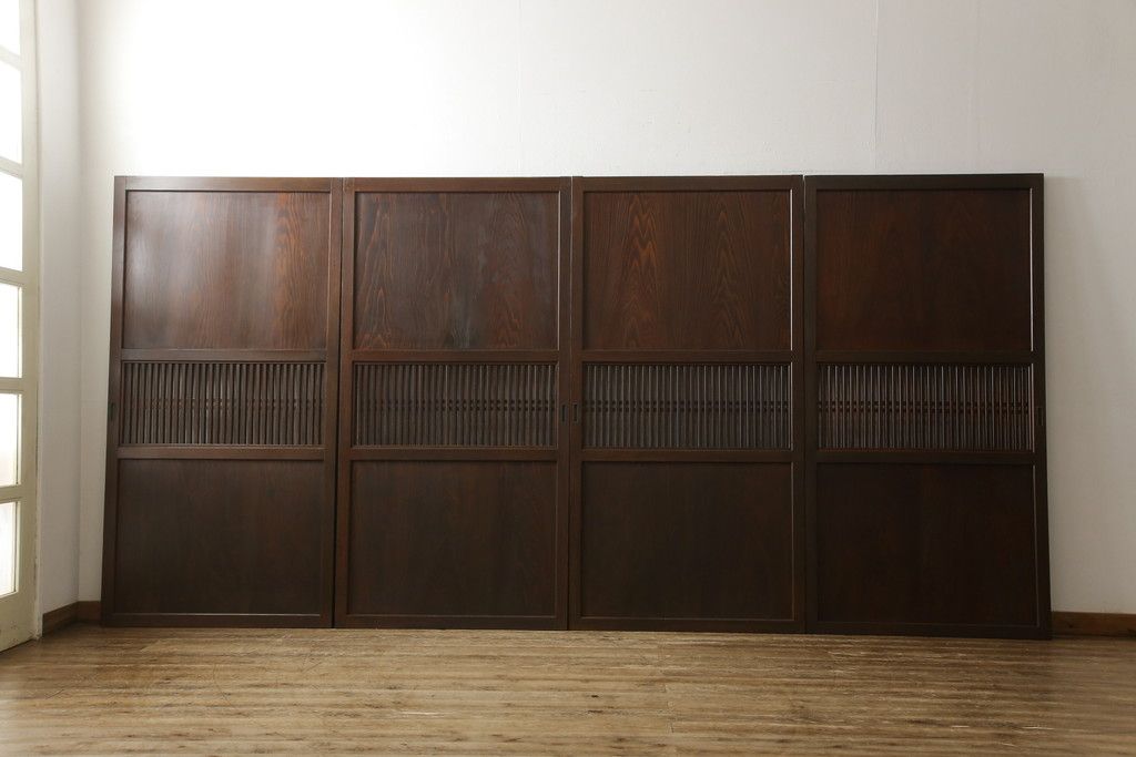 ラフジュ工房> ドア・建具> 引き戸 > 格子帯戸4枚をリペア&カスタム!葵戸引手を取り付け、色味は当店商品を参考に着色。(板戸、引き戸、建具)