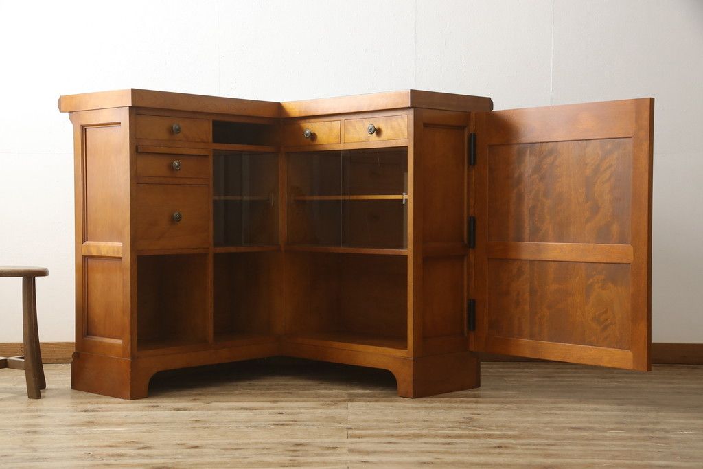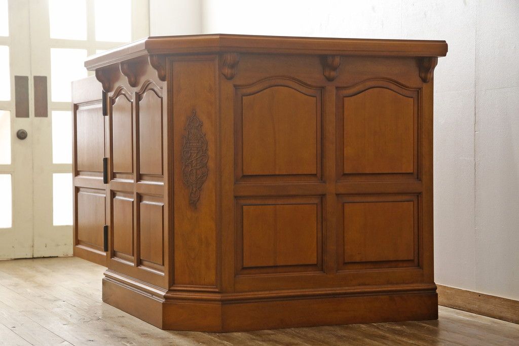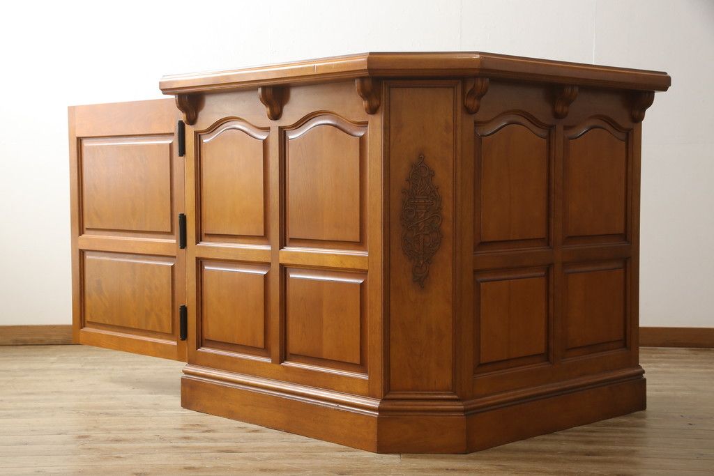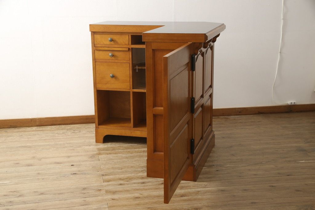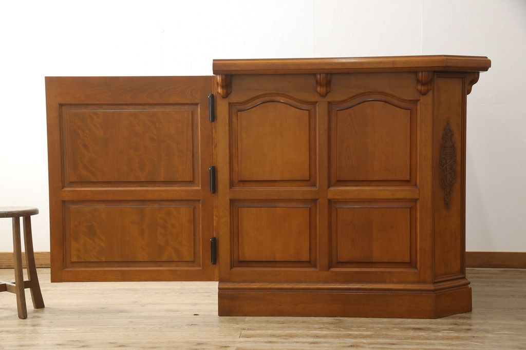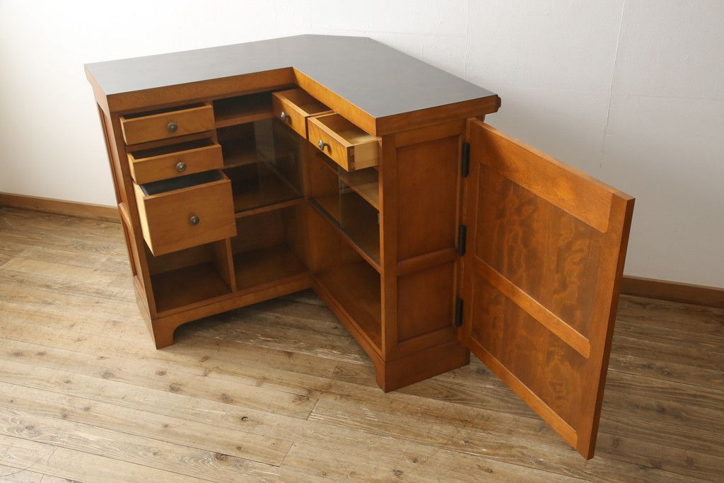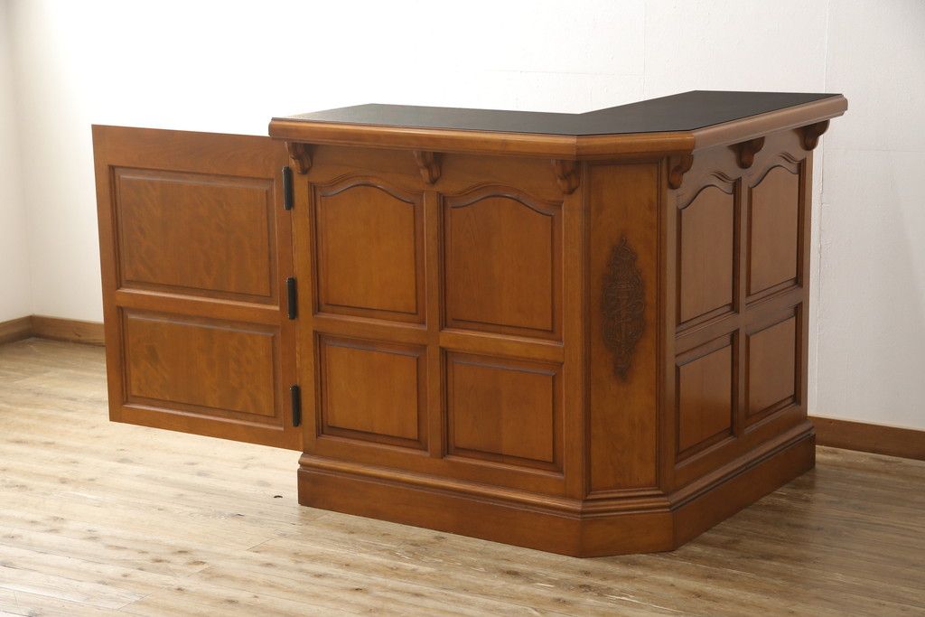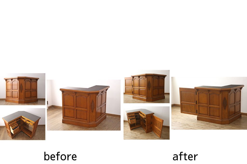 コーナーカウンターをリペア&カスタム!開き扉を新たに製作し、色味は既存の色に合わせた着色。(収納棚、カウンターテーブル)