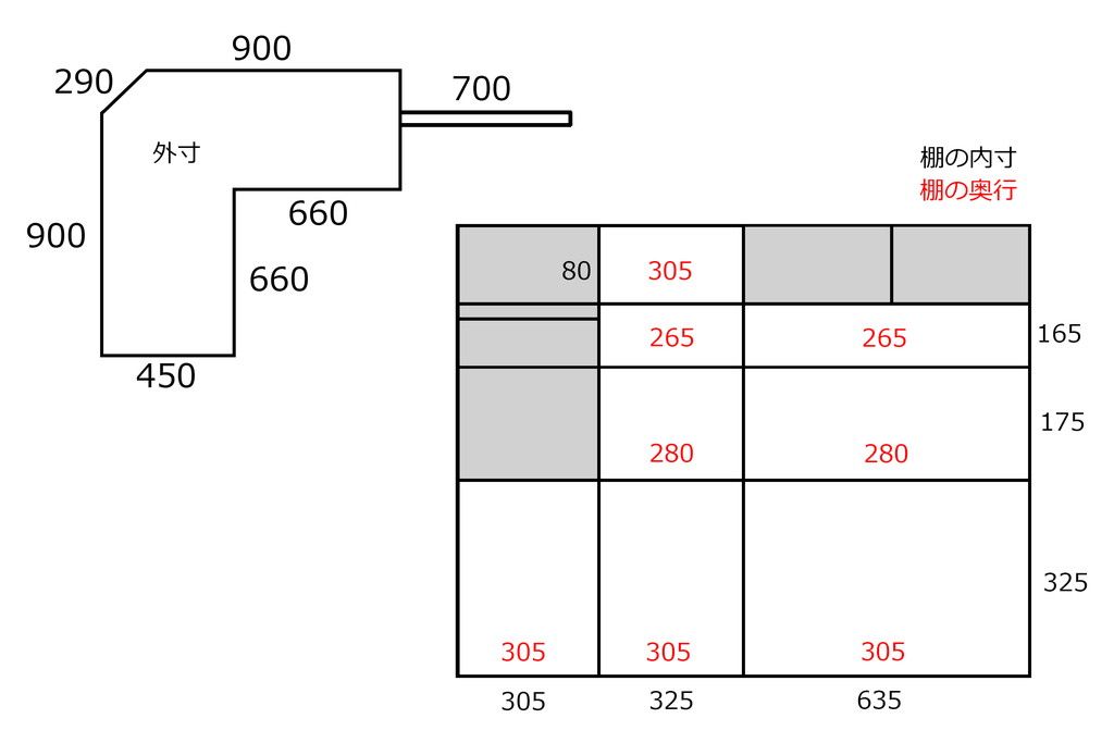 設置場所や収納するものは余裕をもってお考えいただくか、改めて正確に計測いたしますのでお申し付けください。