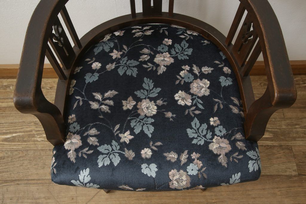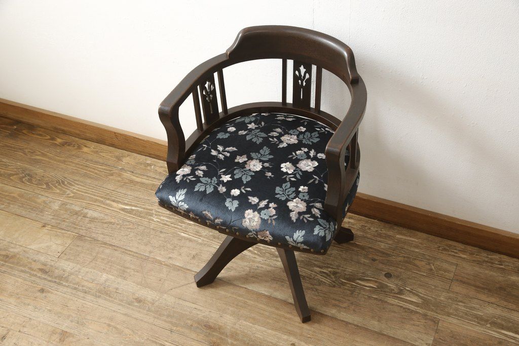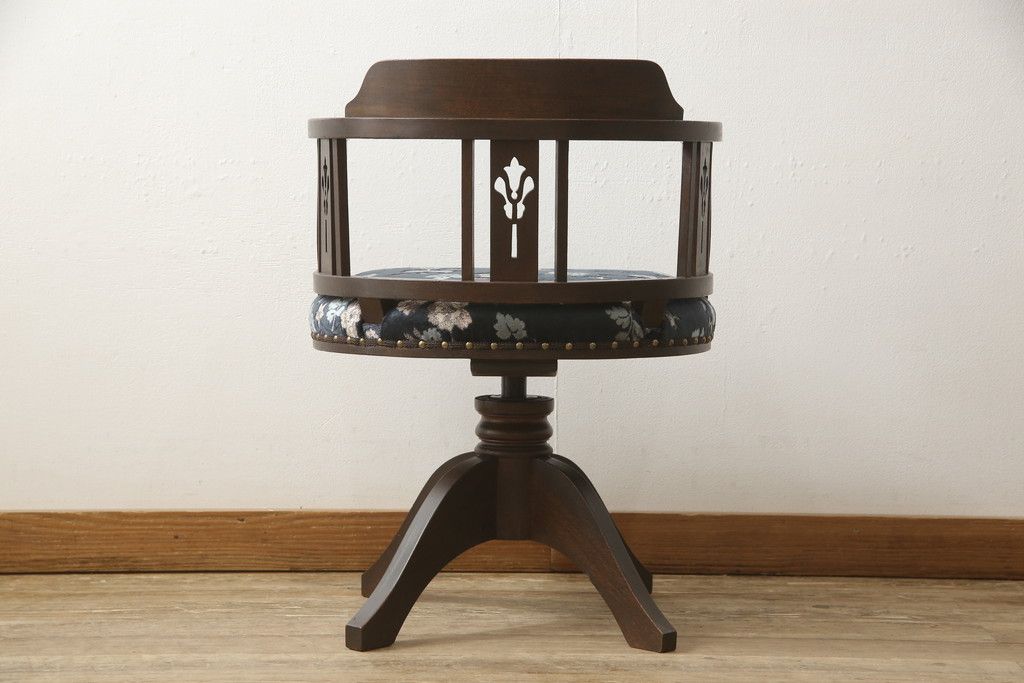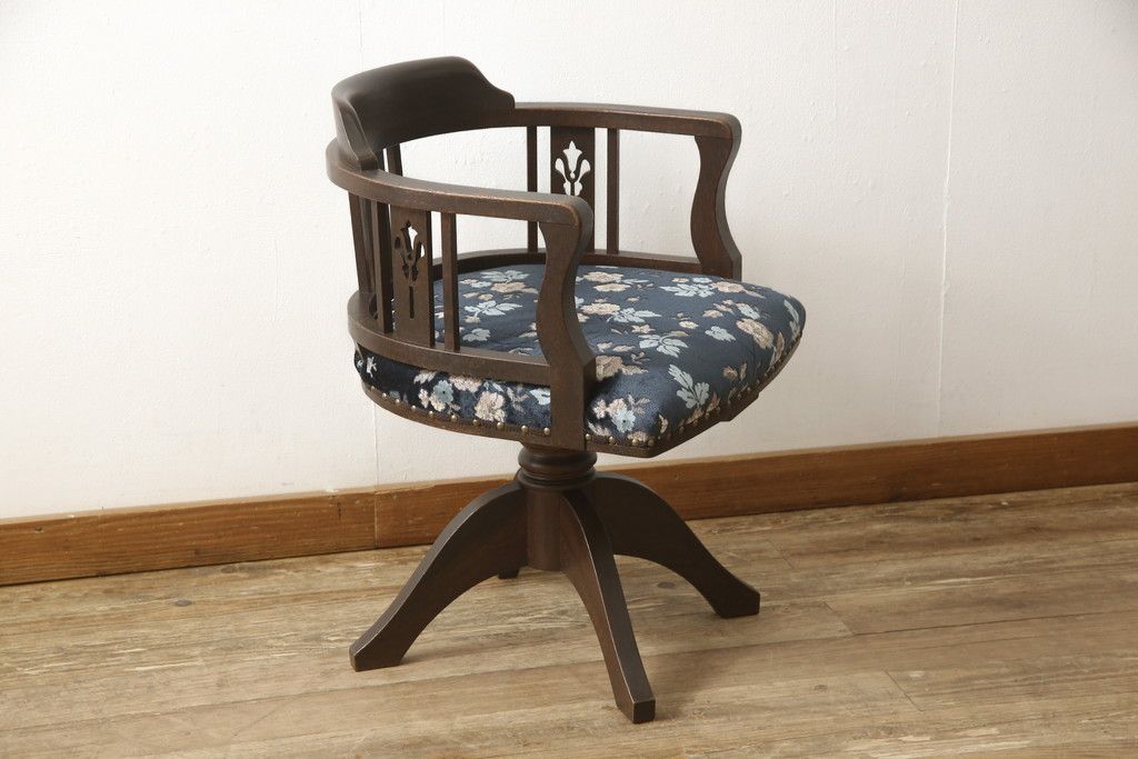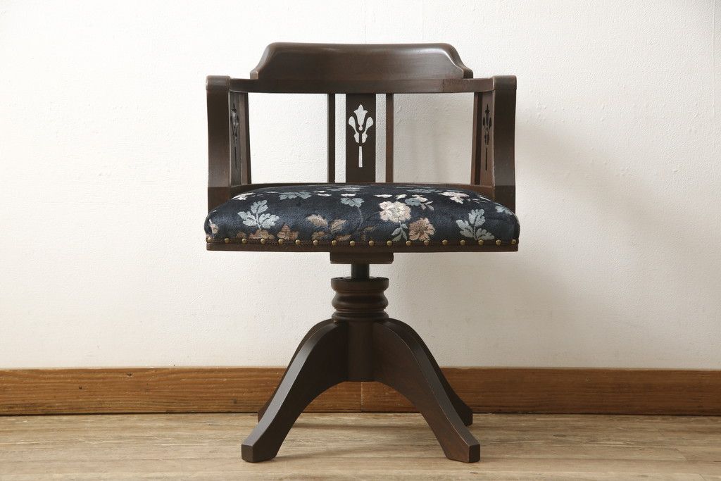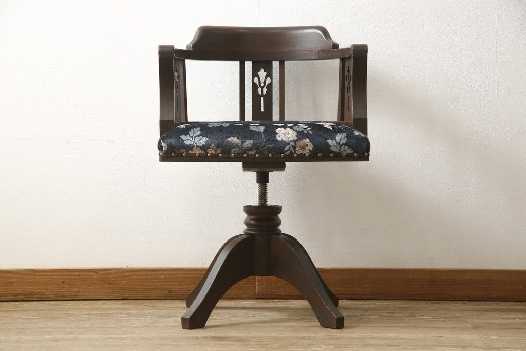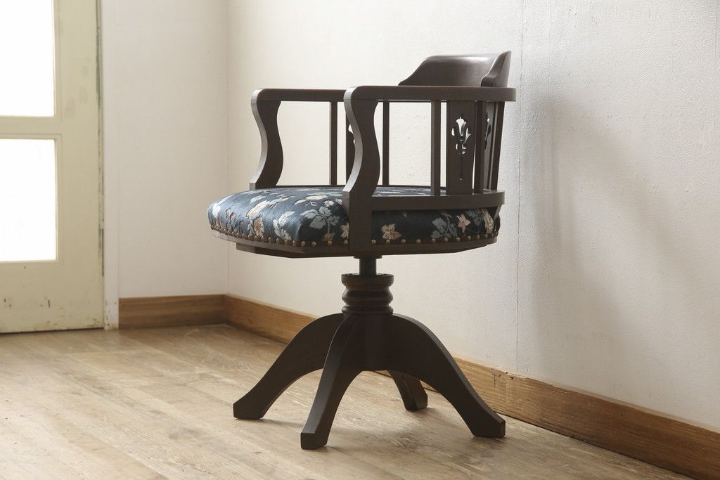 椅子・ベンチ> 回転椅子 > ドクターチェアをリペア&カスタム!お好みの生地と座面に張り替え、鋲を交換。本体は現状のお品物に合わせて1トーン程落ち着いた色に着色。(回転椅子、イス)