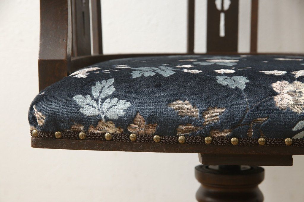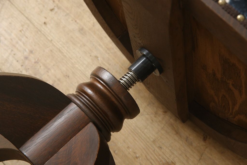 セミオーダー家具実績 > ドクターチェアをリペア&カスタム!お好みの生地と座面に張り替え、鋲を交換。本体は現状のお品物に合わせて1トーン程落ち着いた色に着色。(回転椅子、イス)