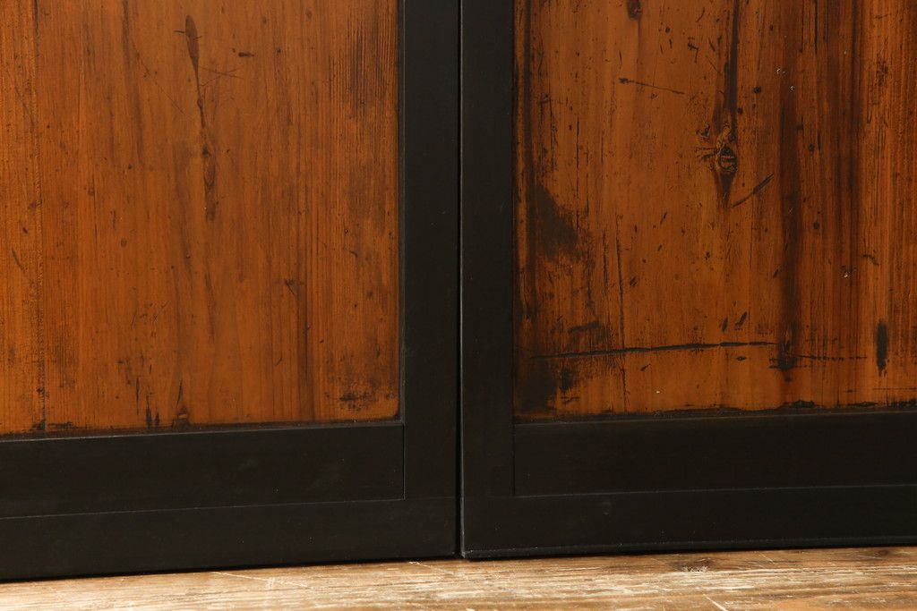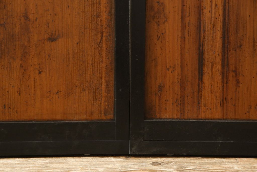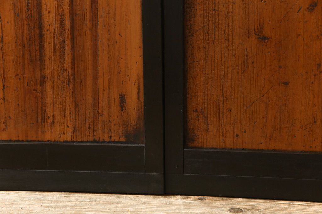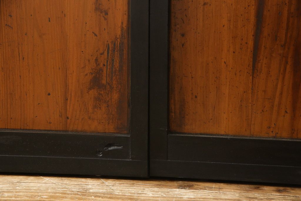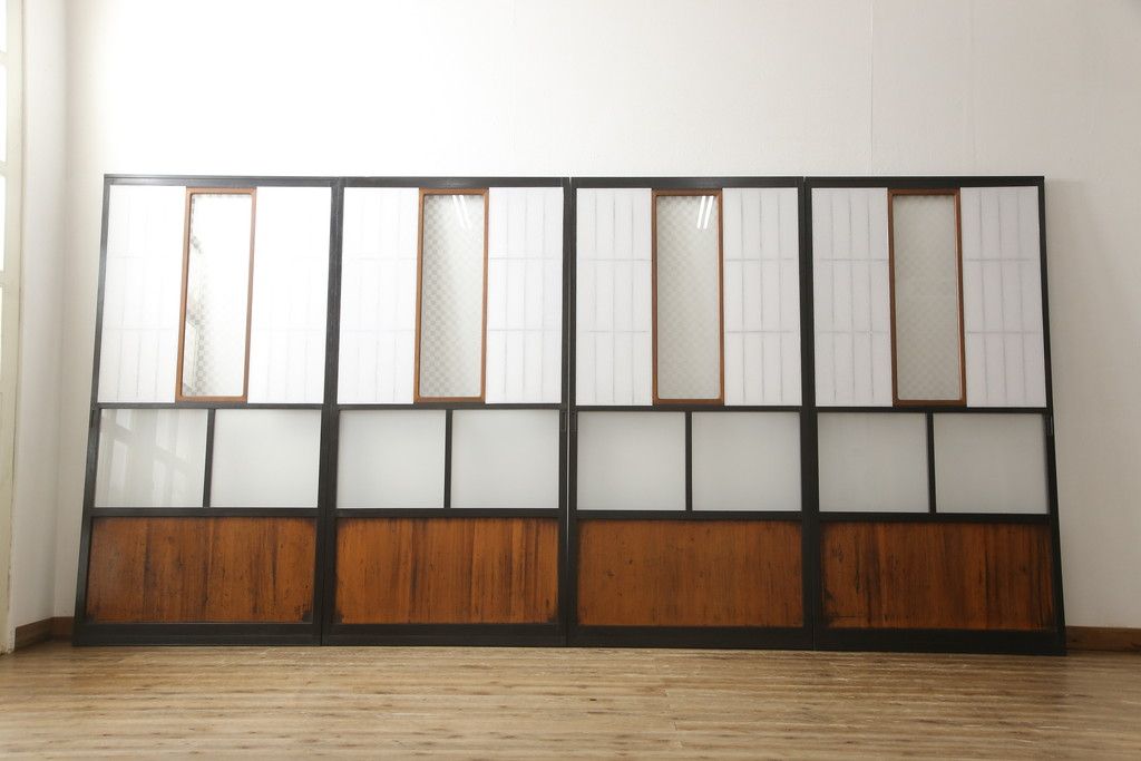 ドア・建具> 板戸・帯戸 > 障子戸4枚をリペア&カスタム!格子部の中央を市松紋様ガラスに変更し、下段の2マスはすりガラスへ差し替え。既存の障子をプラスチック障子紙に張り替え、葵戸引手、戸車を取り付け。現状に合わせて1トーン程落ち着いた色に着色。(引き戸、建具)