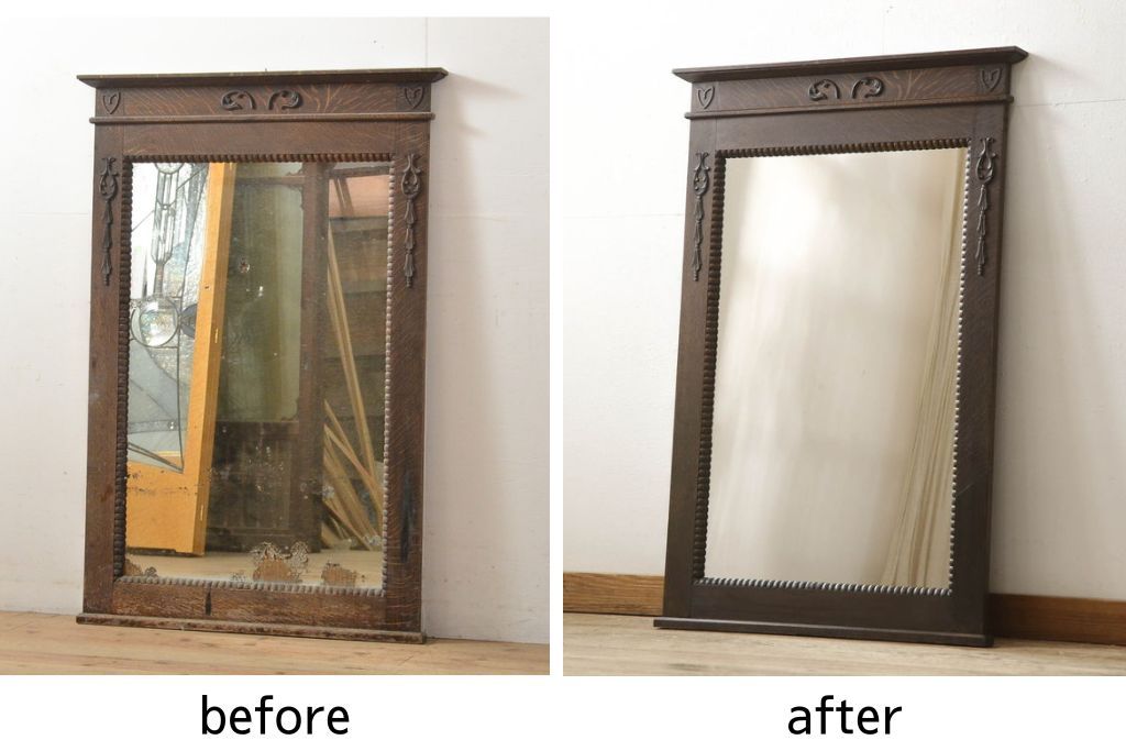 セミオーダー家具実績 > ウォールミラーをリペア&カスタム!薄くて軽量の鏡に交換し、背面の板を取り外してフラットに。現状の品物に合わせて1トーン程落ち着いた色に着色。(壁掛け鏡)