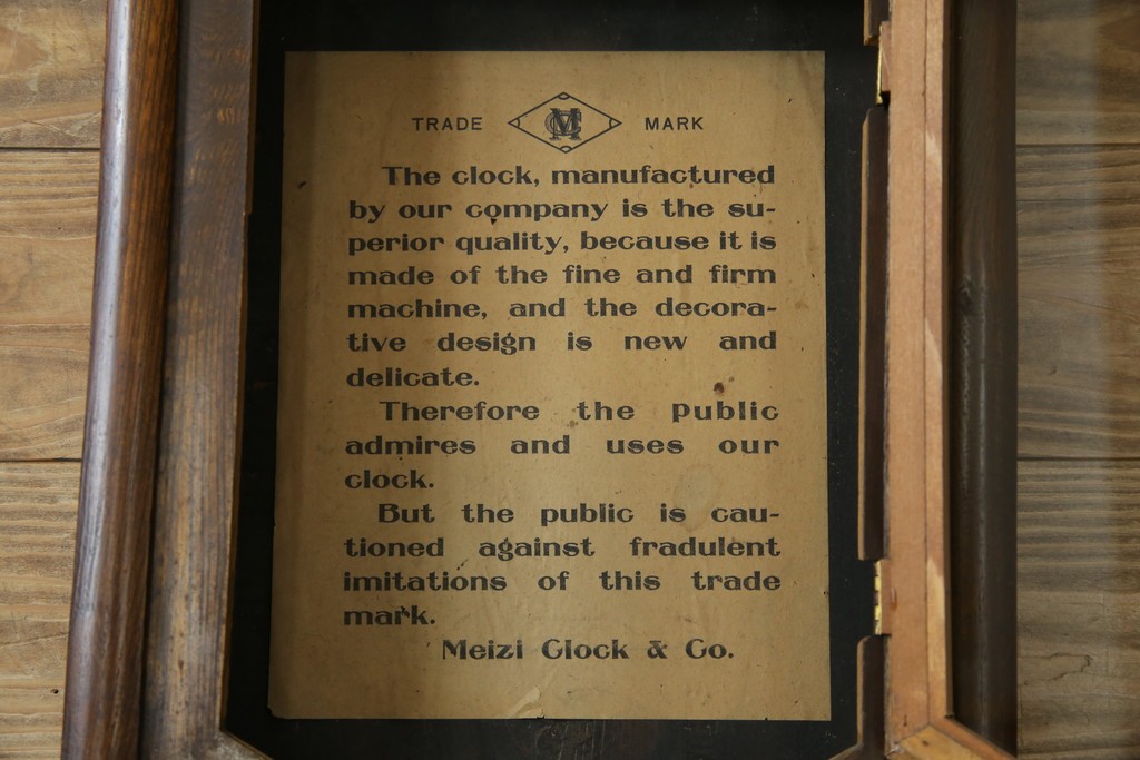 時計 > 和製アンティーク 明治時計製 TRADE MARK(トレードマーク) クラシカルな雰囲気漂う大型掛け時計 (R-072247)