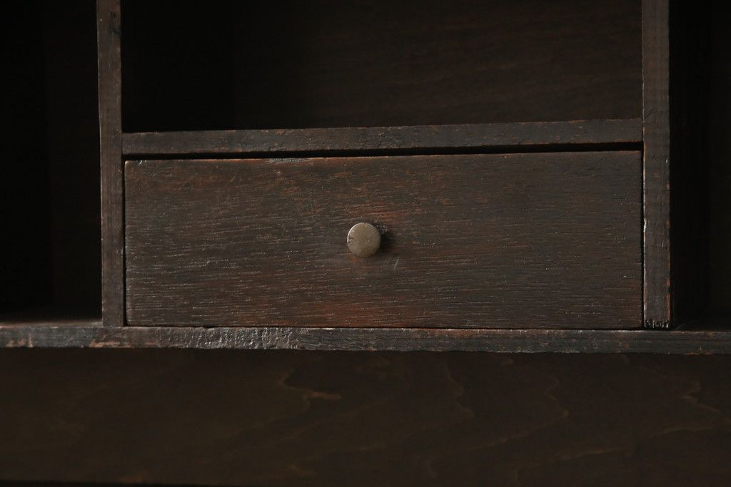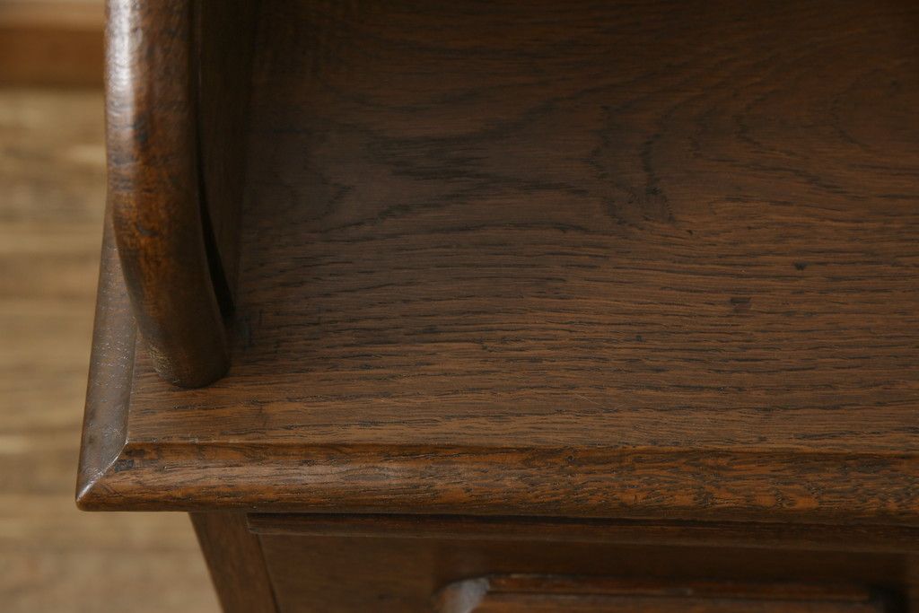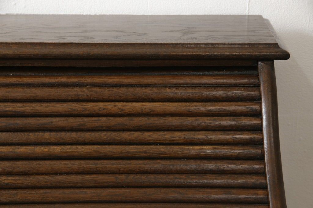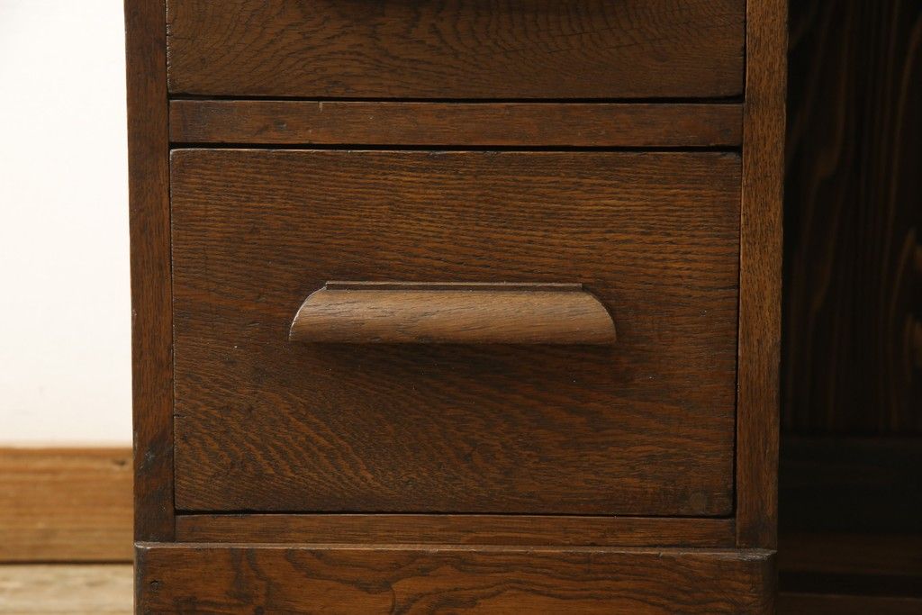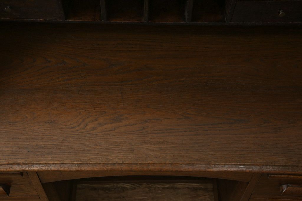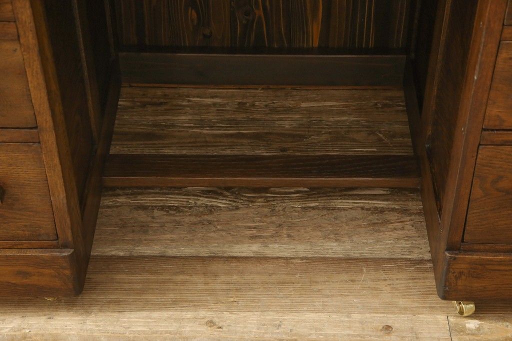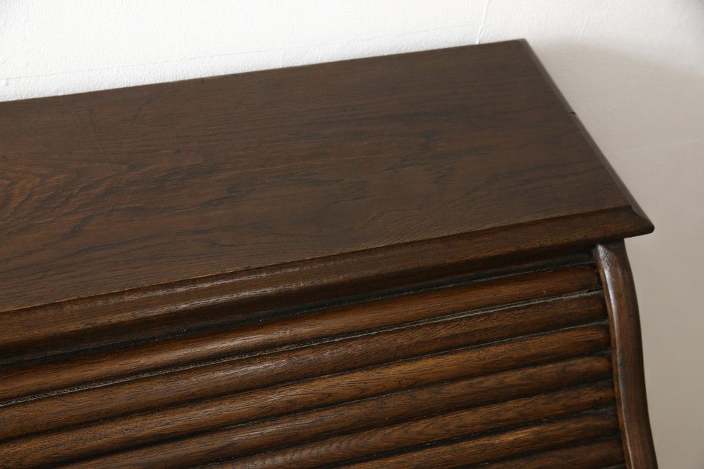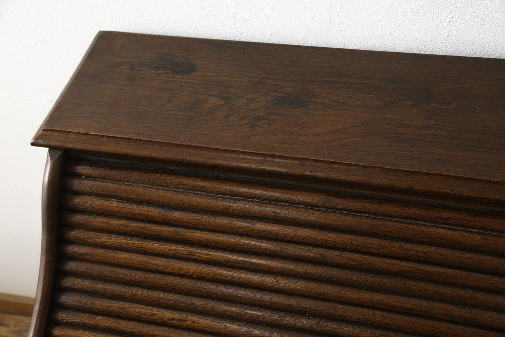 デスク> ワークデスク > ロールトップデスクをリペア&カスタム!鍵穴に埋木処置をし、背板の加工、真鍮のキャスターを取り付け。現状の雰囲気を残した色味に着色。(机、在宅ワーク、在宅用両袖机、在宅ワーク、在宅用ワークデスク)
