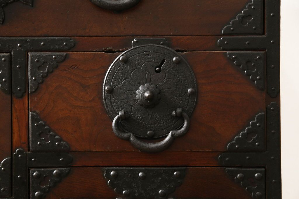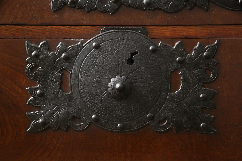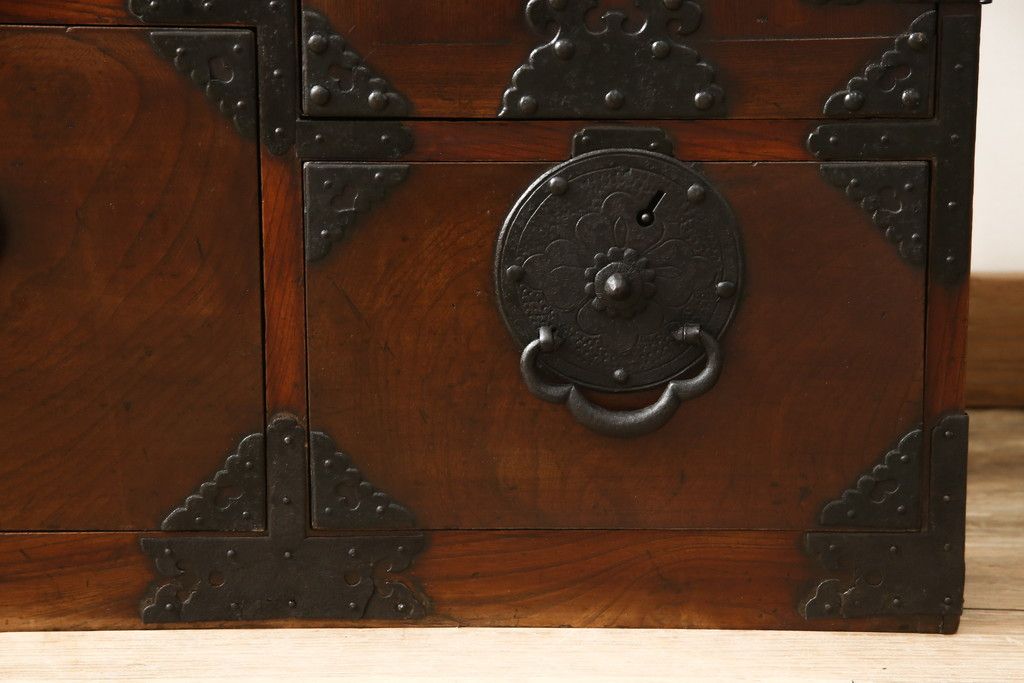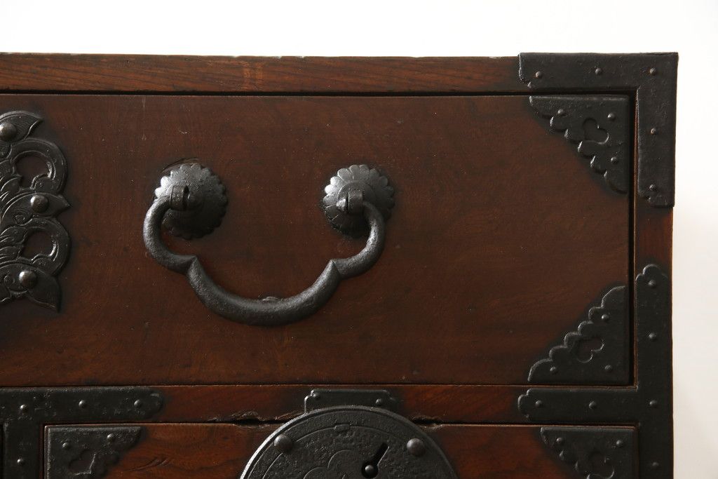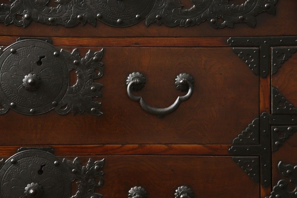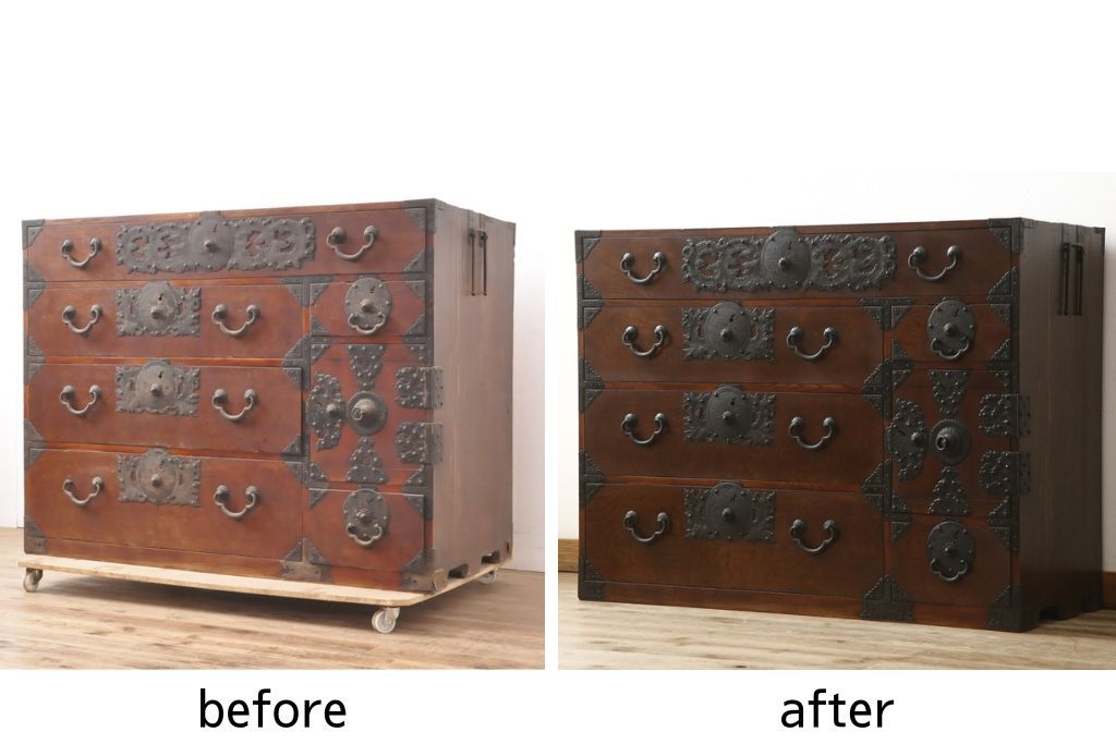 和箪笥 > 仙台箪笥をリペア&カスタム!奥行をリサイズし、金具を交換。本体は現状のお品物に合わせて1トーン程落ち着いた色に着色し、修繕箇所を本体と馴染ませ仕上げ。(野郎箪笥、時代箪笥、衣装箪笥、和タンス)