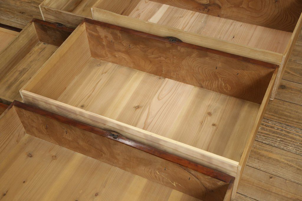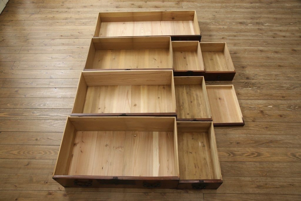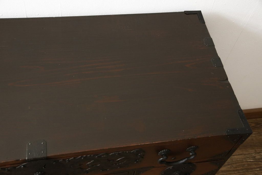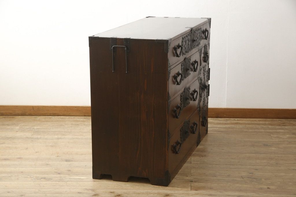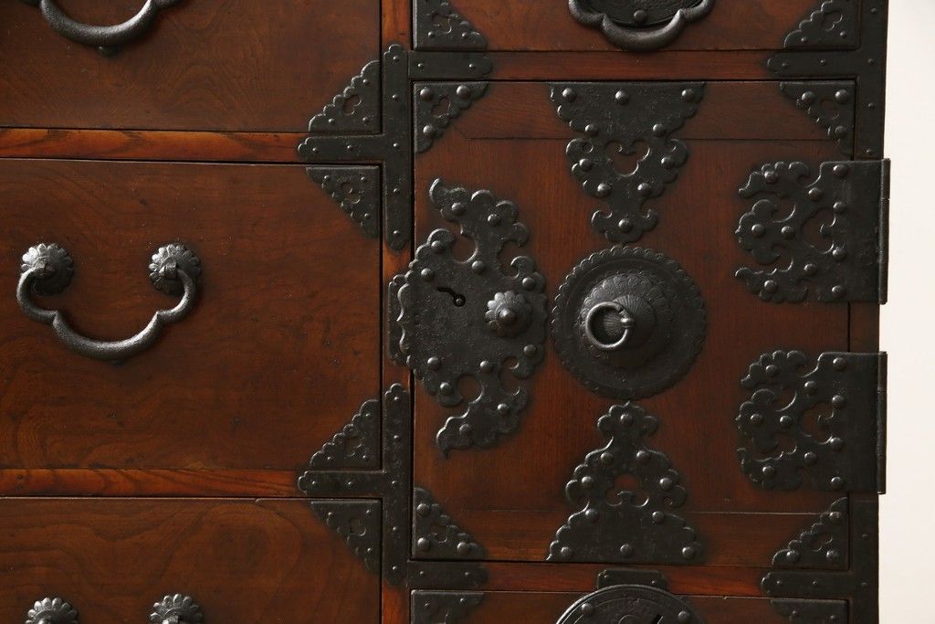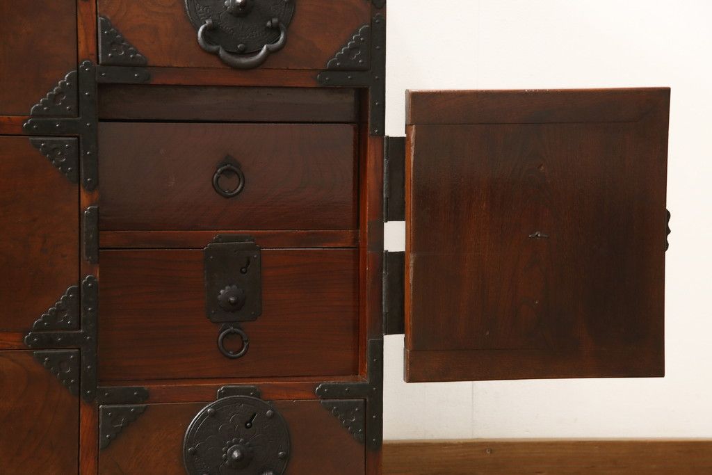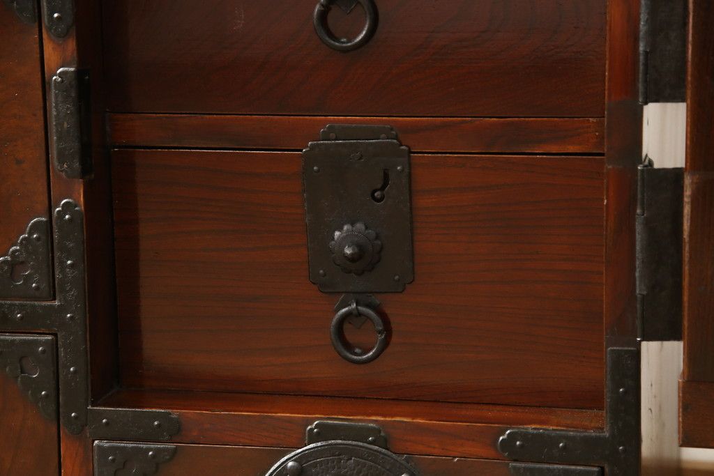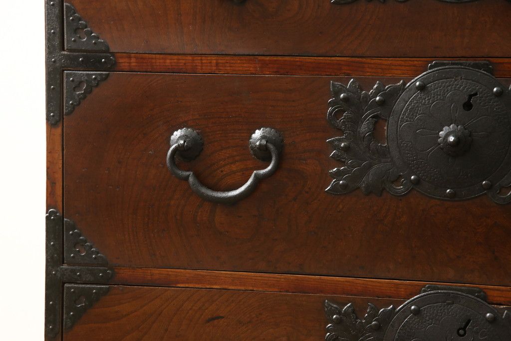 和箪笥> 衣装箪笥 > 仙台箪笥をリペア&カスタム!奥行をリサイズし、金具を交換。本体は現状のお品物に合わせて1トーン程落ち着いた色に着色し、修繕箇所を本体と馴染ませ仕上げ。(野郎箪笥、時代箪笥、衣装箪笥、和タンス)