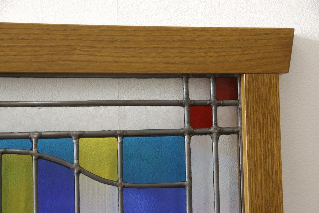 衝立・パーテーション > つい立てを新規製作!ご希望のサイズでオーク材を使用。片面は可動式仕様で、「芙蓉の花」「夏空」「日光」をモチーフにしたオリジナルのステンドグラスを取り付け。(ステンドグラス、つい立て、パーテーション、間仕切り)
