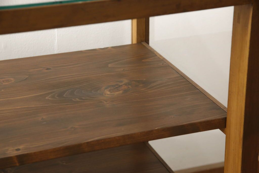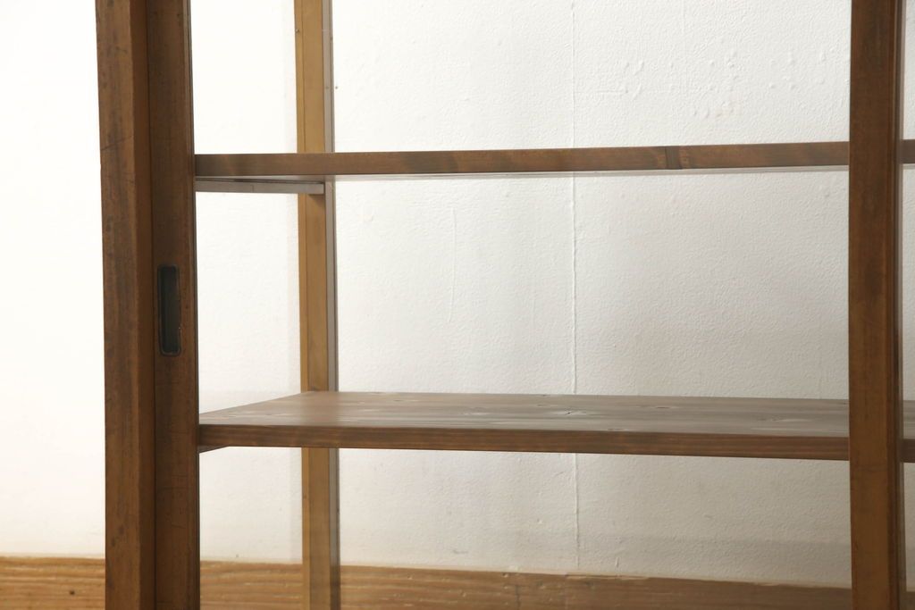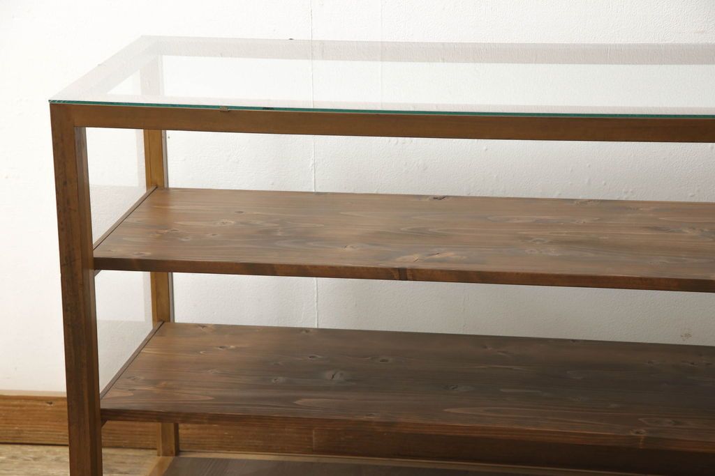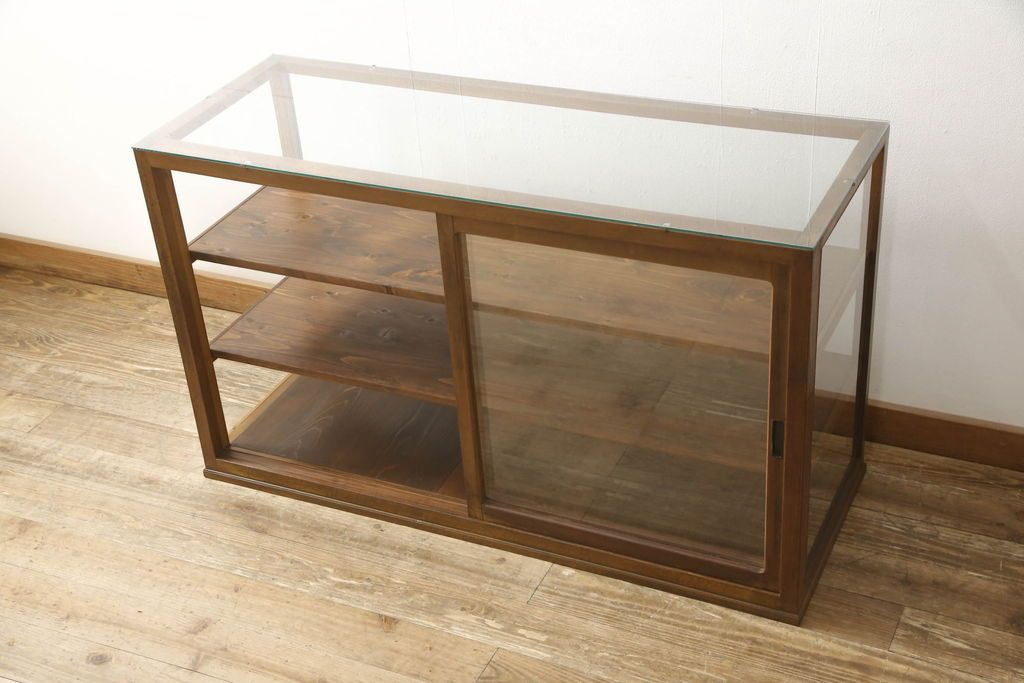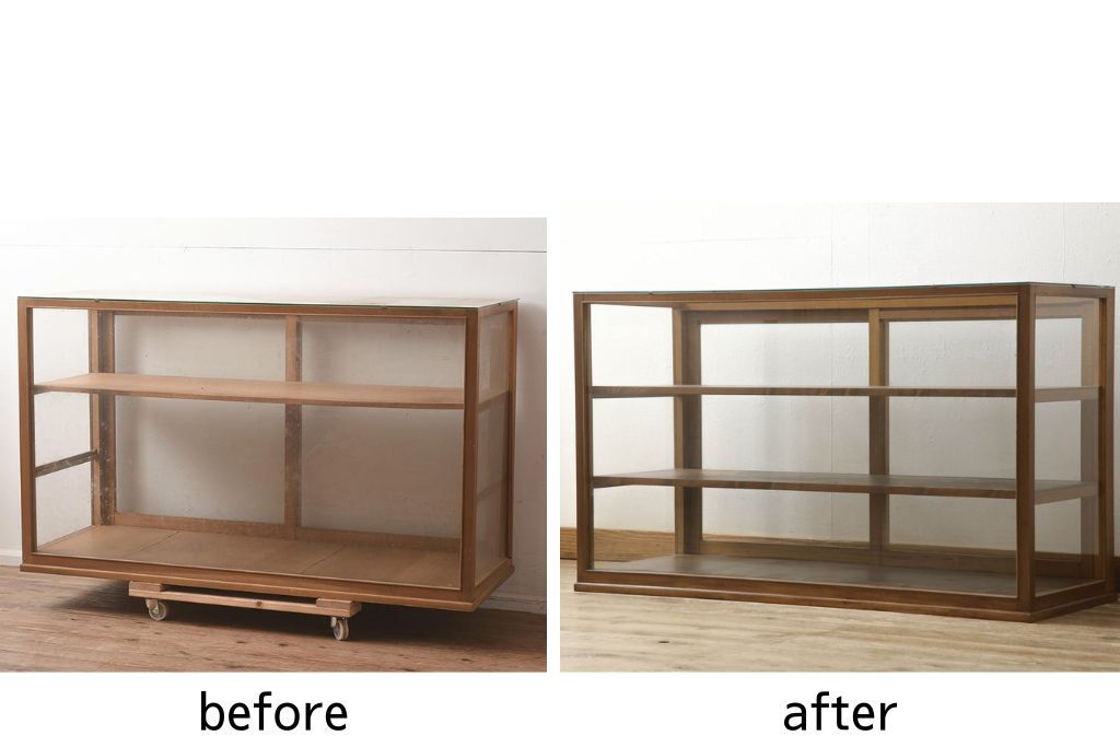 ガラスケースをリペア&カスタム!欠損している棚板を製作し、現状の品物に合わせて1トーン程落ち着いた色に着色。(ショーケース、陳列棚、飾り棚)