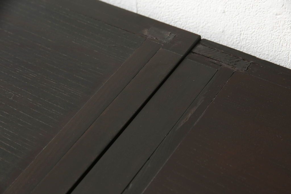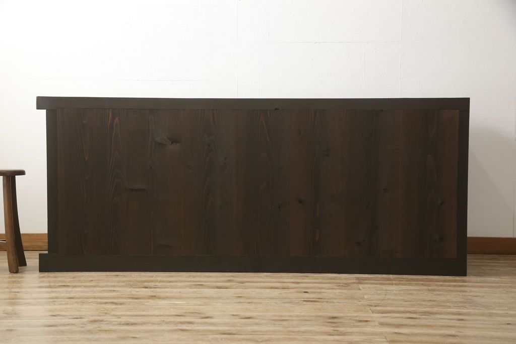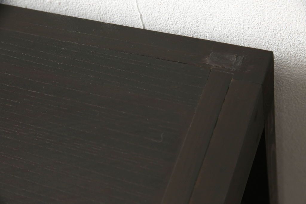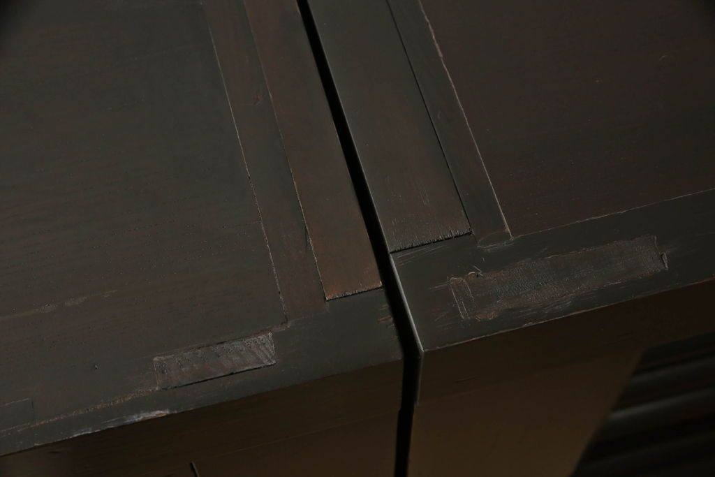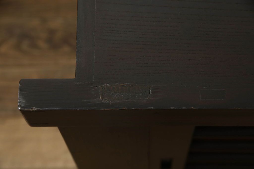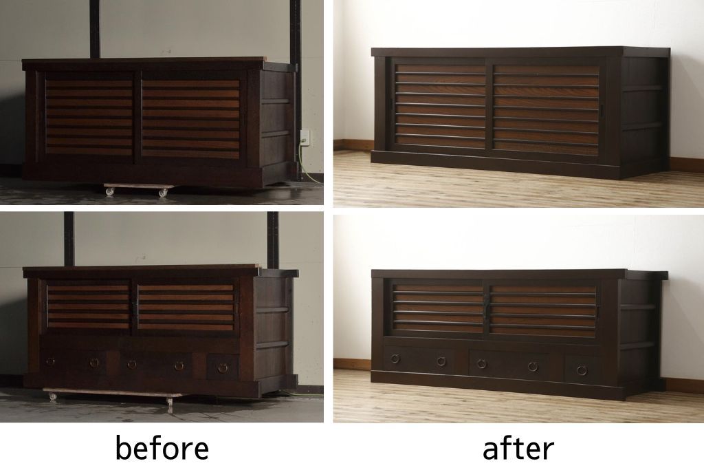 セミオーダー家具実績 > 水屋箪笥サイドボードをリペア&カスタム!上下框をそれぞれカットしリサイズ。框の耳をフラットになるようカットし、カットした面は色合わせ。底の四つ角にフェルトを貼り付け。(キャビネット、収納棚、戸棚)