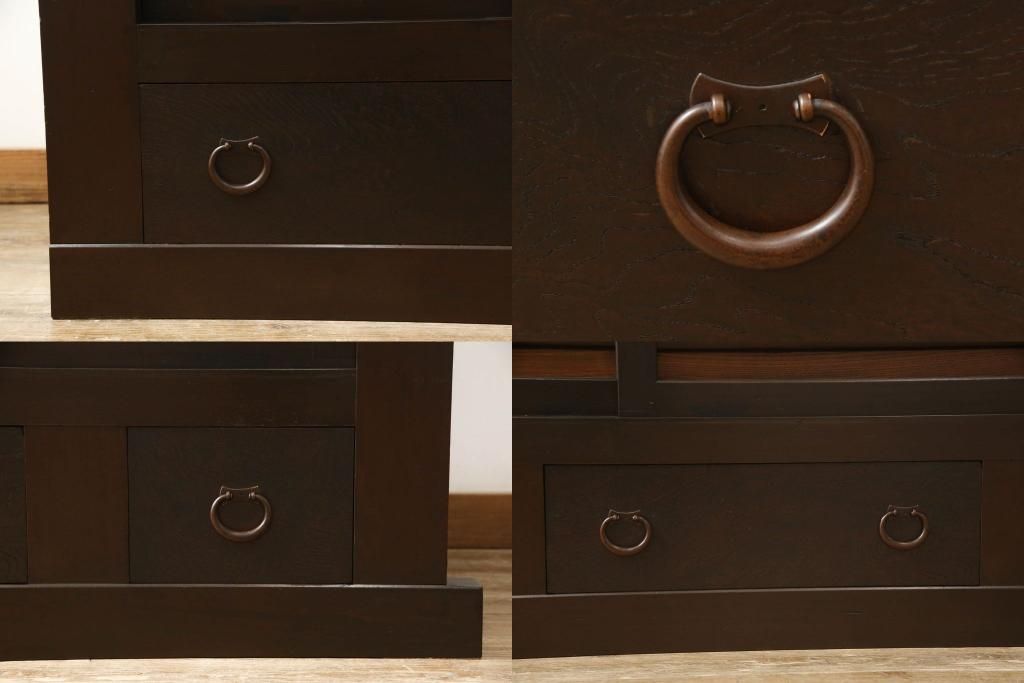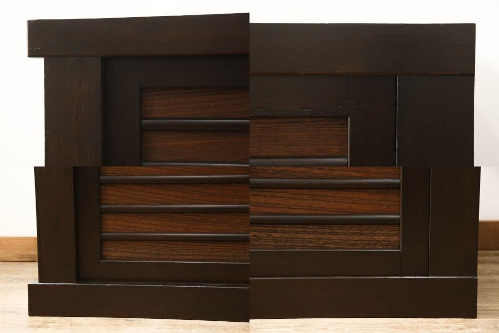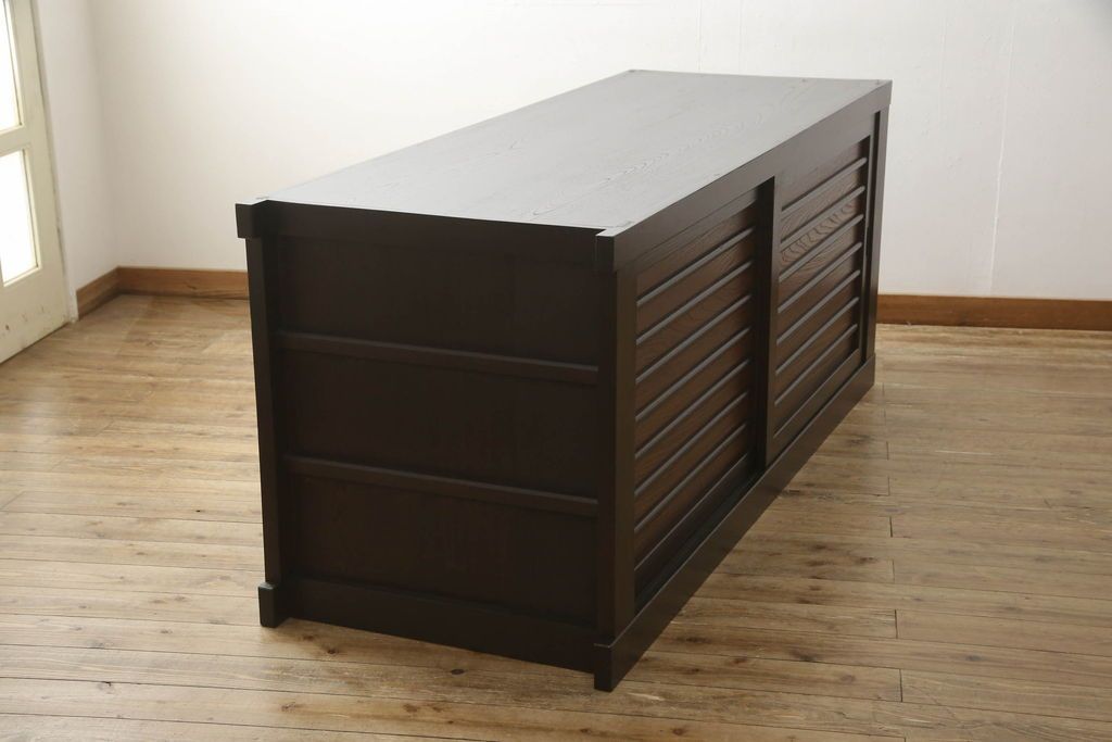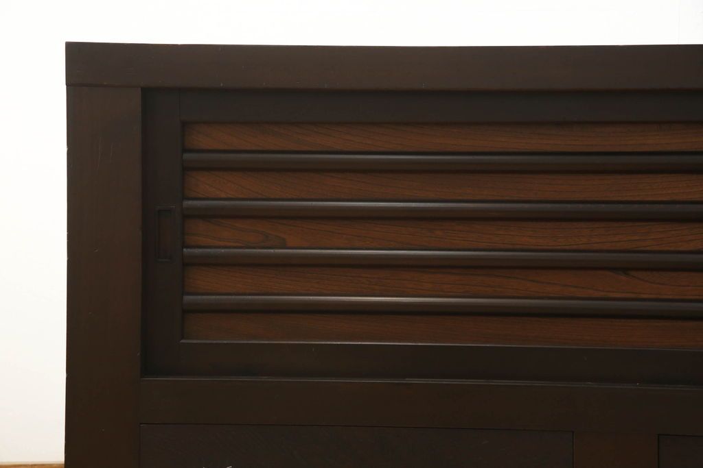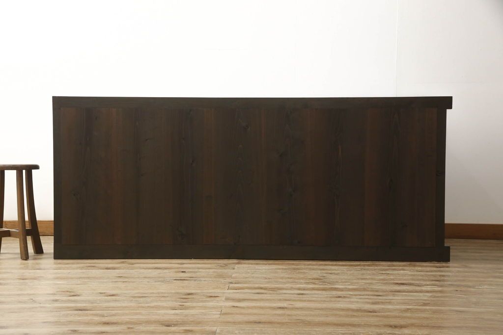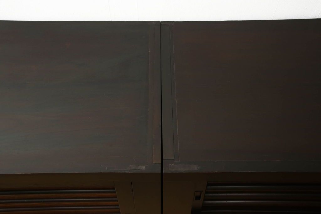 セミオーダー家具実績 > 水屋箪笥サイドボードをリペア&カスタム!上下框をそれぞれカットしリサイズ。框の耳をフラットになるようカットし、カットした面は色合わせ。底の四つ角にフェルトを貼り付け。(キャビネット、収納棚、戸棚)