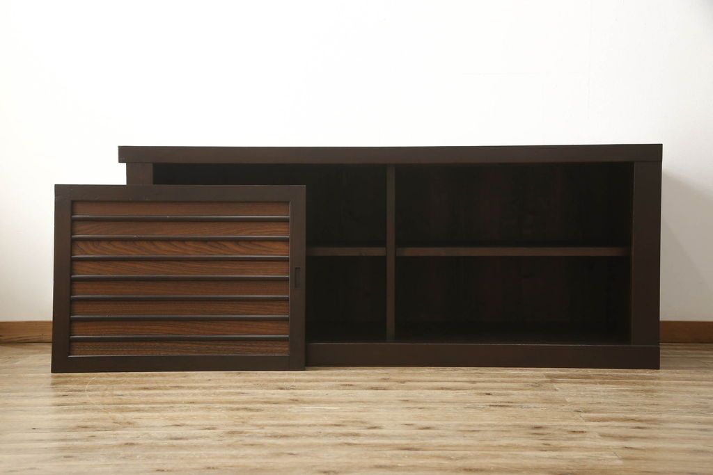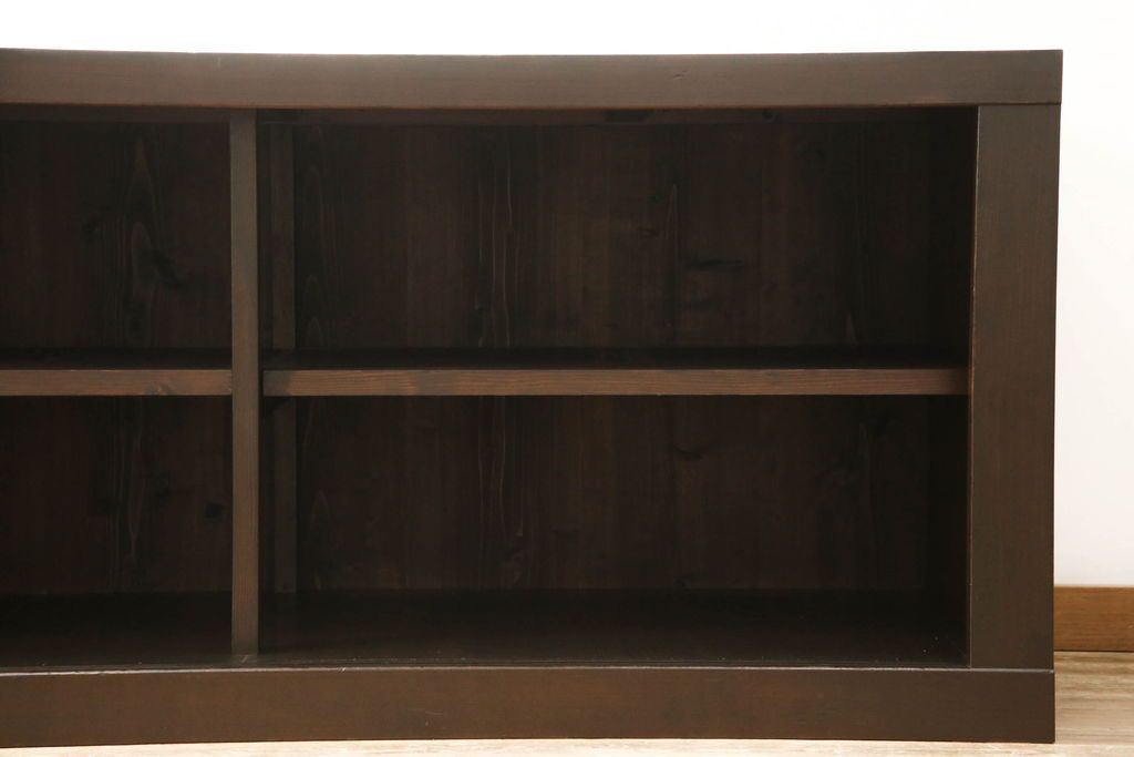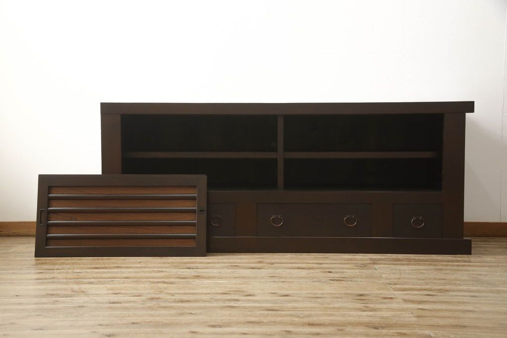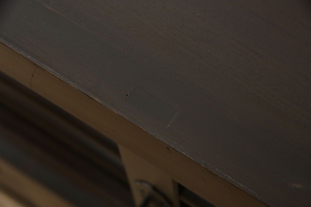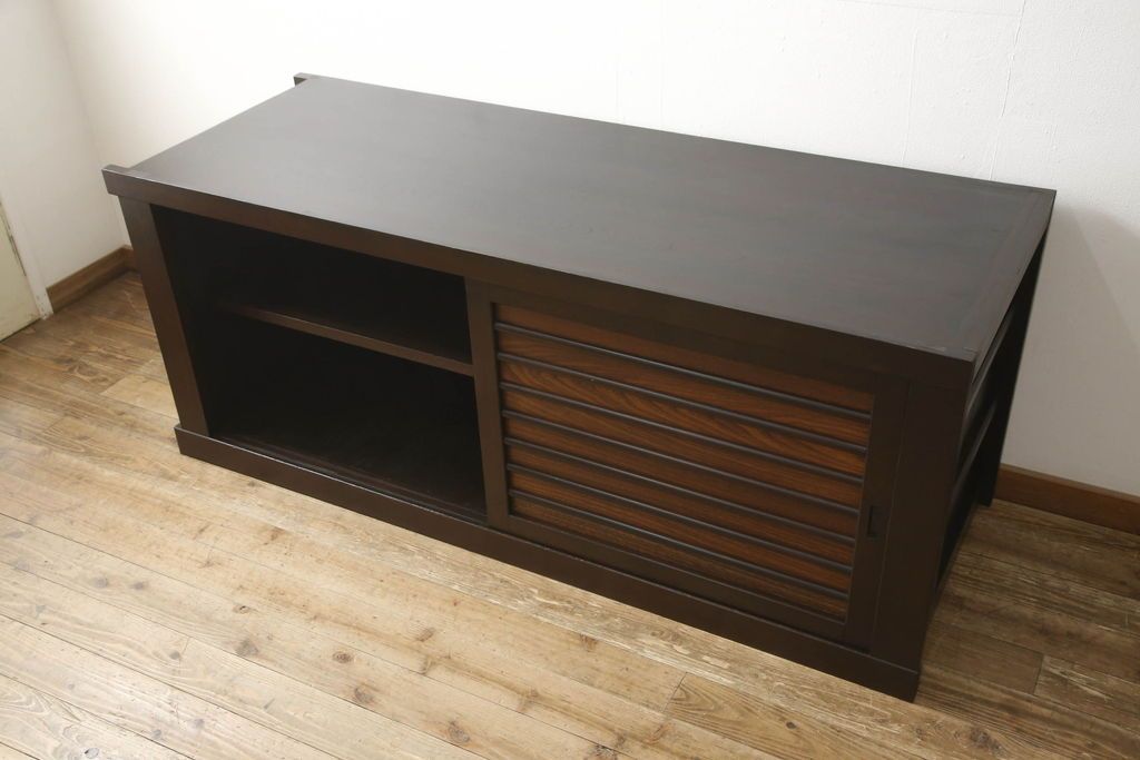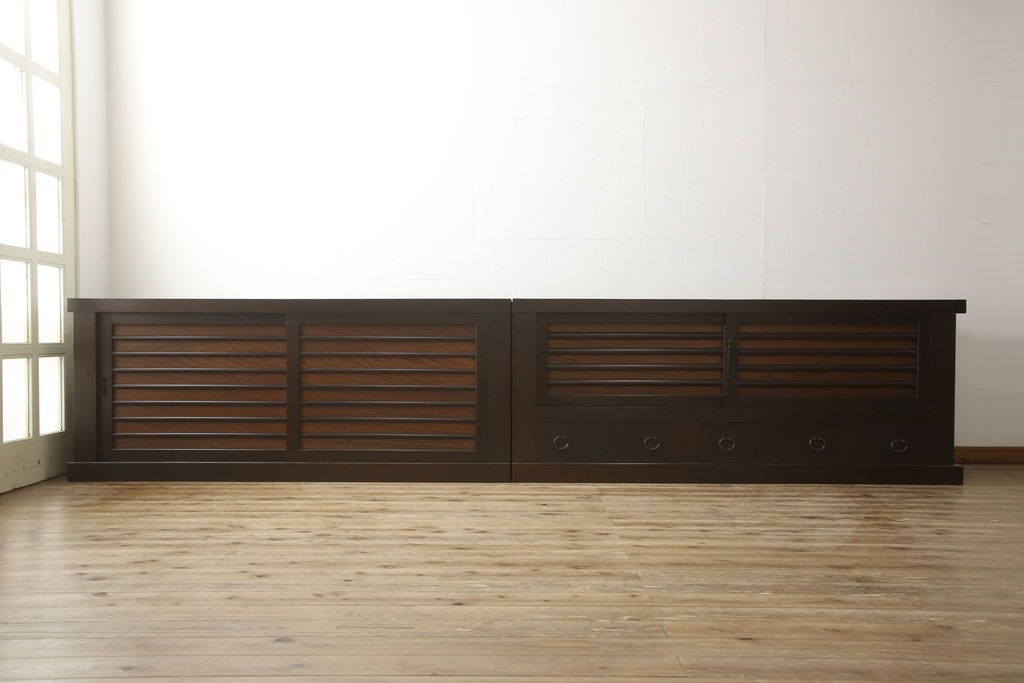 キャビネット・戸棚> テレビ台・ローボード > 水屋箪笥サイドボードをリペア&カスタム!上下框をそれぞれカットしリサイズ。框の耳をフラットになるようカットし、カットした面は色合わせ。底の四つ角にフェルトを貼り付け。(キャビネット、収納棚、戸棚)