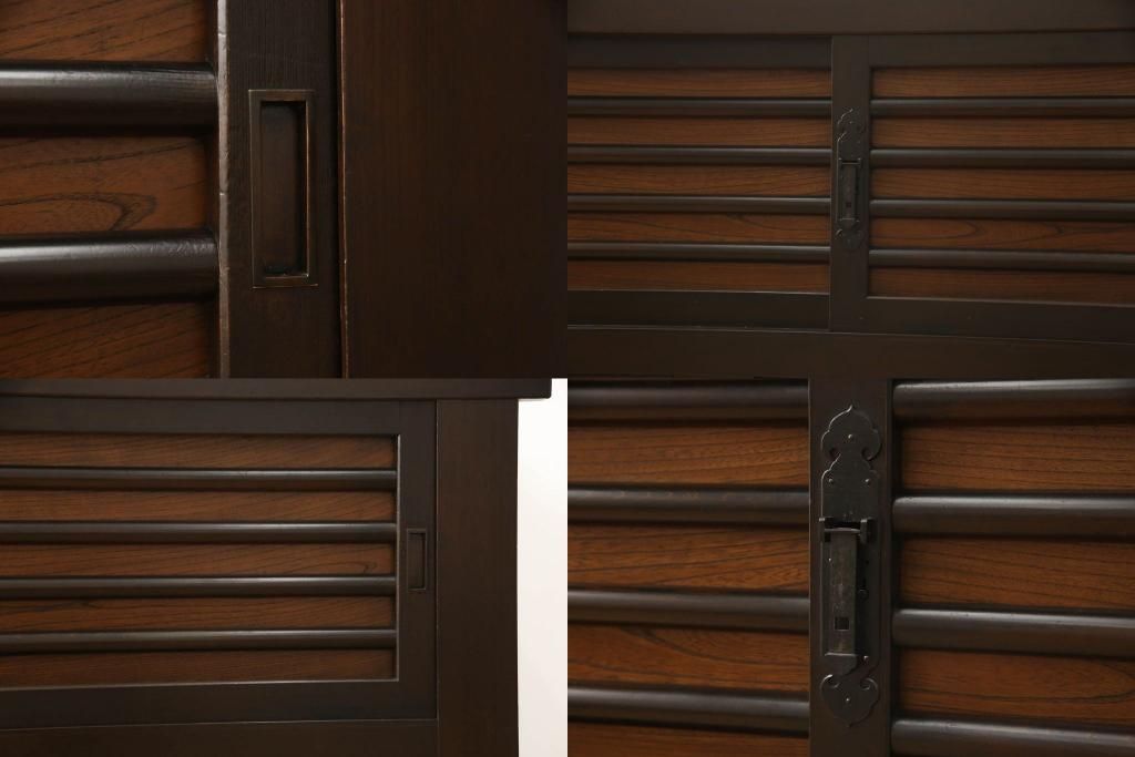 水屋箪笥サイドボードをリペア&カスタム!上下框をそれぞれカットしリサイズ。框の耳をフラットになるようカットし、カットした面は色合わせ。底の四つ角にフェルトを貼り付け。(キャビネット、収納棚、戸棚)