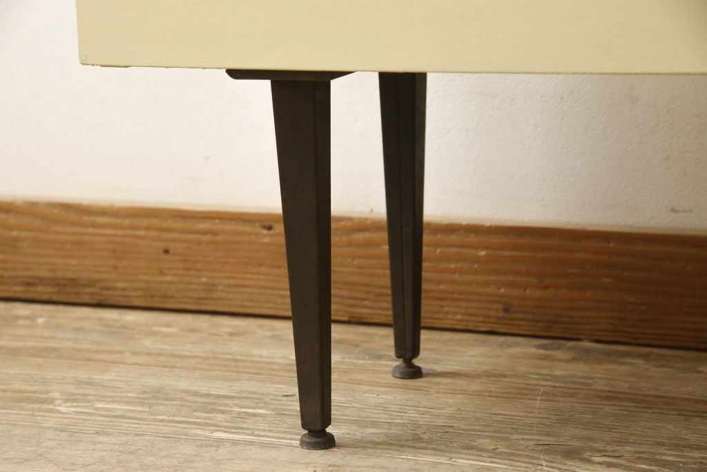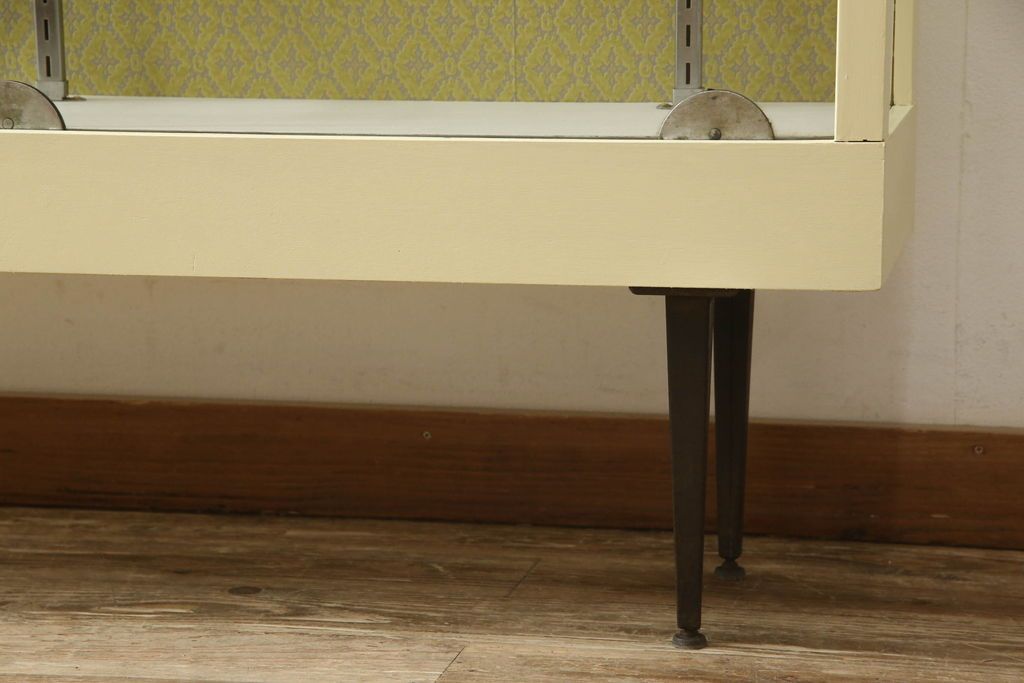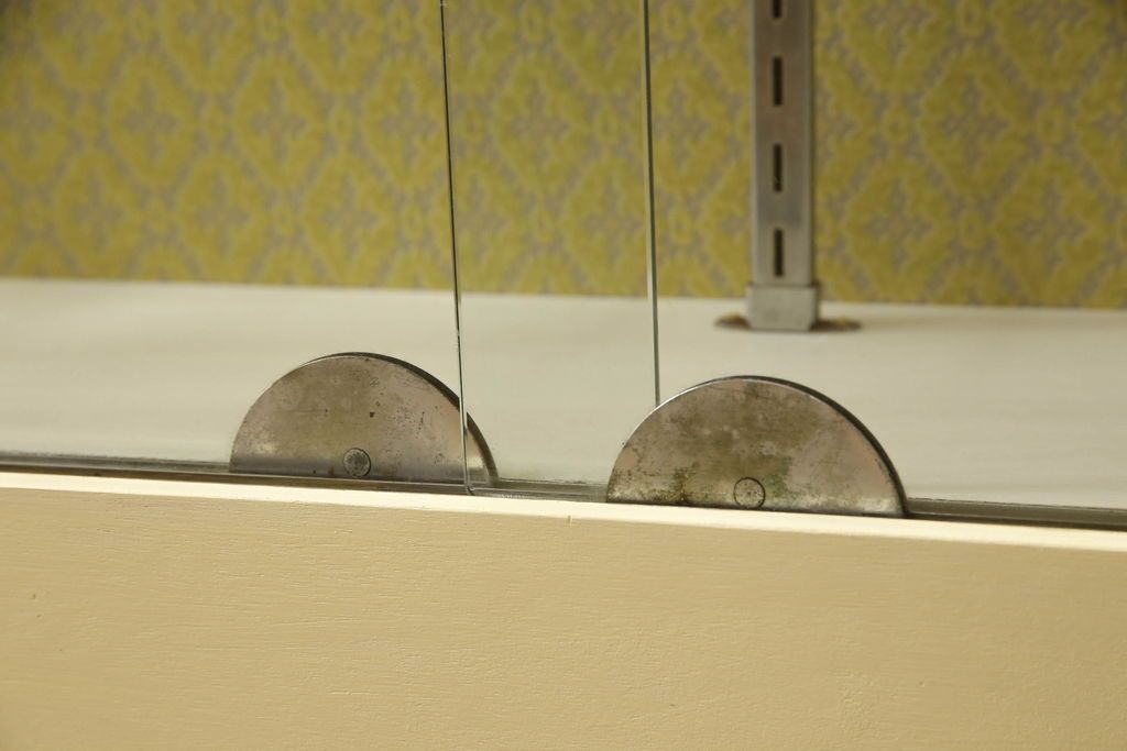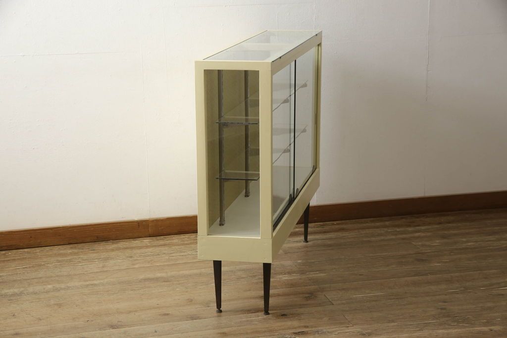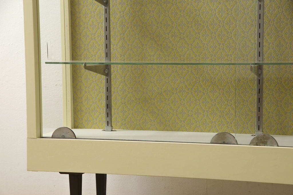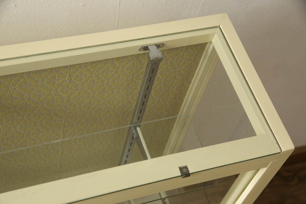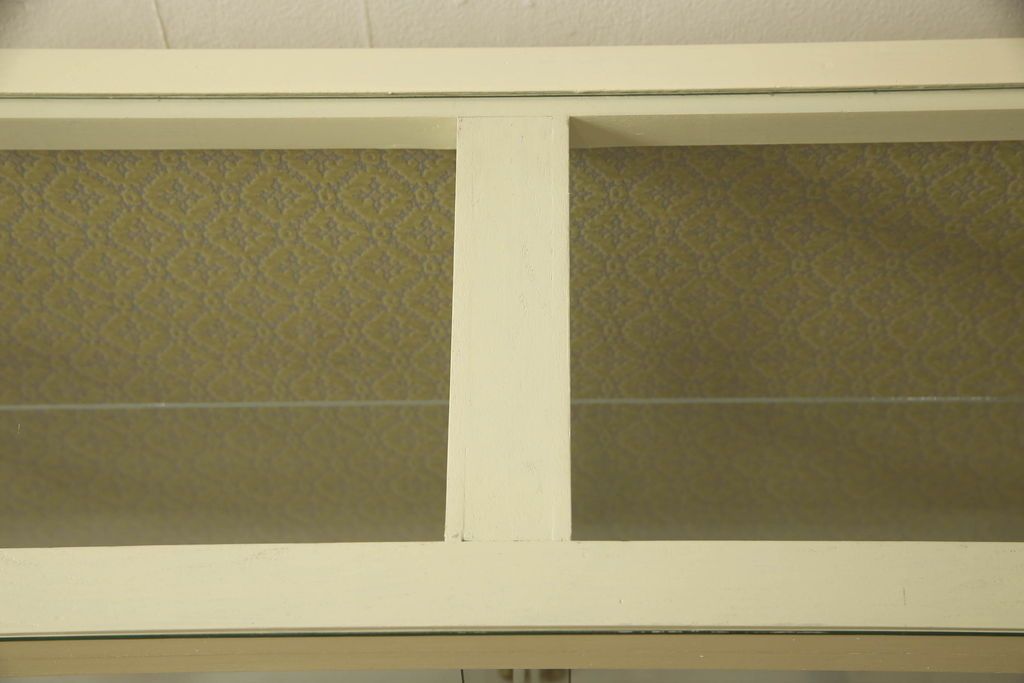 ガラスケース・ショーケース> カウンターショーケース > ガラスケースをリペア&カスタム!背面の模様ガラスを板に変更し指定の紙を貼り付け、左側面の鏡はクリアガラスに入れ替え。本体、棚内部の底板はクリーム色にペイント。(ショーケース、飾り棚、陳列棚)