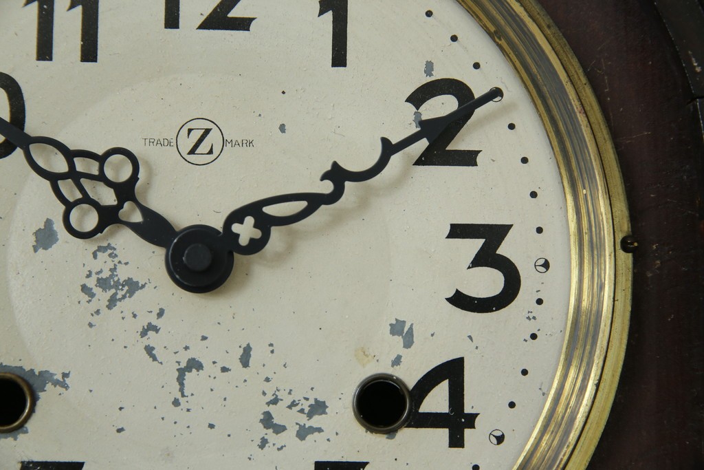 時計 > 和製アンティーク 横浜エムズイ商会 TRADE(Z)MARK(トレードマーク) 横窓縁のダイヤガラスが素敵な掛け時計 (R-072397)