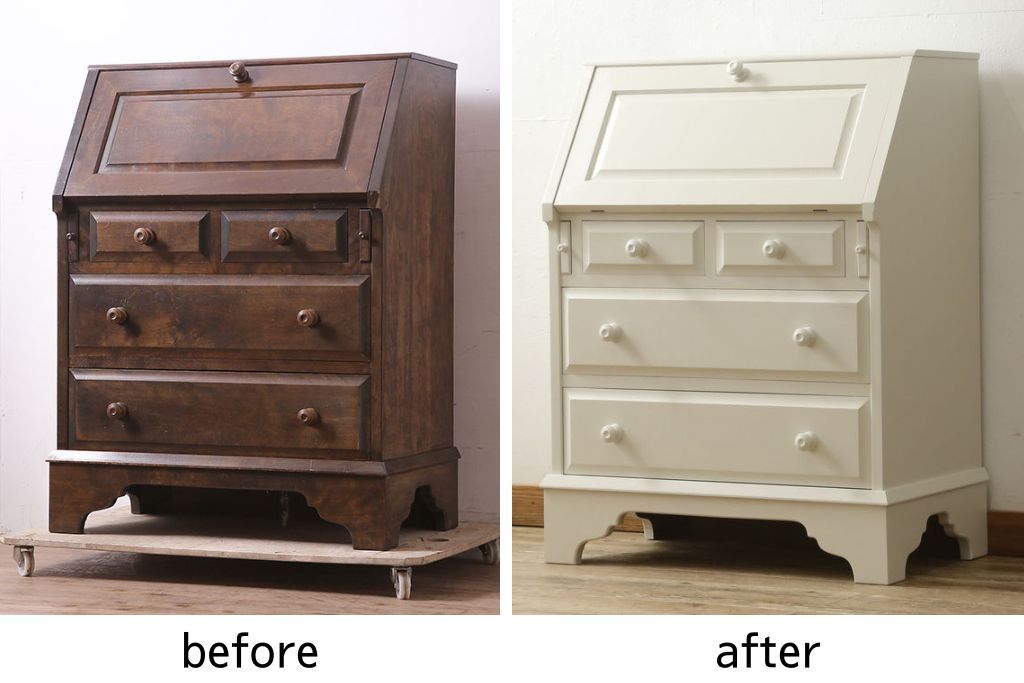 民芸家具 > ライティングビューローをリペア&カスタム!色味は当店商品を参考にホワイトにペイント。(簿記机、在宅ワーク、在宅用ワークデスク、机、在宅ワーク、在宅用引き出し)