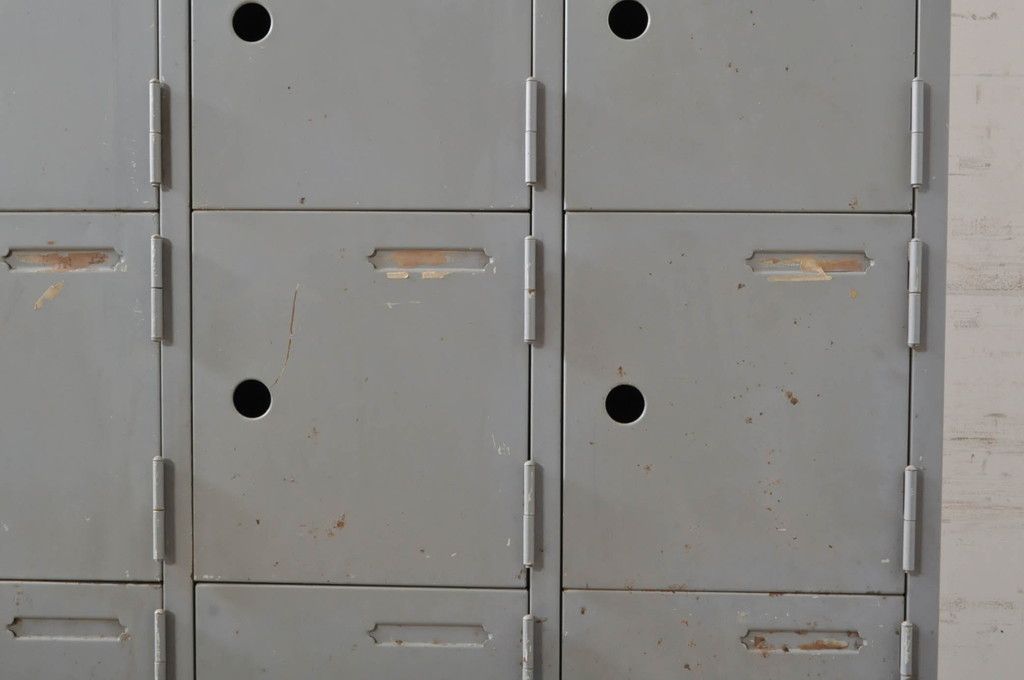 和製ビンテージ ペイント仕上げ限定 レトロな雰囲気を高めるアイアンロッカー(収納棚、下駄箱、戸棚、ヴィンテージ)(R-072714)
