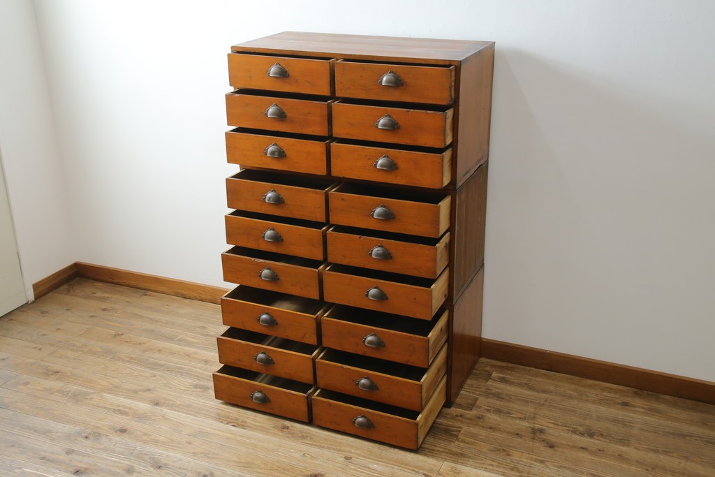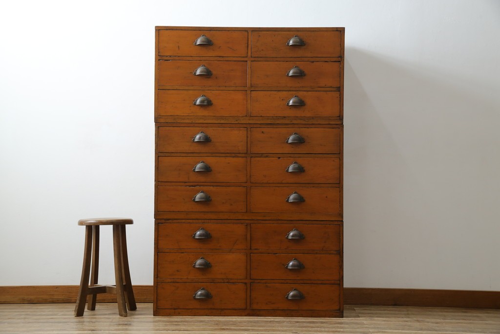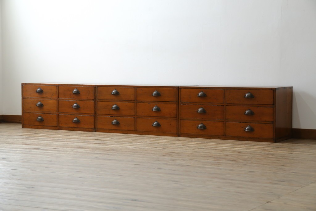 店舗什器 > 和製アンティーク 横に並べても使える!! 引き出し18杯 レトロな見た目と収納力が魅力的な収納箪笥 (R-072954)