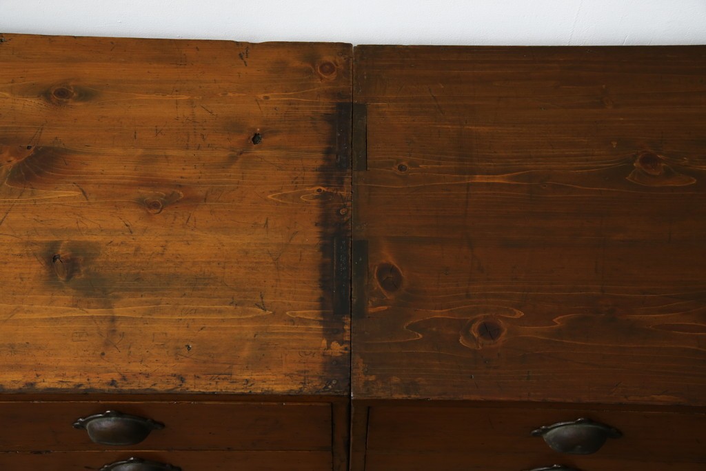 古家具> 古家具-チェスト・箪笥 > 和製アンティーク 横に並べても使える!! 引き出し18杯 レトロな見た目と収納力が魅力的な収納箪笥 (R-072954)