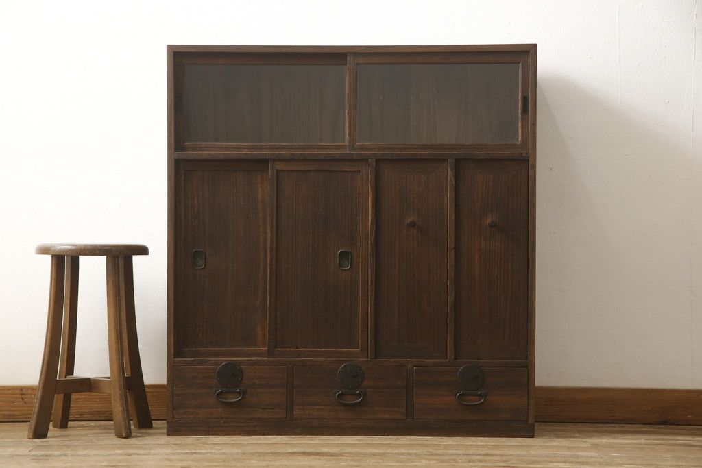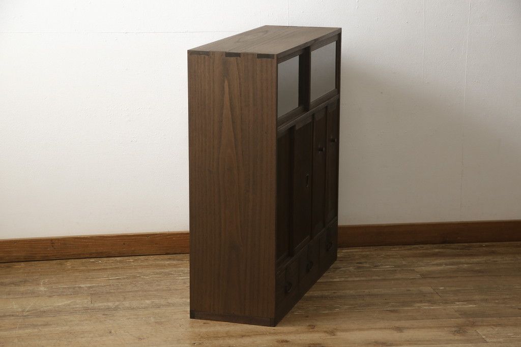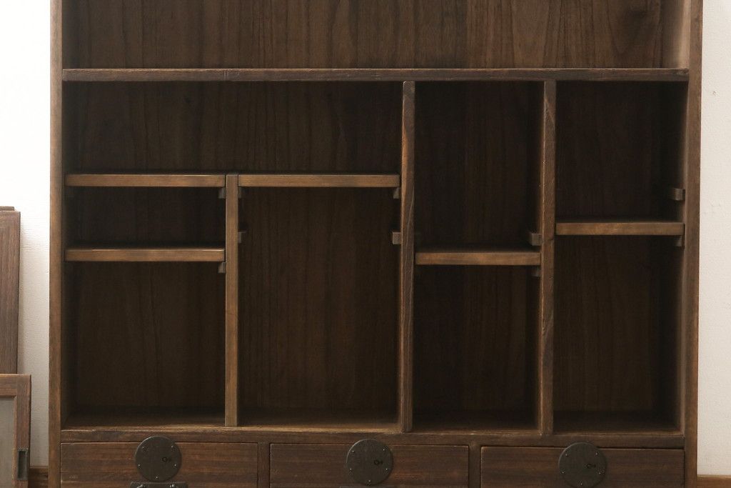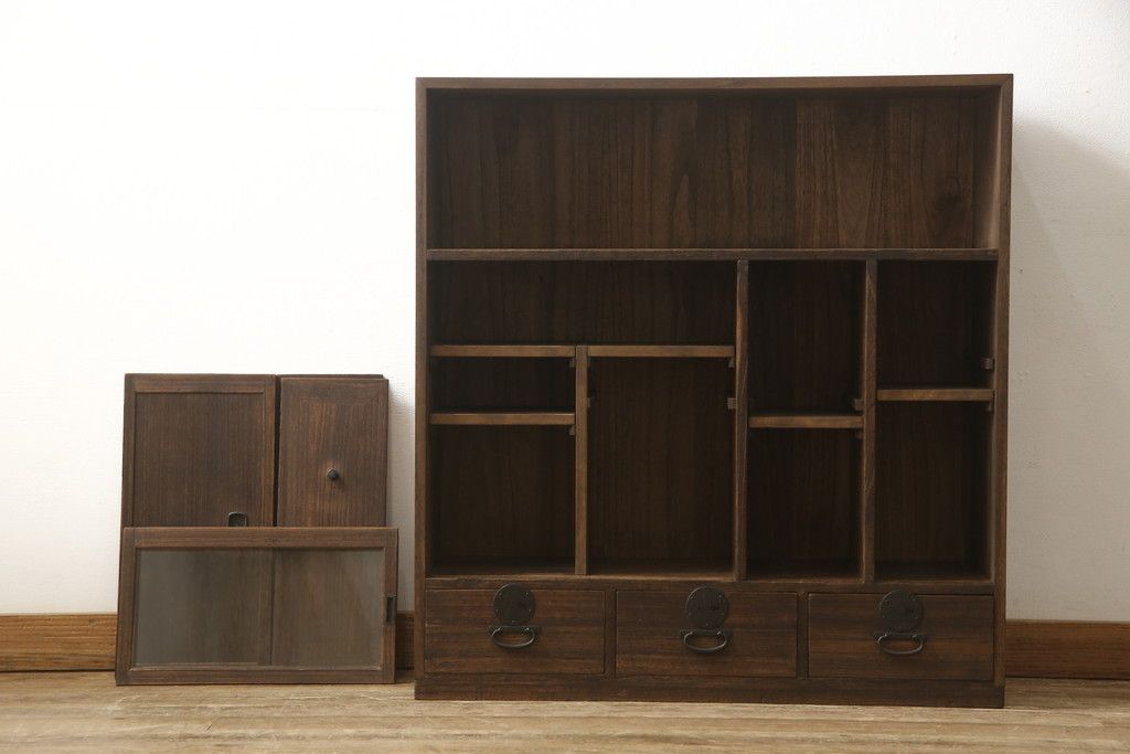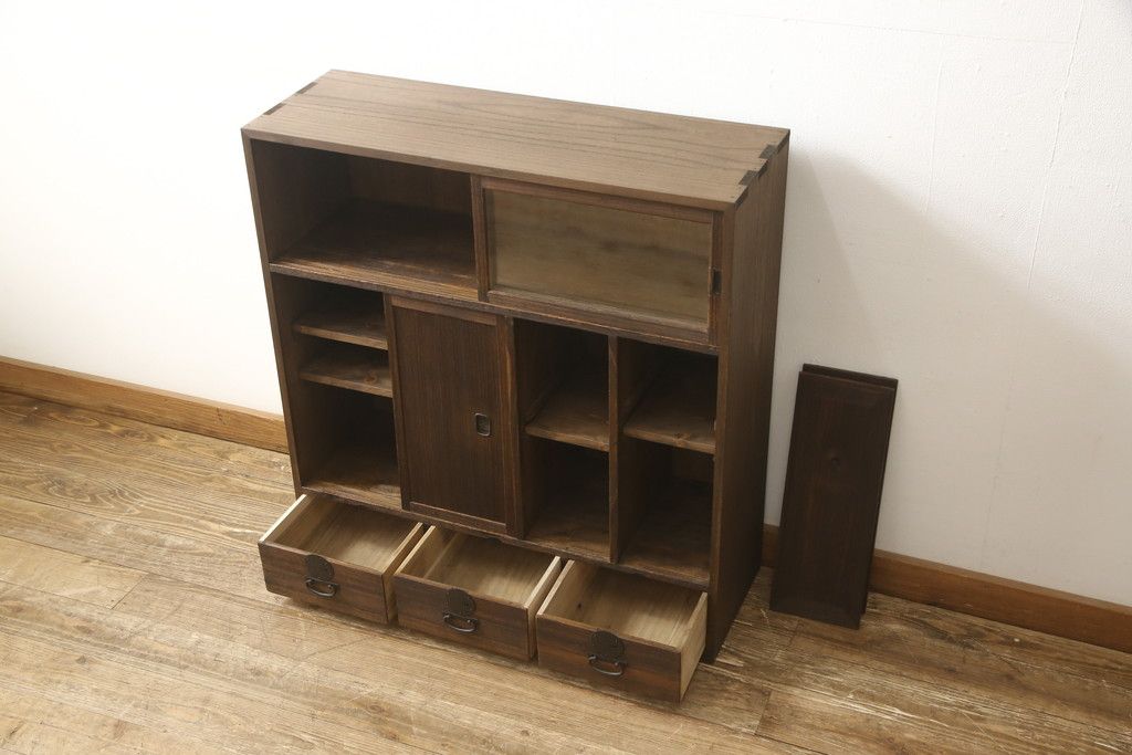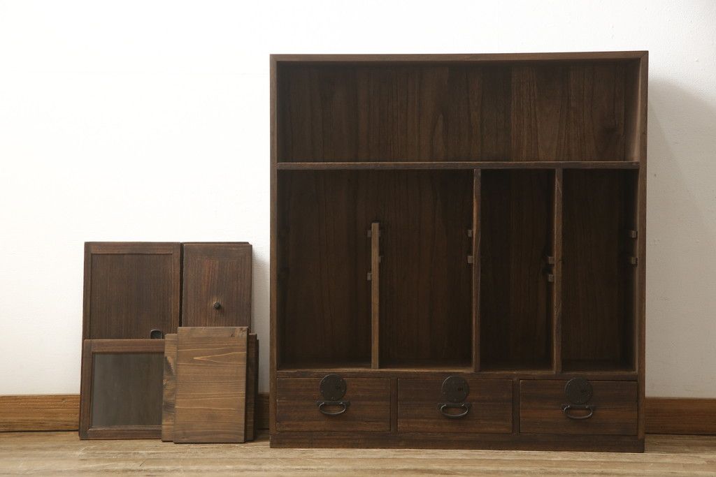 戸棚を綺麗に再生!左右側面・天板・背面を新規製作。内部に棚板と仕切りを追加。ワントーン程落ち着いた色に着色。