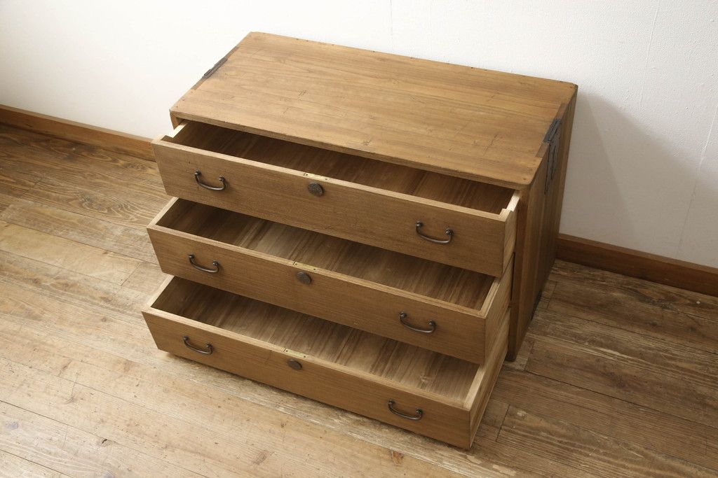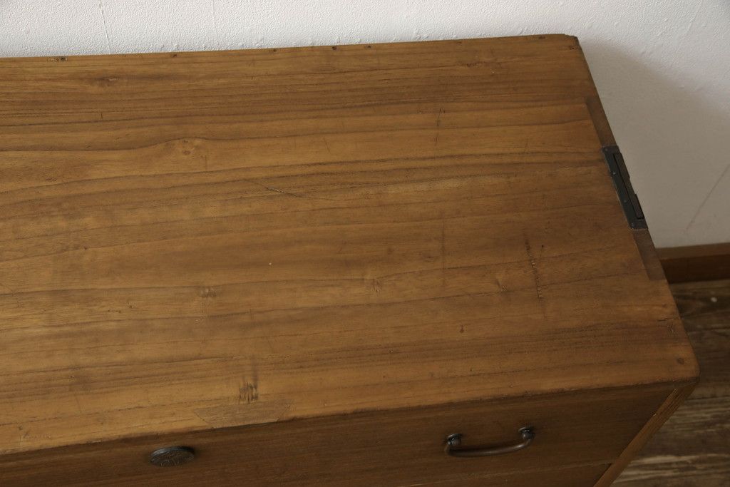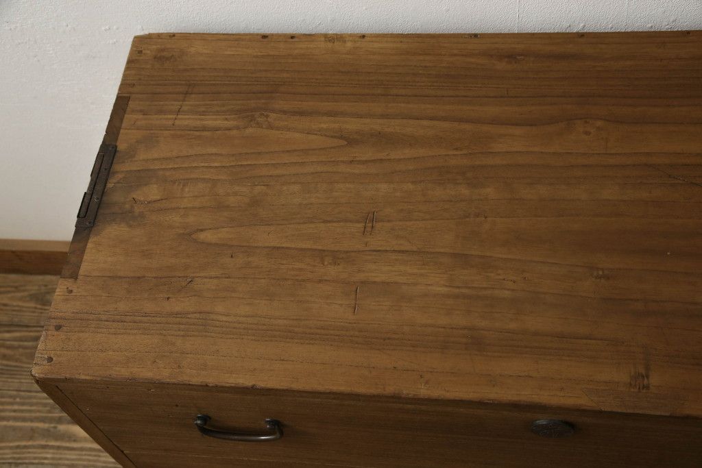 和箪笥 > 箪笥の見た目を変えずに綺麗にリペア!天板裏から天板を補強。本体は現状の品物に合わせて1トーン程落ち着いた色に着色。(ローボード、テレビ台、チェスト、引き出し、桐箪笥、桐たんす)