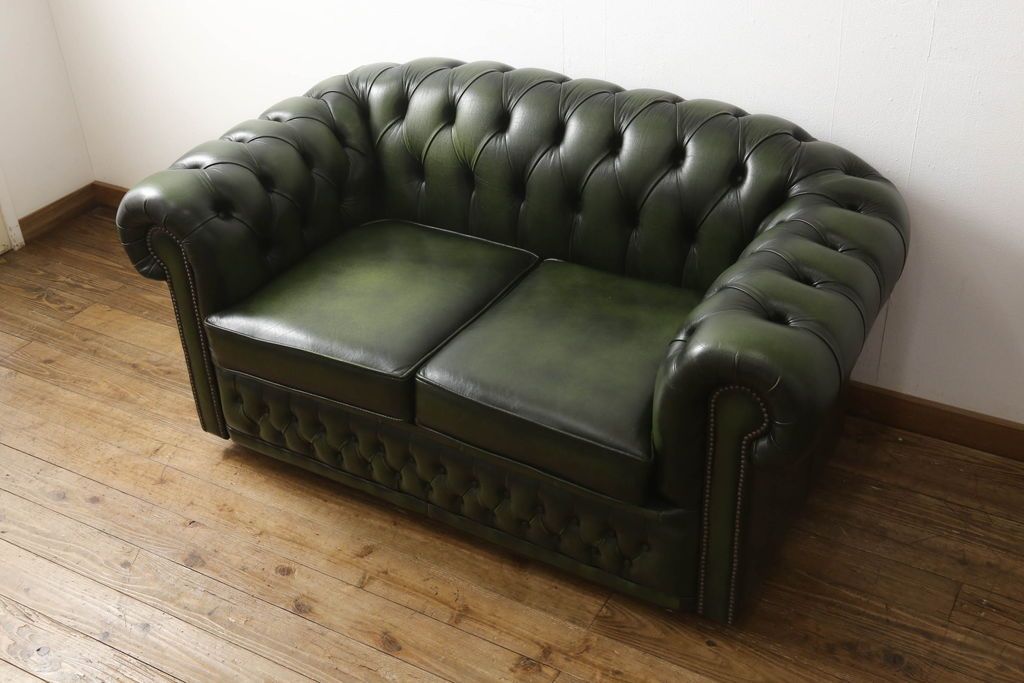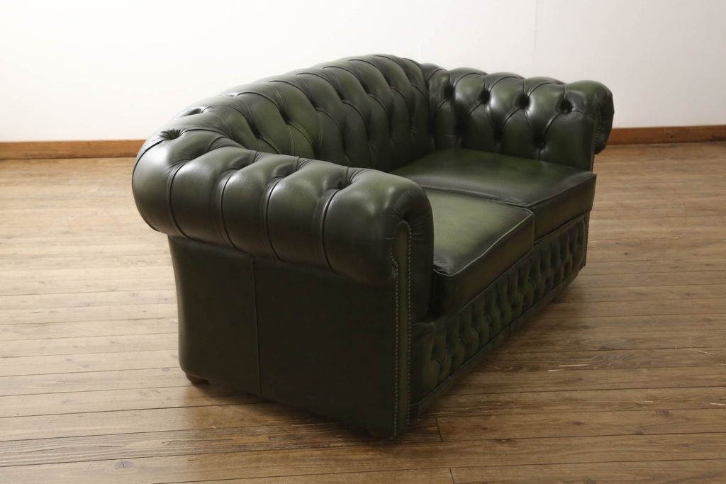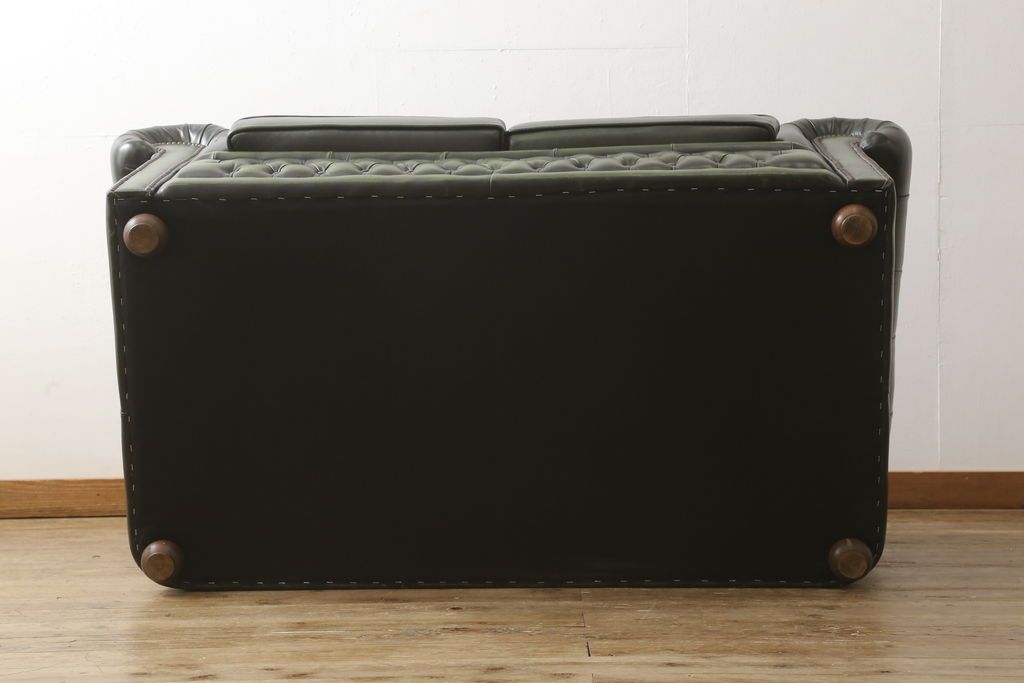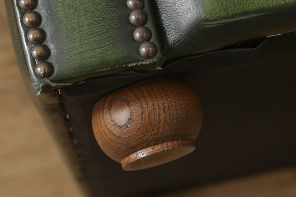 ソファ> 2人掛けソファ > 2人掛けソファをリペア&カスタム!既存のキャスターを取り外し、希望の長さにカットした脚を取り付け。色味はオーク系に着色。(二人掛け、ラブソファ)